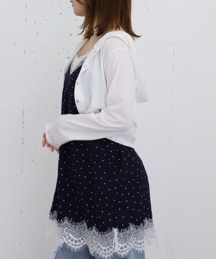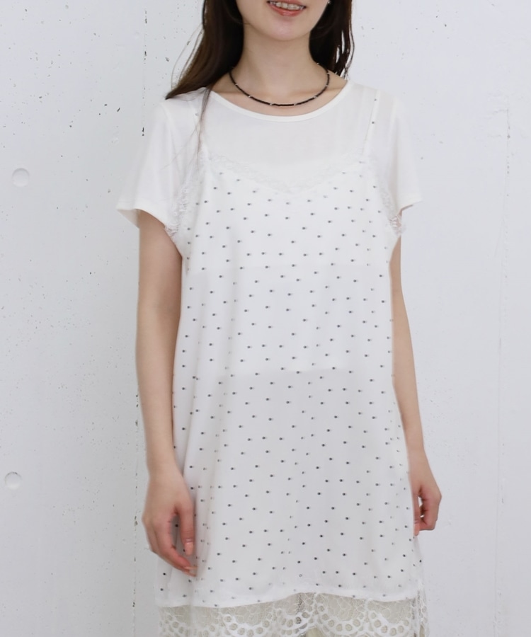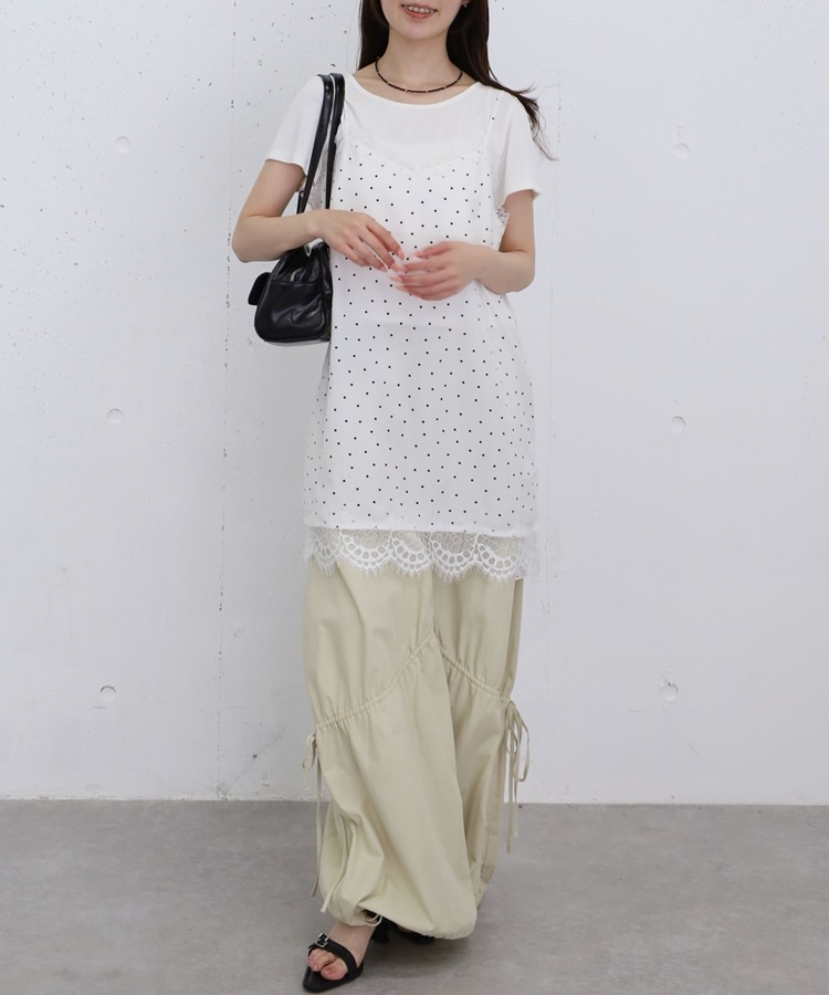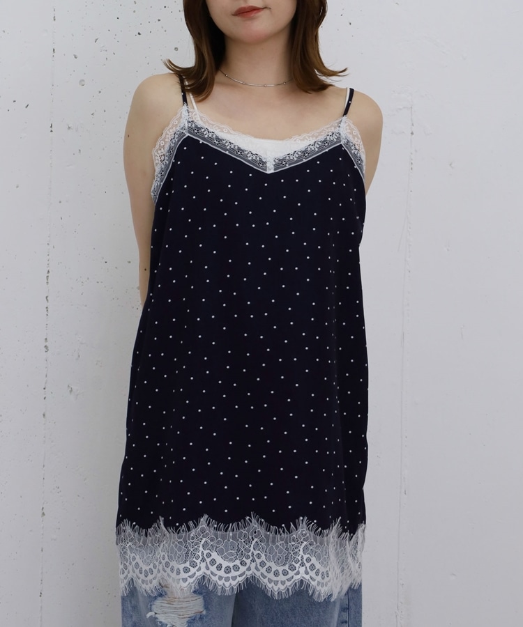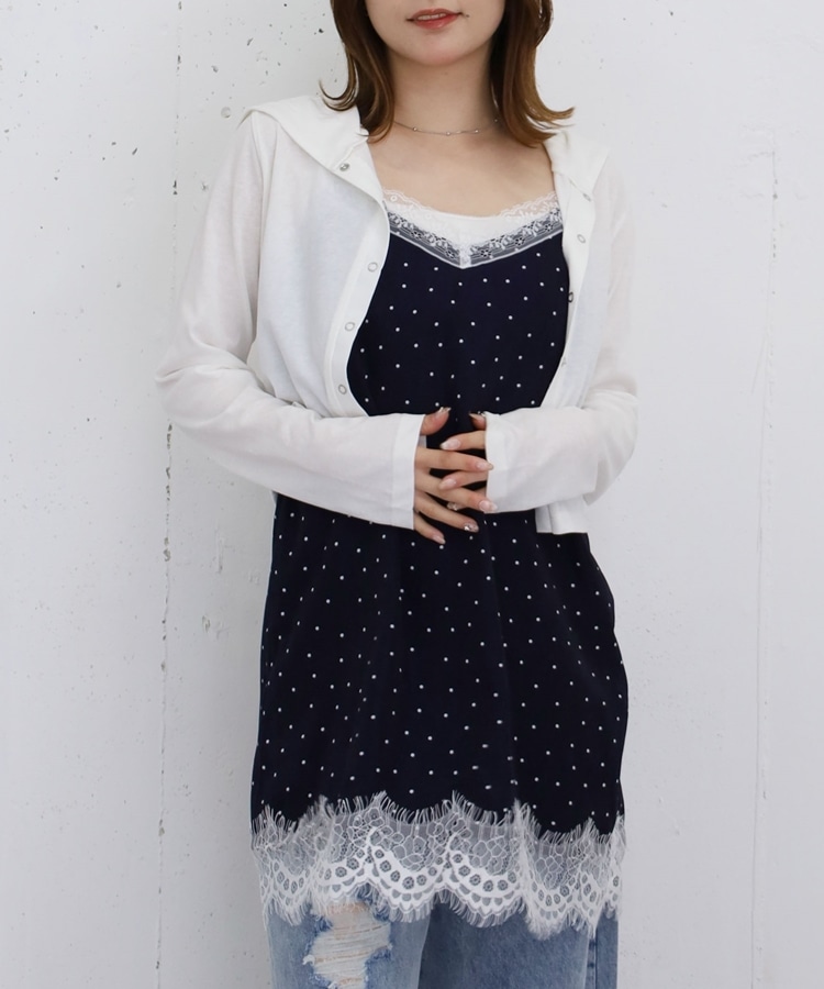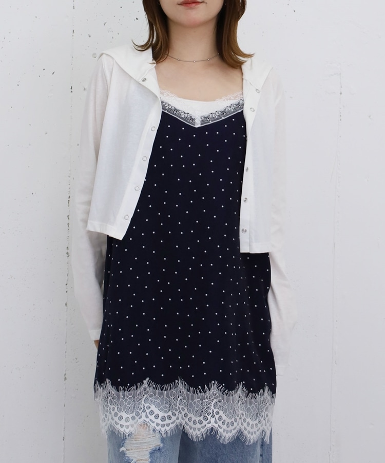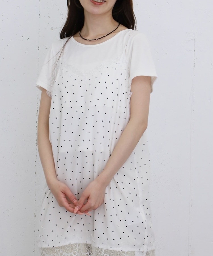 ■ドット×レースで魅せる、レイヤードが楽しくなるミニキャミワンピース■
