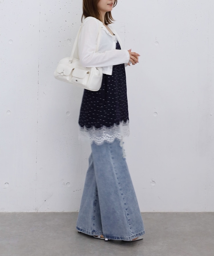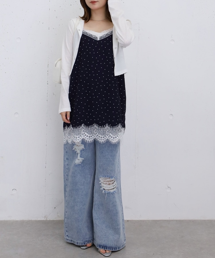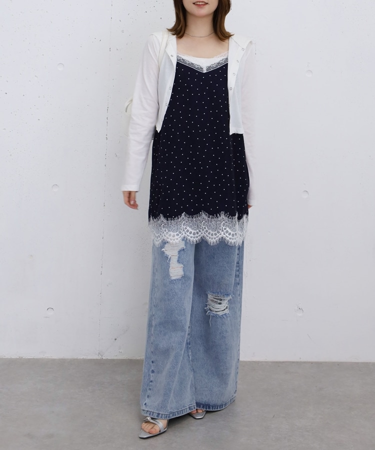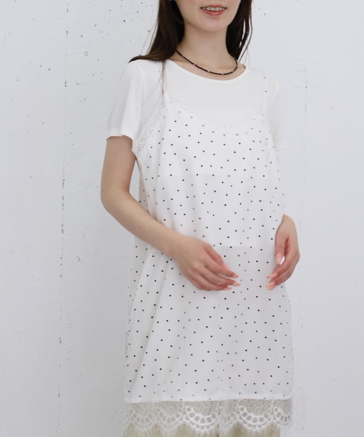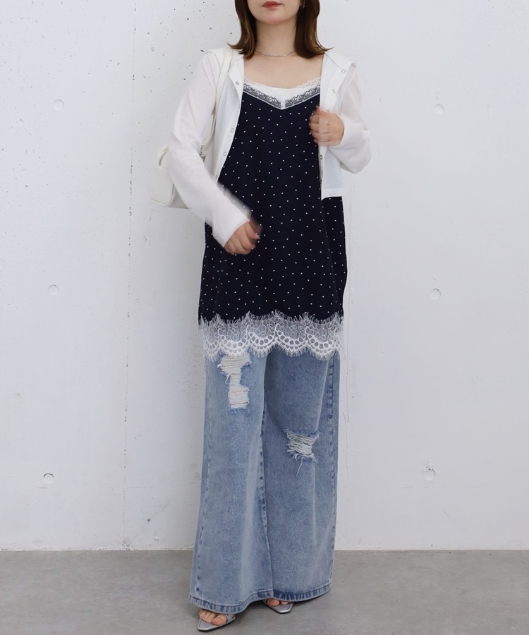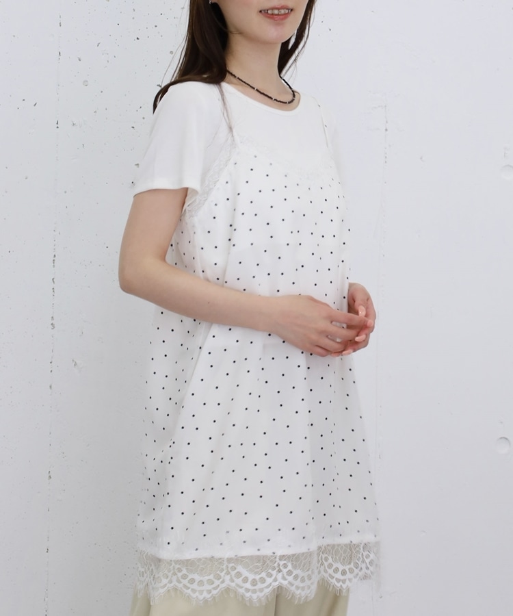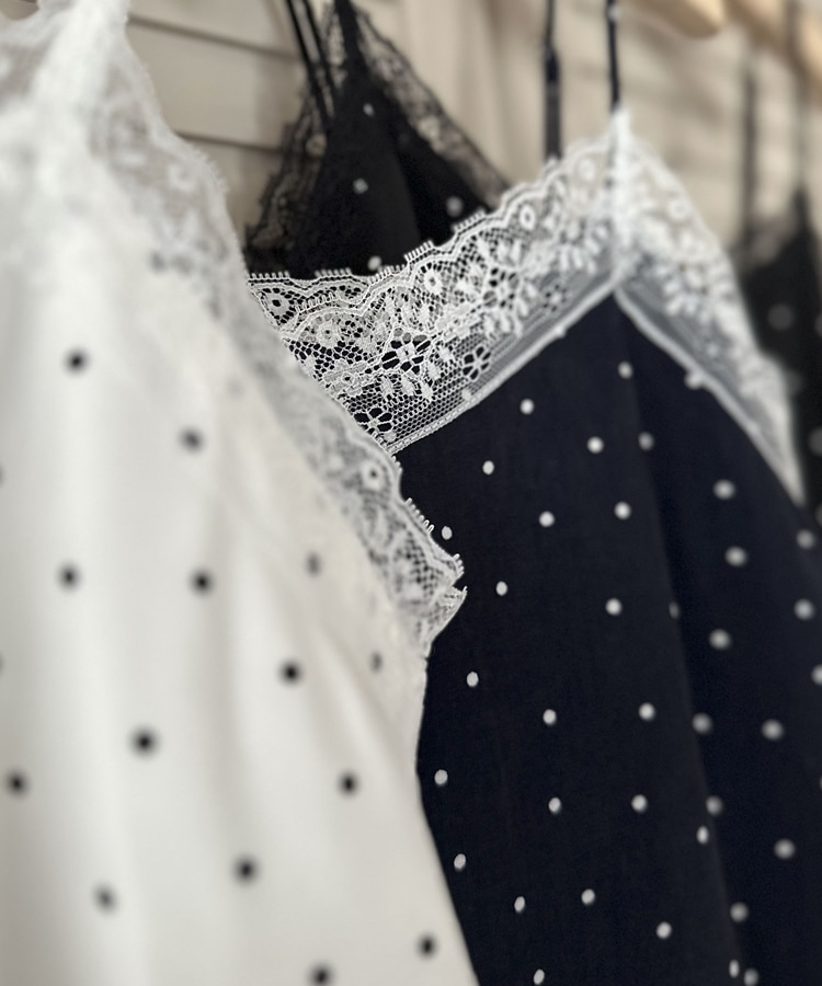 ■ドット×レースで魅せる、レイヤードが楽しくなるミニキャミワンピース■