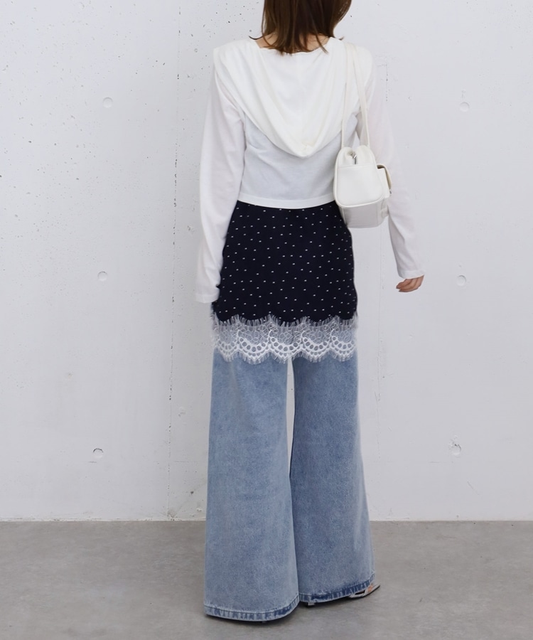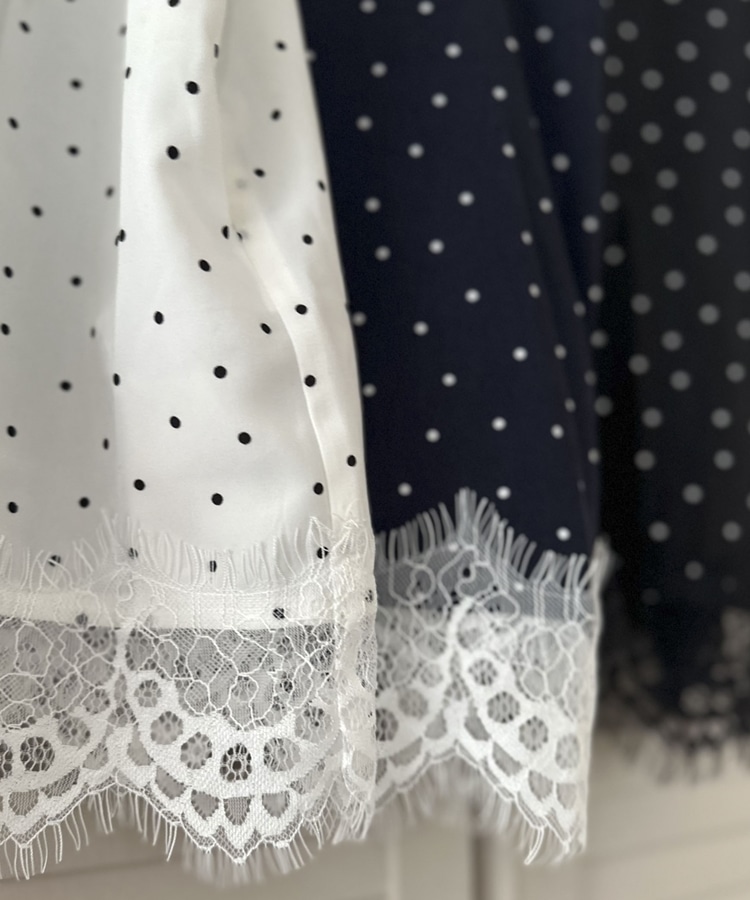 ・胸元と裾にあしらったレースで上品なアクセントをプラス
