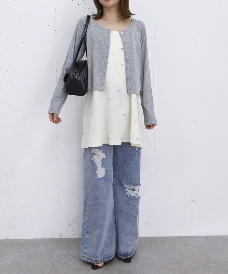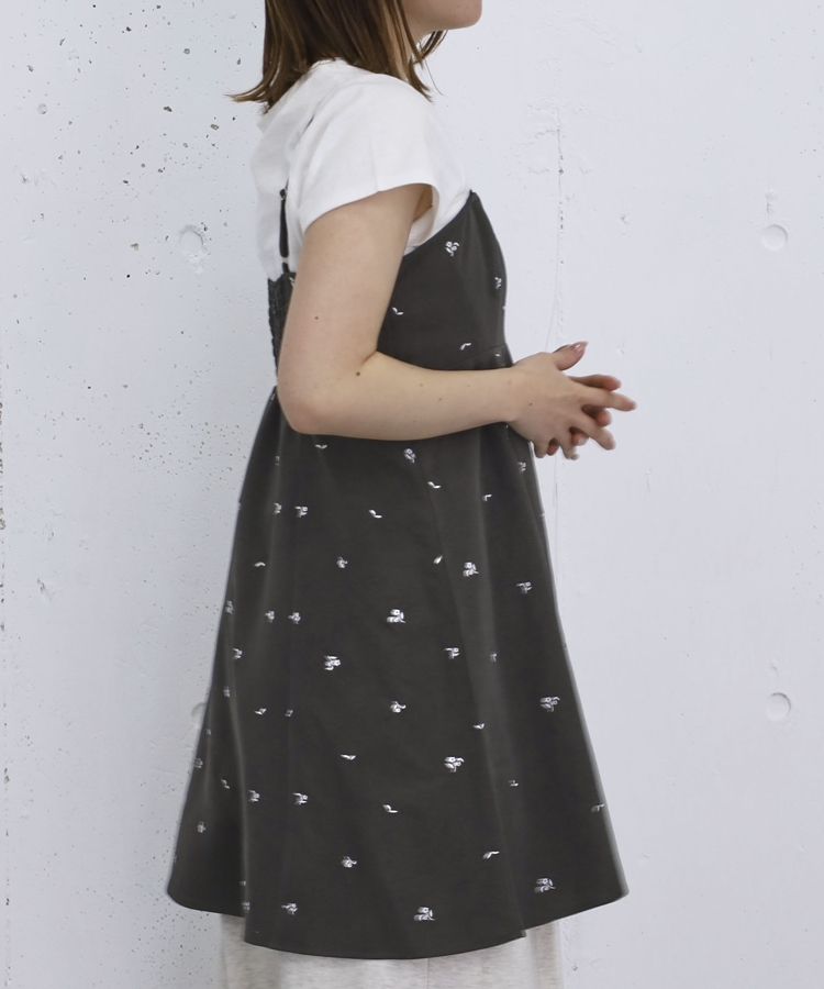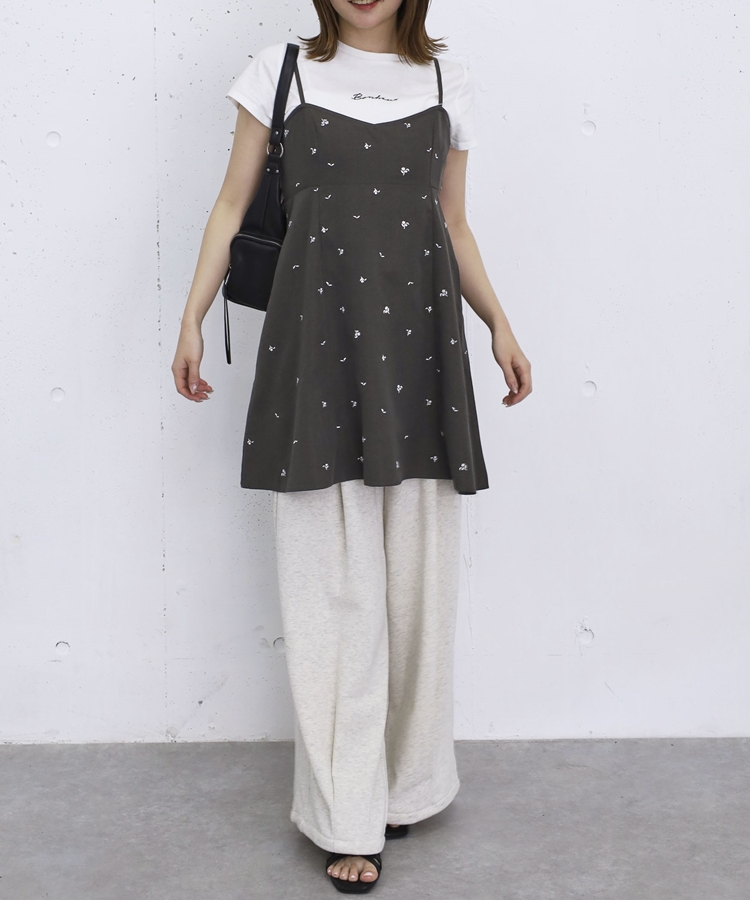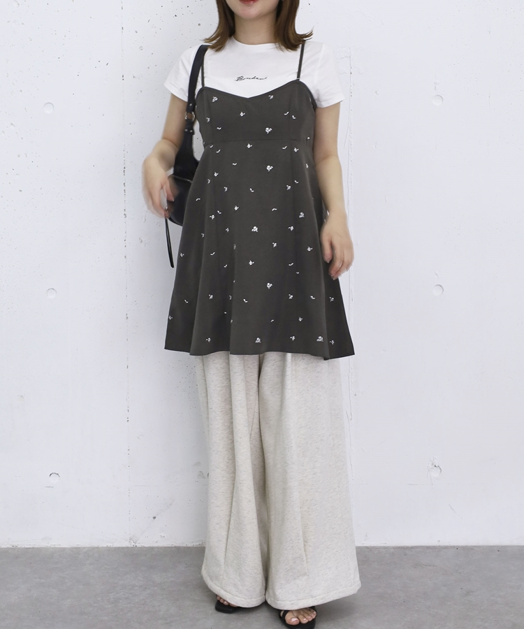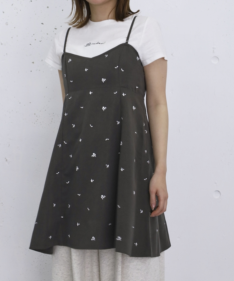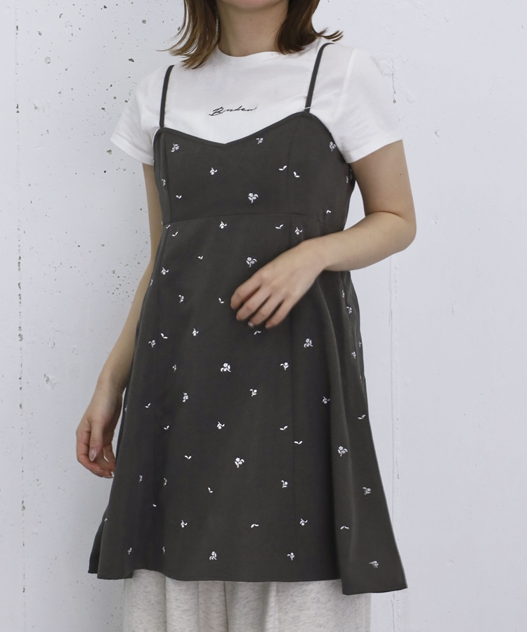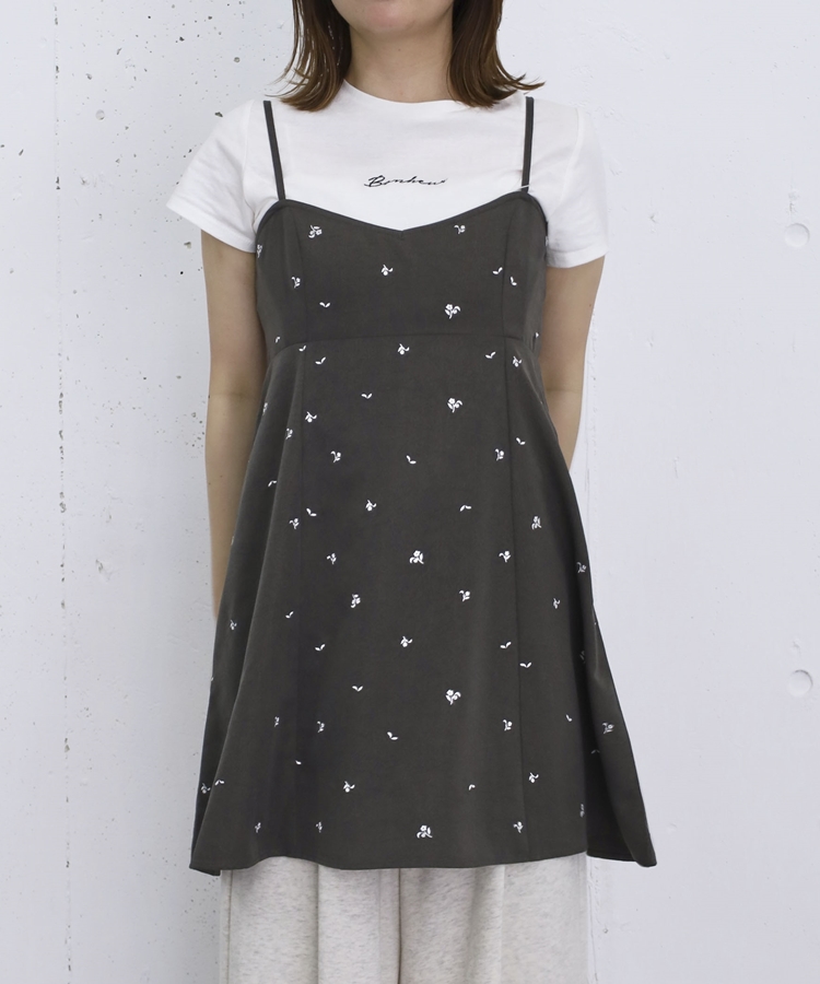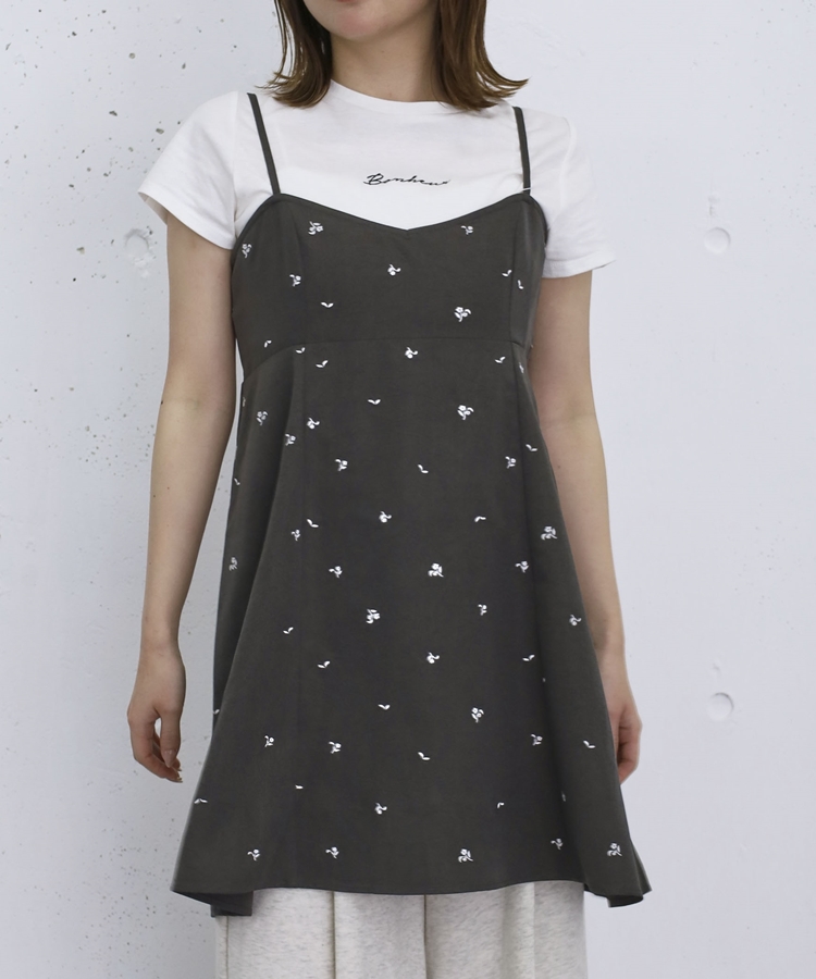 花柄刺繍ミニキャミOP CHARCOAL GRAY