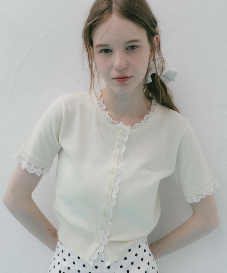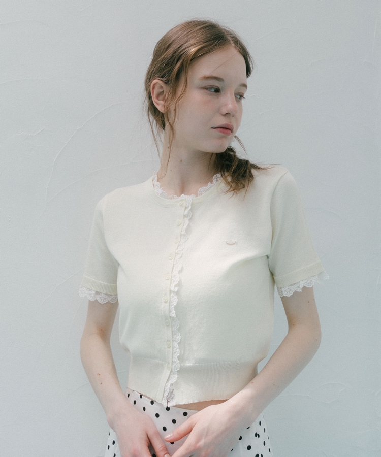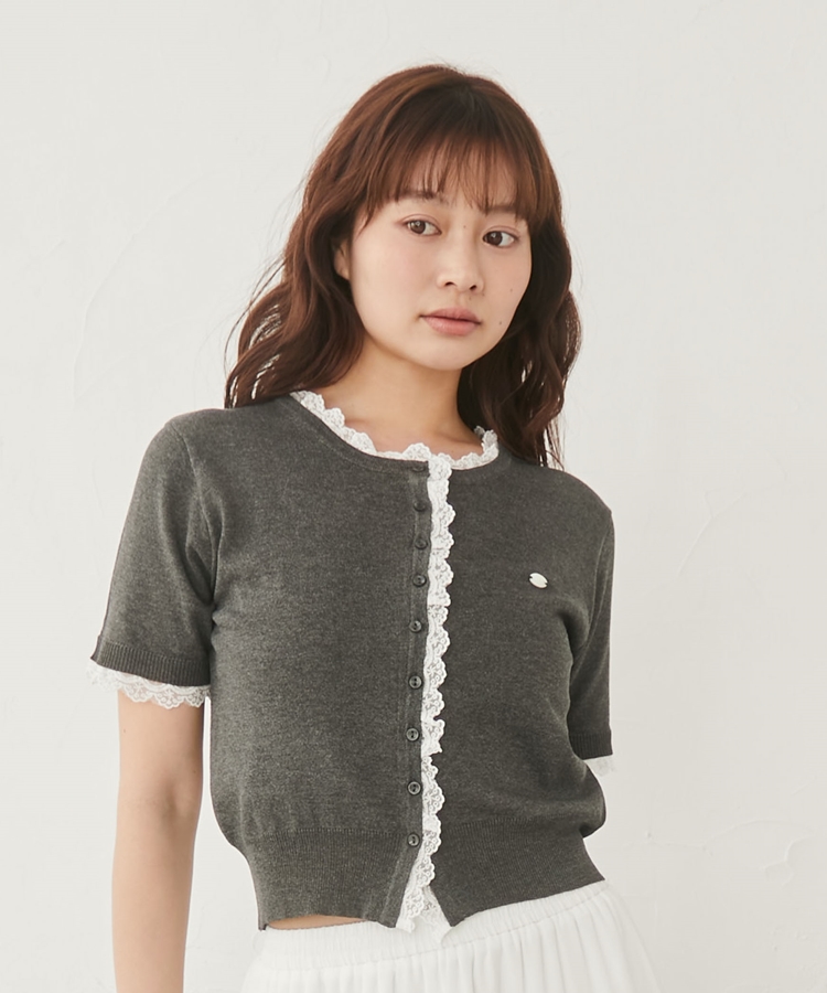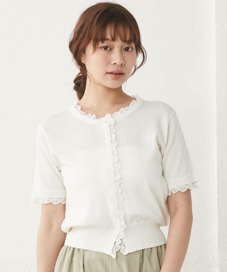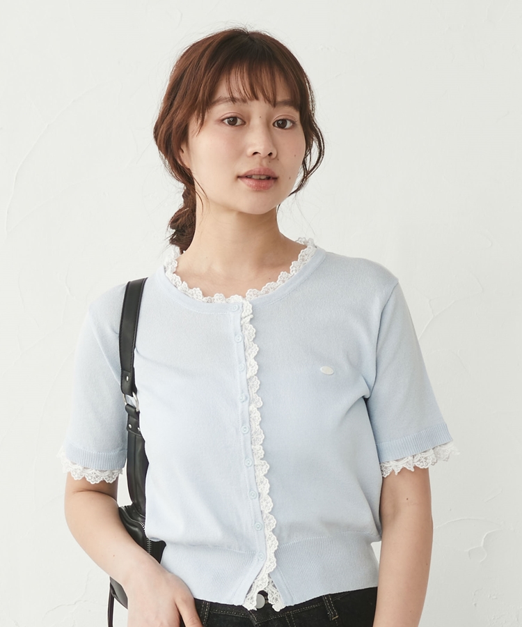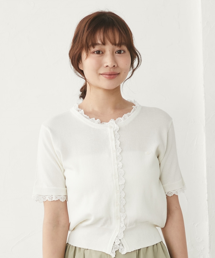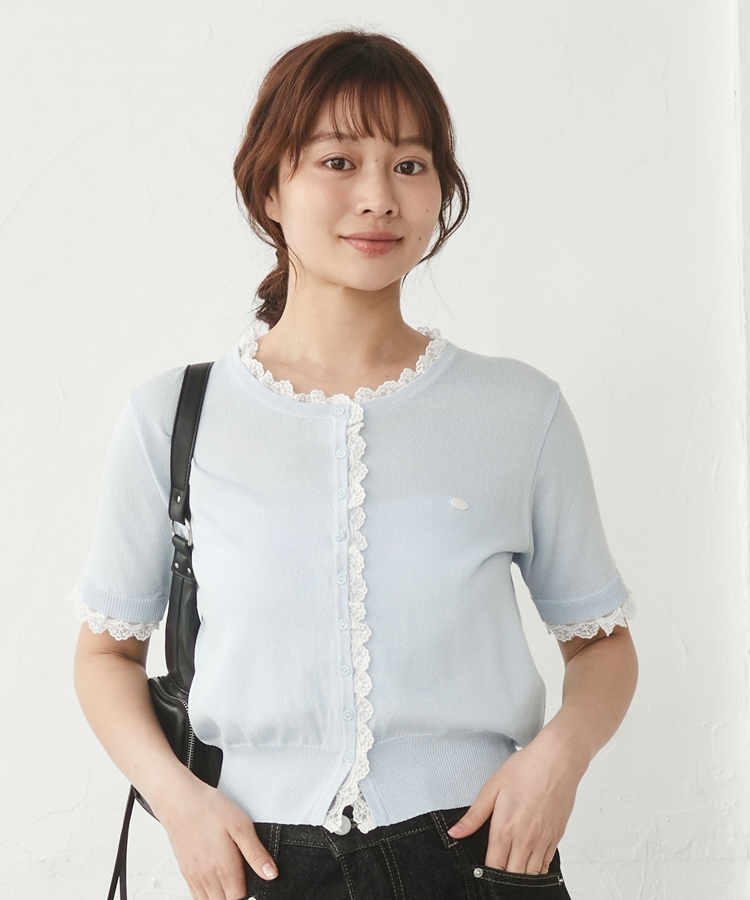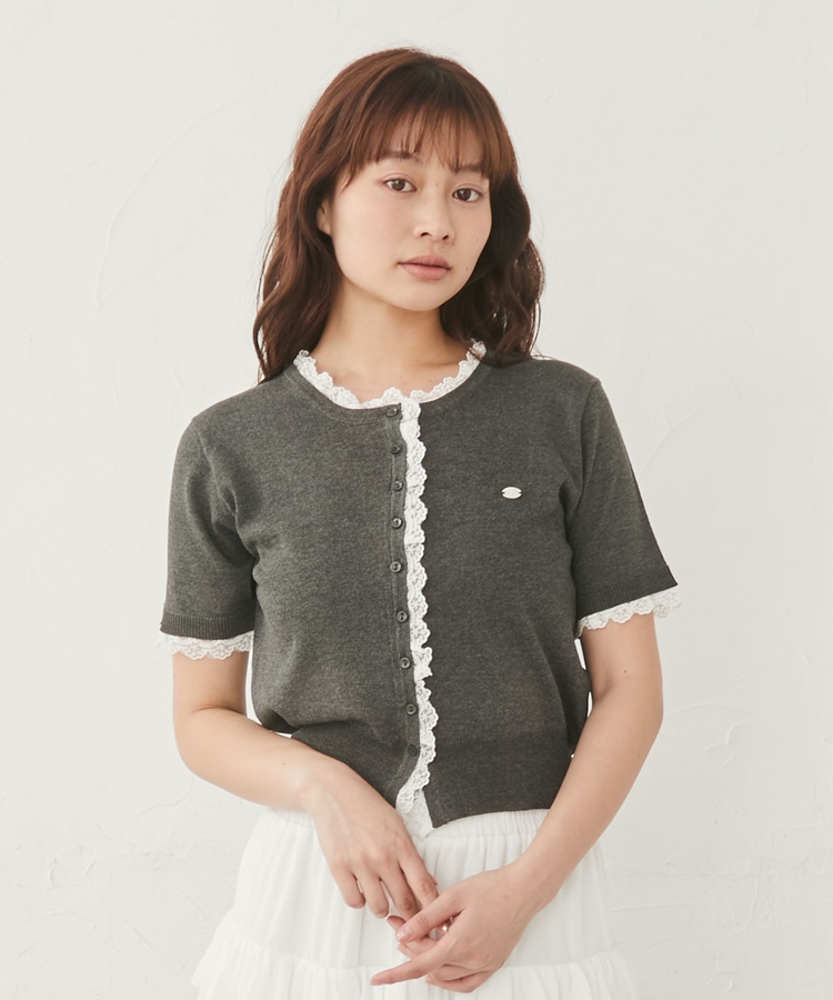 ■夏も可愛く着られる、ハーフスリーブレースレイヤードニットカーディガン■【デザイン】・人気だったカーディガンの半袖&夏素材バージョン・袖口や前立て、襟ぐりにあしらわれたレースが華やかな印象・さりげないレース使いで甘くなりすぎないデザイン・胸元のシェルプレートがきらっと光るワンポイントに・トップスとしても羽織としても使える万能アイテム【素材感】・薄手でさらっとしたニット素材・通気性がよく、夏でも快適に着られる軽やかさ・柔らかく肌なじみの良い着心地ーーーーーーーーーーーーーーー透け感:あり裏地:なし伸縮性:あり光沢感:なし生地厚さ:薄手洗濯方法:洗濯可※詳しいお手入れ方法は商品についているタグをご覧くださいーーーーーーーーーーーーーーー※ご利用のモニター環境により、実際の色味と多少異なる場合がございます【スタイリング】・デニムと合わせてカジュアルに甘さをプラス・ティアードスカートと合わせてフェミニンなコーデに・スラックスと合わせてきれいめミックスにも◎・ボタンを閉めてトップス風にも、羽織としても着回し可能▼スタッフ別の詳しい着こなしは下の COORDINATE をチェック