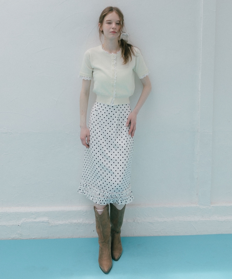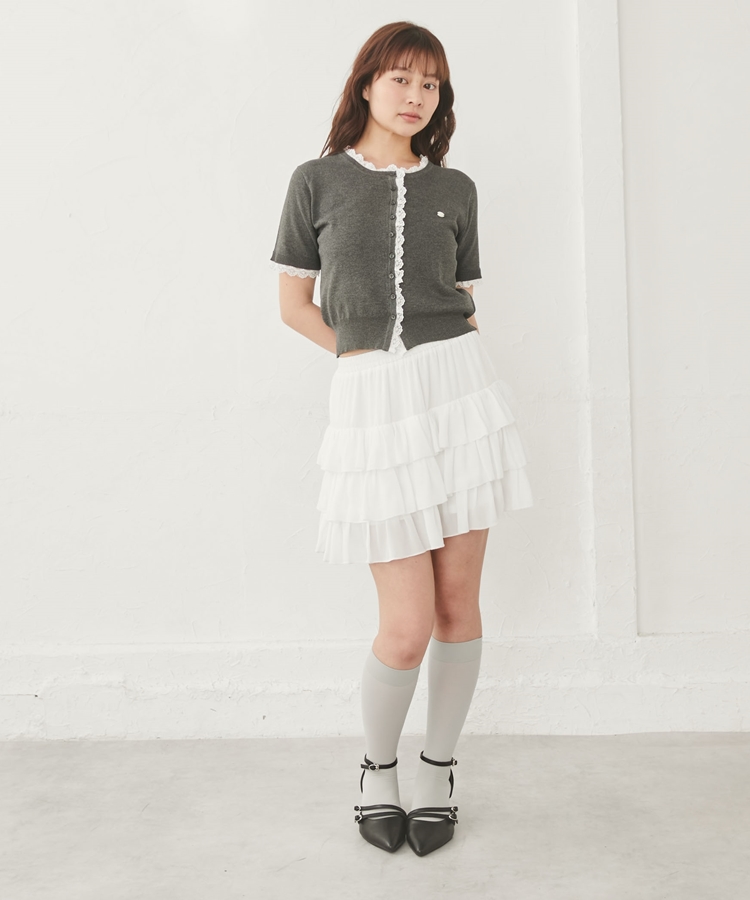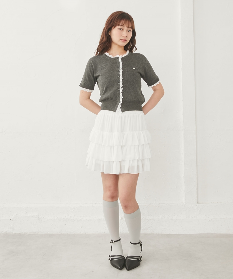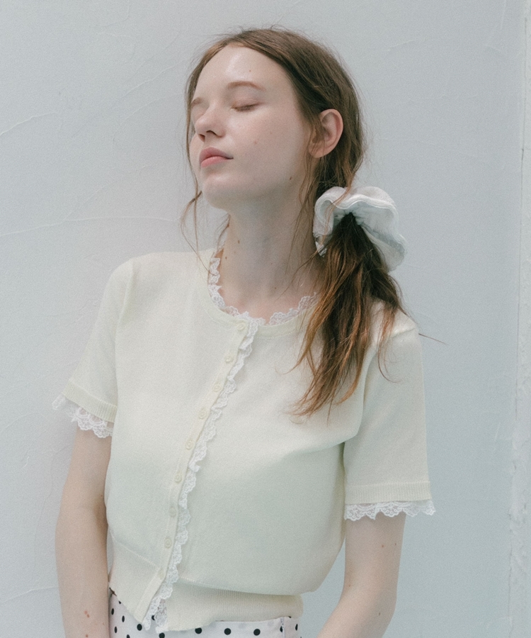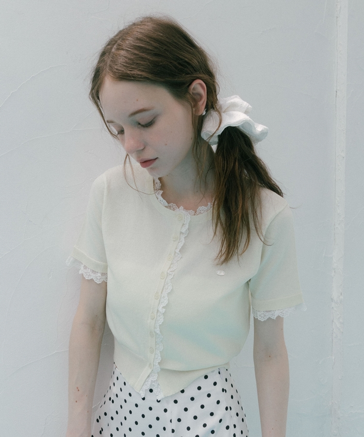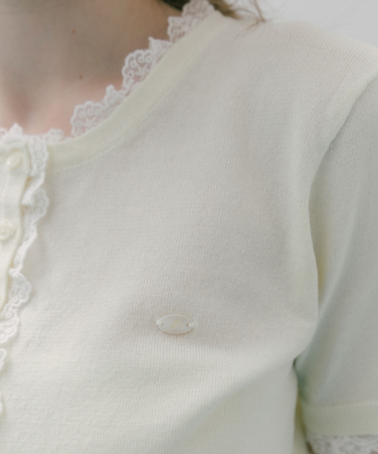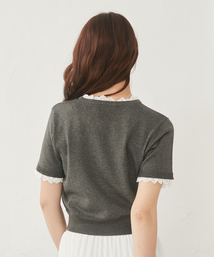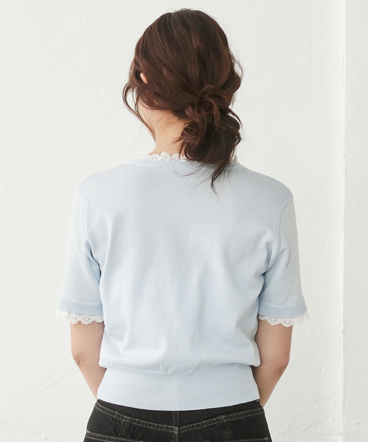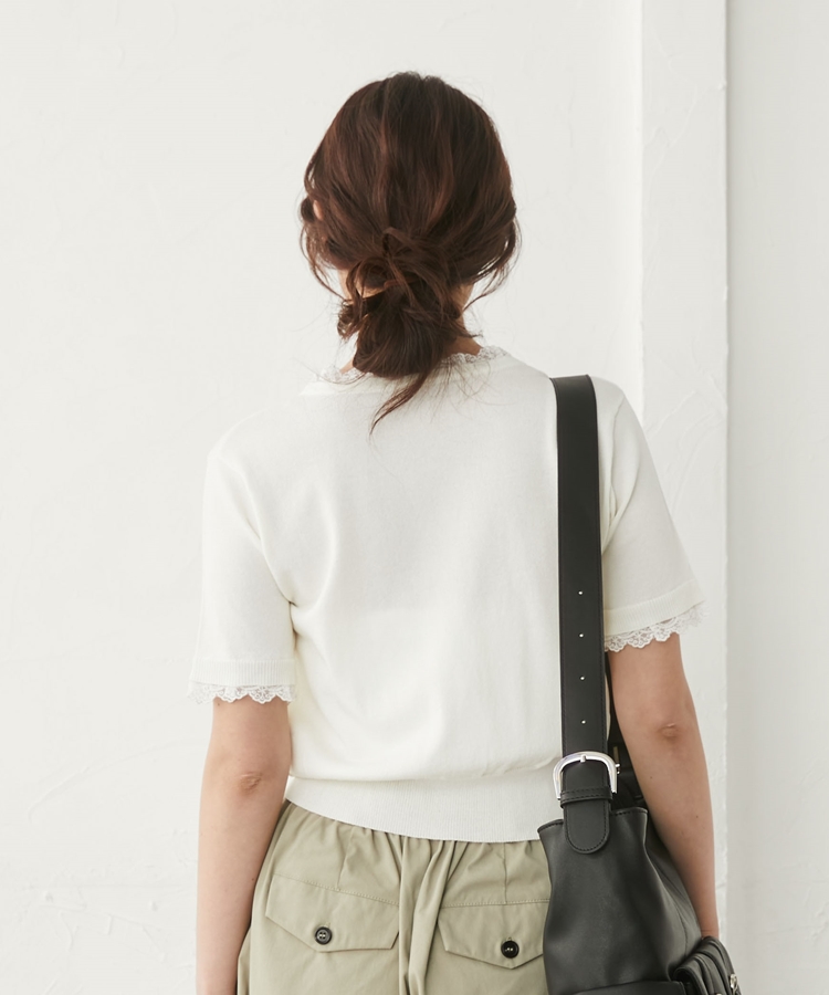 ■夏も可愛く着られる、ハーフスリーブレースレイヤードニットカーディガン■【デザイン】・人気だったカーディガンの半袖&夏素材バージョン・袖口や前立て、襟ぐりにあしらわれたレースが華やかな印象・さりげないレース使いで甘くなりすぎないデザイン・胸元のシェルプレートがきらっと光るワンポイントに・トップスとしても羽織としても使える万能アイテム【素材感】・薄手でさらっとしたニット素材・通気性がよく、夏でも快適に着られる軽やかさ・柔らかく肌なじみの良い着心地ーーーーーーーーーーーーーーー透け感:あり裏地:なし伸縮性:あり光沢感:なし生地厚さ:薄手洗濯方法:洗濯可※詳しいお手入れ方法は商品についているタグをご覧くださいーーーーーーーーーーーーーーー※ご利用のモニター環境により、実際の色味と多少異なる場合がございます【スタイリング】・デニムと合わせてカジュアルに甘さをプラス・ティアードスカートと合わせてフェミニンなコーデに・スラックスと合わせてきれいめミックスにも◎・ボタンを閉めてトップス風にも、羽織としても着回し可能▼スタッフ別の詳しい着こなしは下の COORDINATE をチェック
