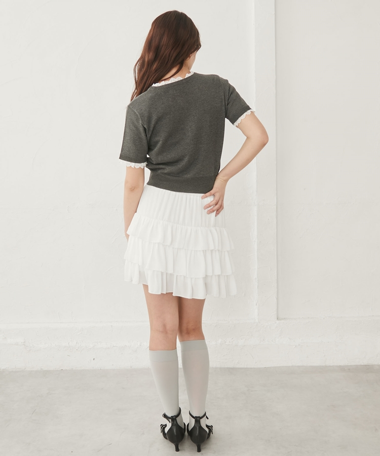 ハーフスリーブレースレイヤードニットカーディガン