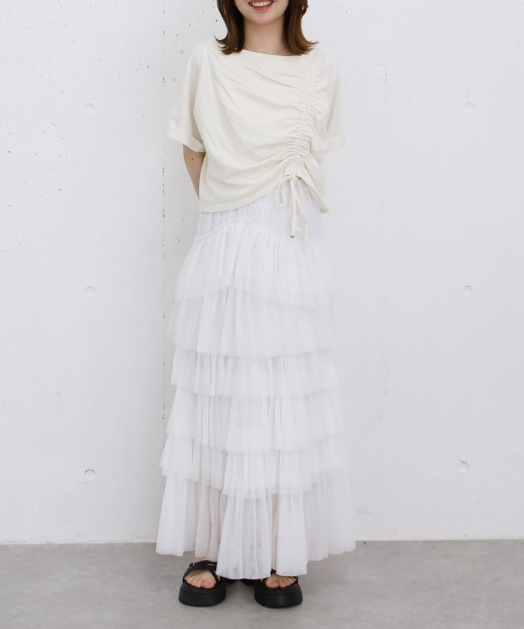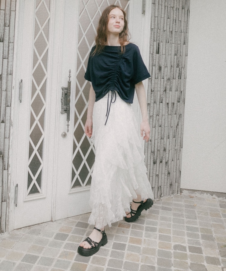 ・ドロストを絞ってコンパクトに着るとスタイルアップ効果も◎