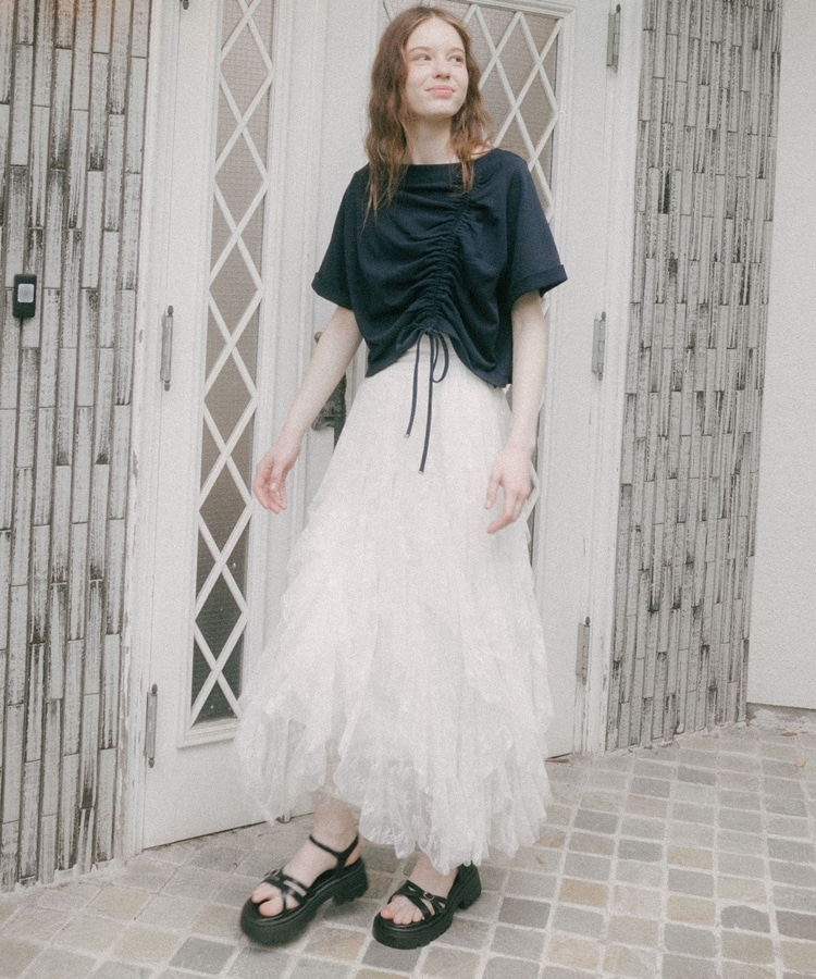 ・片側だけドロストが入ったアシンメトリーなデザインがポイント