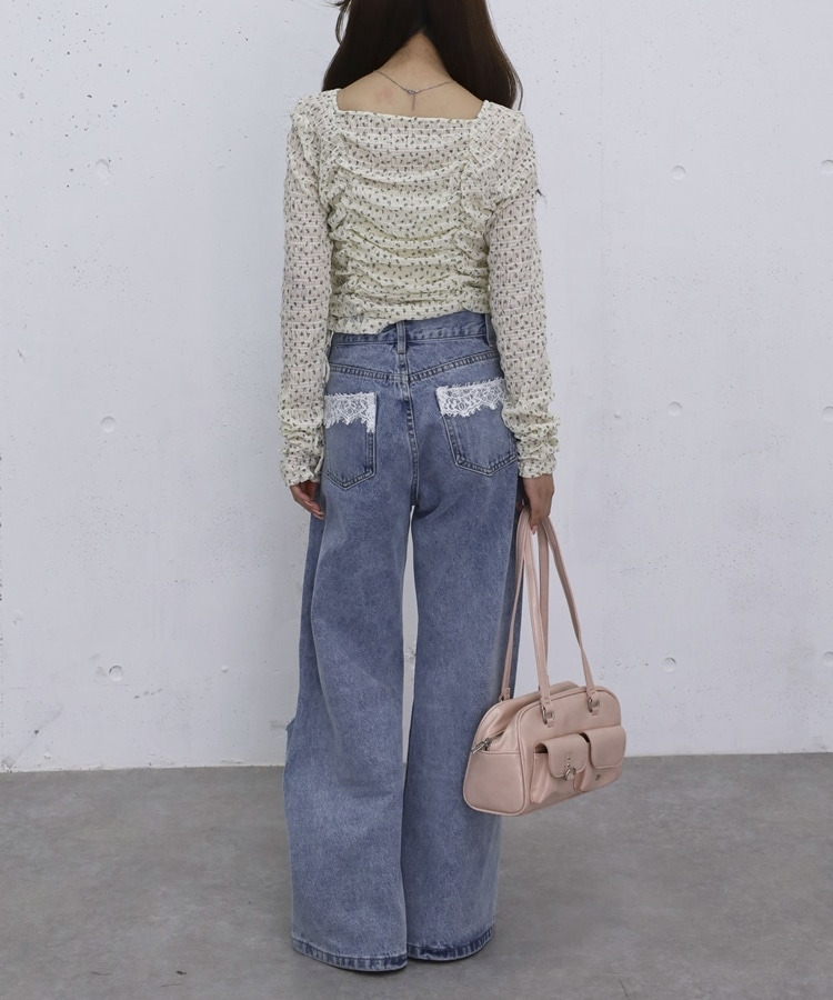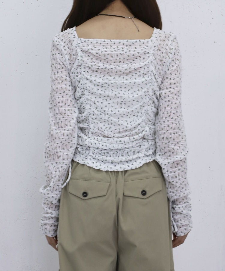 ・立体感のあるジャガード生地が特徴のギャザートップス