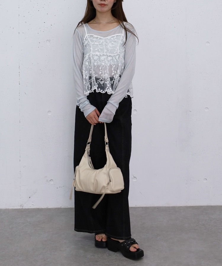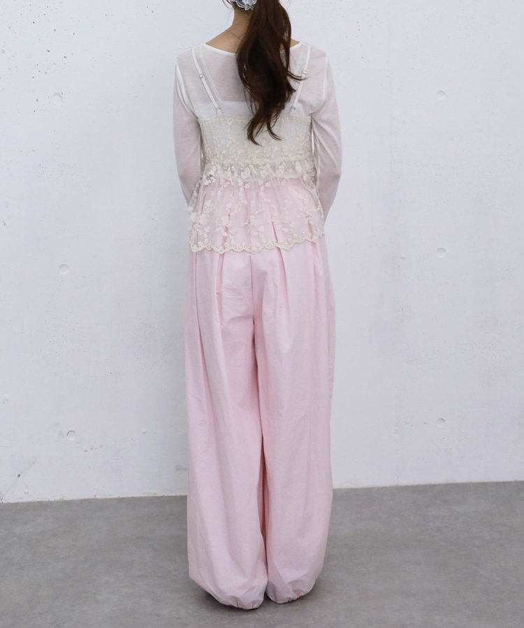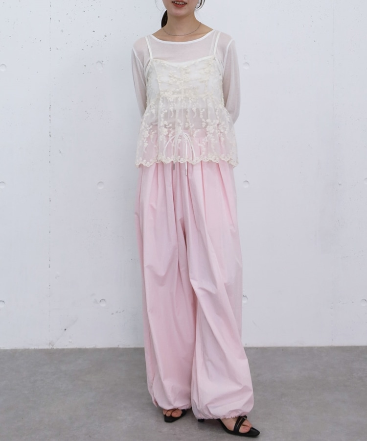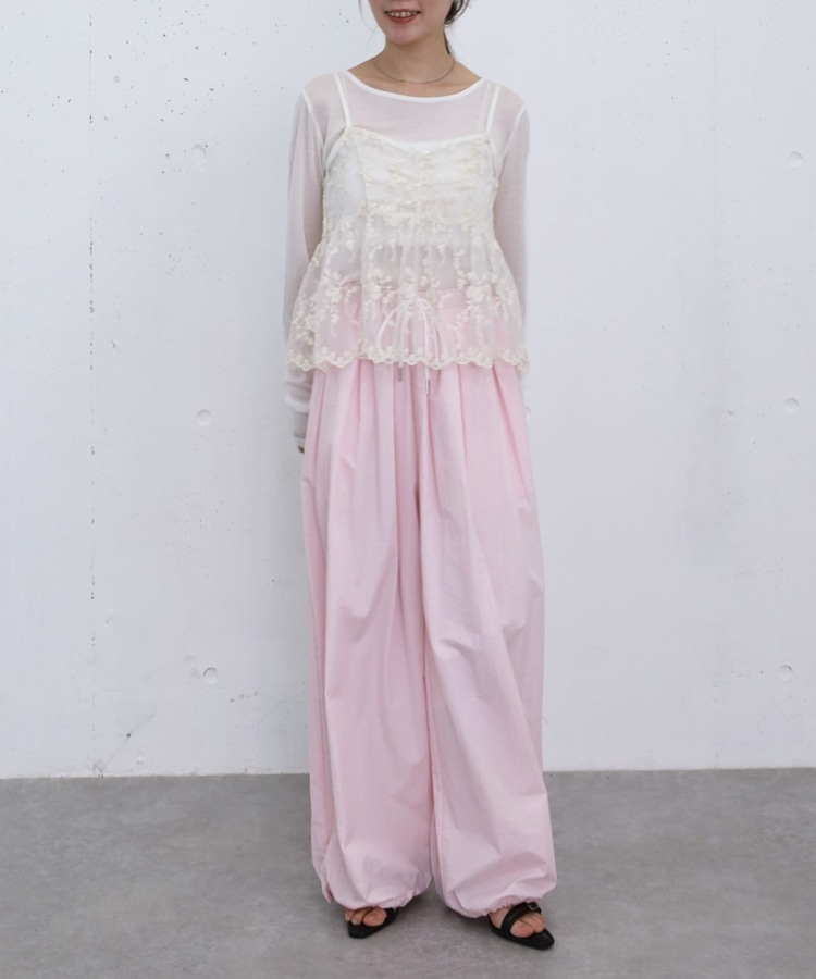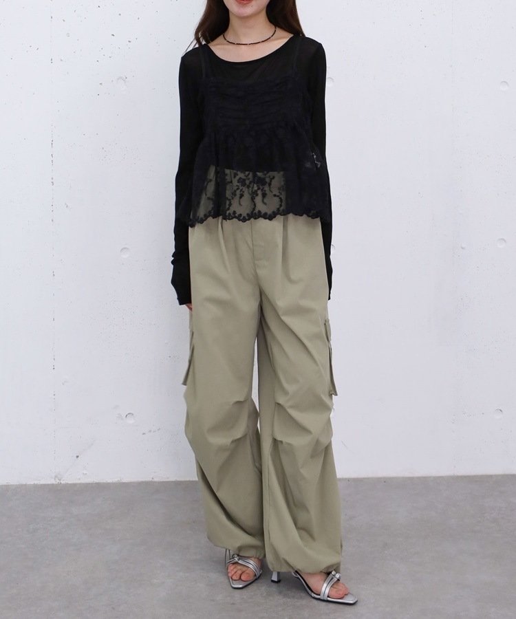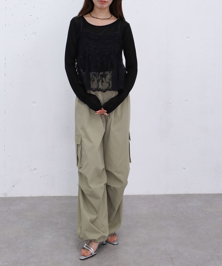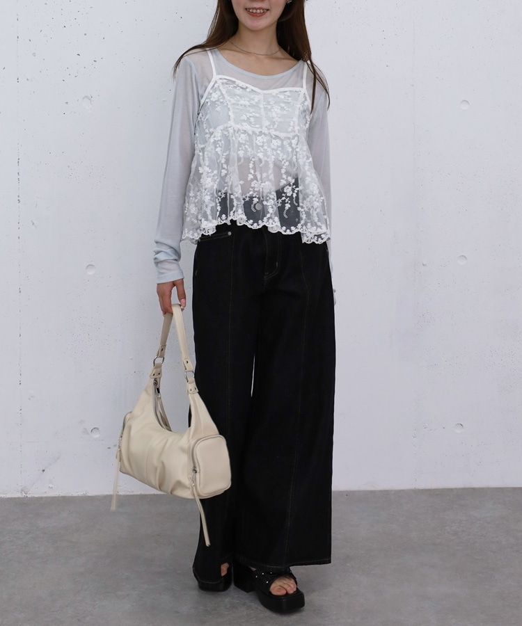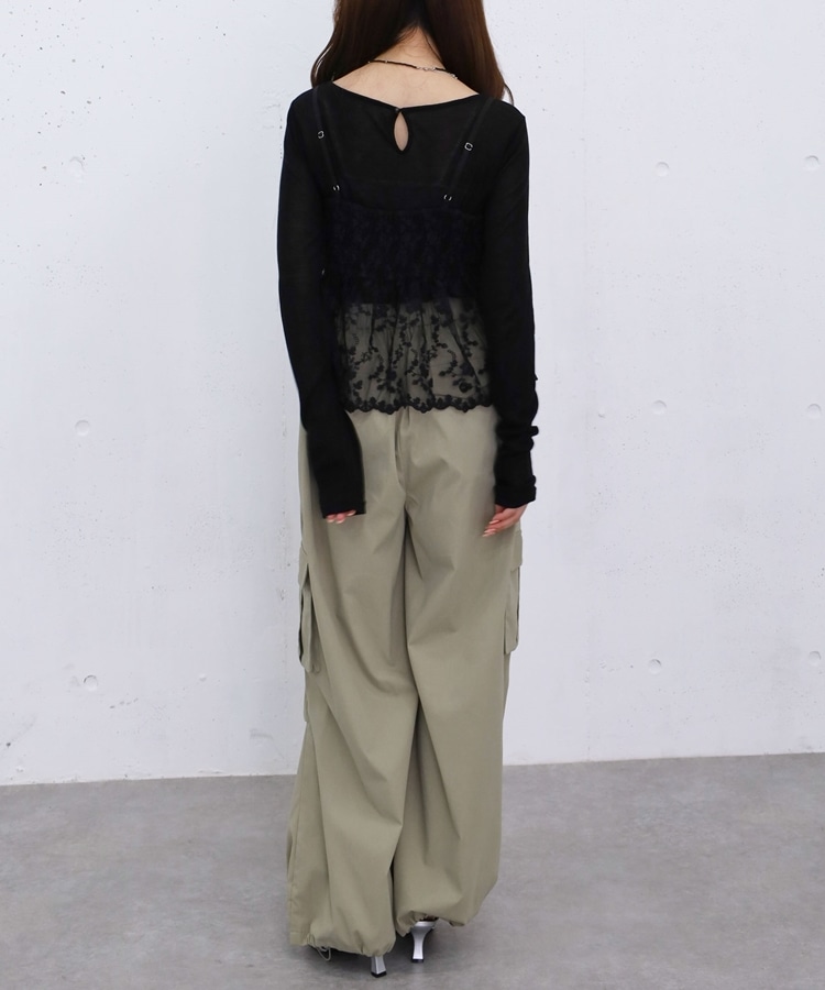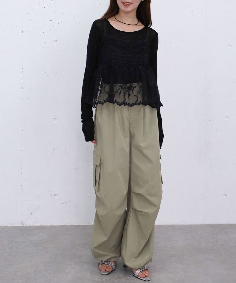 ■華やかさと着回しを叶える、刺繍レースペプラムビスチェ×シアーカットトップス■【デザイン】・繊細な刺繍レースが目を引くビスチェとシアートップスのセットアイテム・ビスチェは胸下切り替えのペプラムシルエットで、ふんわりとした立体感が可愛いデザイン・刺繍レースの上品さと華やかさでコーデの主役になる一枚・シアートップスはベーシックで使いやすく、抜け感のあるスタイリングに・セットでの着用はもちろん、それぞれ単体でも活躍する万能アイテム【素材感】・ビスチェは繊細で立体感のある刺繍レース素材・シアートップスは軽やかで柔らかい着心地・程よい透け感で春夏らしい涼しげな印象にーーーーーーーーーーーーーーー透け感:あり裏地:なし伸縮性:あり光沢感:なし生地厚さ:薄手洗濯方法:洗濯可※詳しいお手入れ方法は商品についているタグをご覧くださいーーーーーーーーーーーーーーー※ご利用のモニター環境により、実際の色味と多少異なる場合がございます。【スタイリング】・セットで着て華やかなレイヤードコーデに・デニムやカーゴパンツと合わせてカジュアルミックスに・スラックスと合わせて大人っぽいきれいめコーデにも◎・シアートップスはキャミワンピや他のビスチェと合わせて着回しも楽しめる▼スタッフ別の詳しい着こなしは下の COORDINATE をチェック