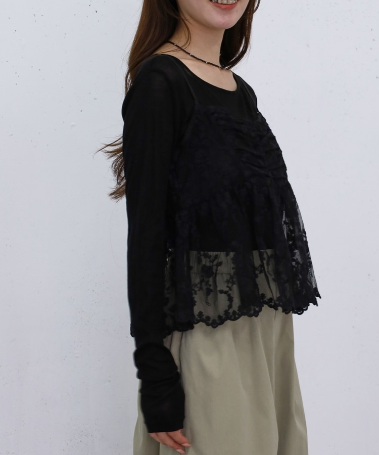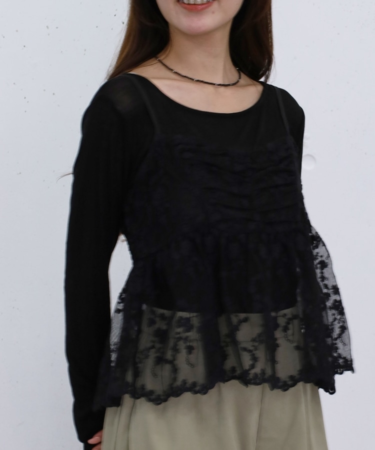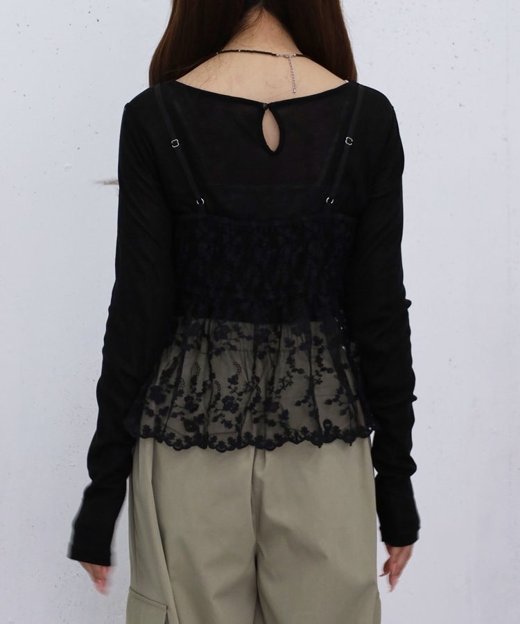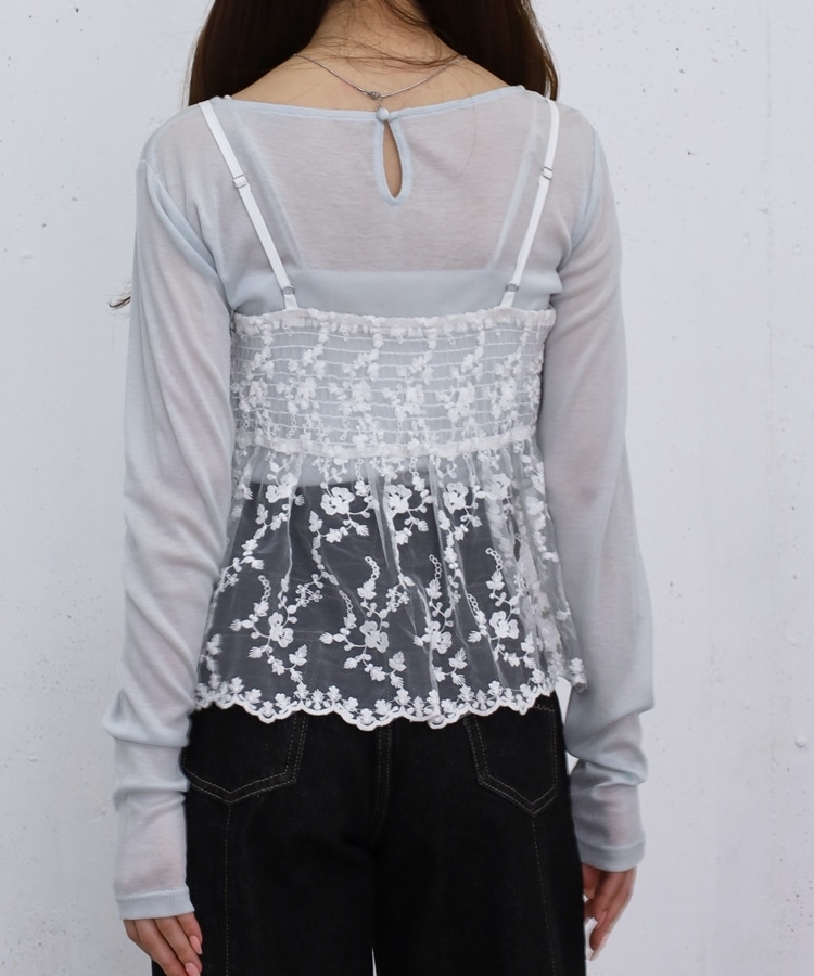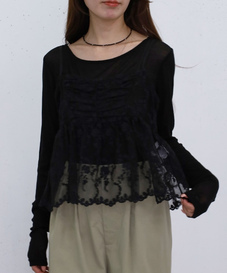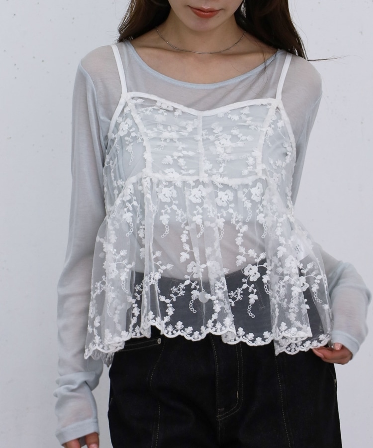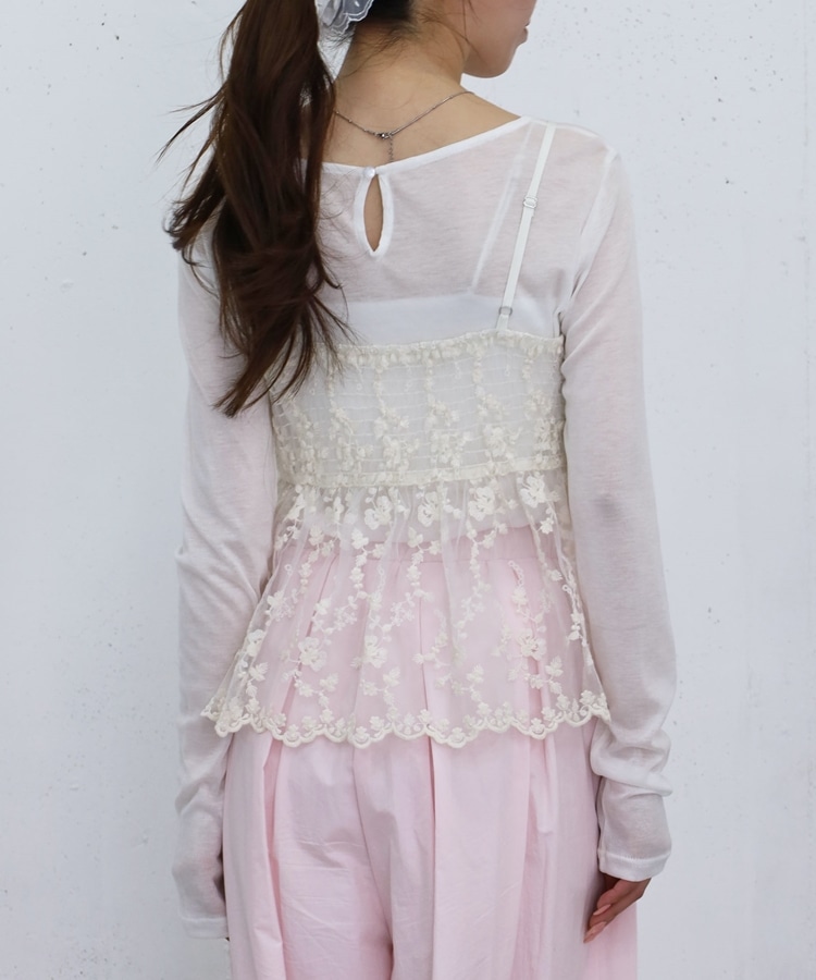 刺繍レースペプラムビスチェ×シアーカットTOPS