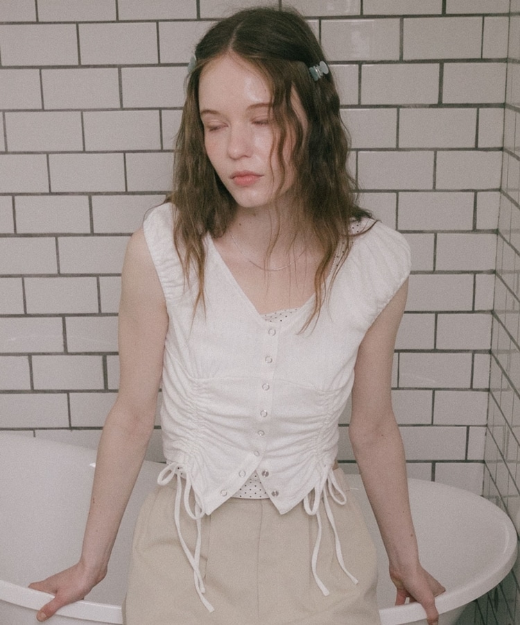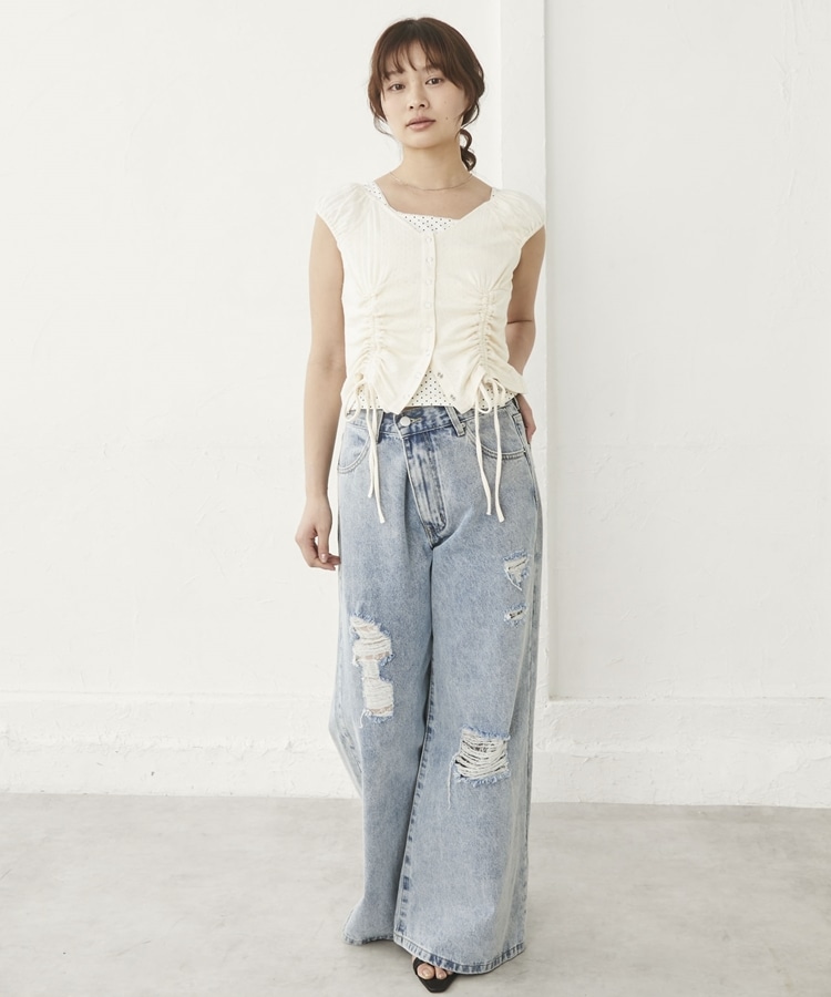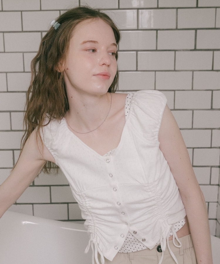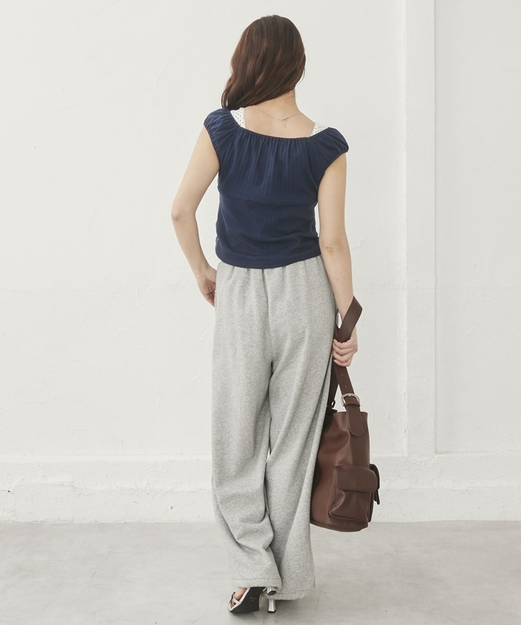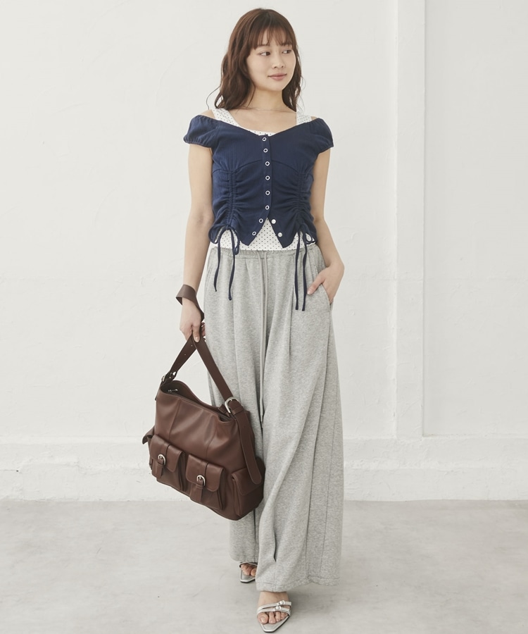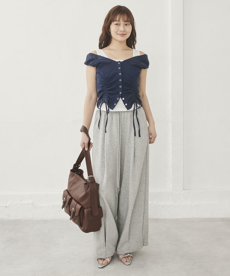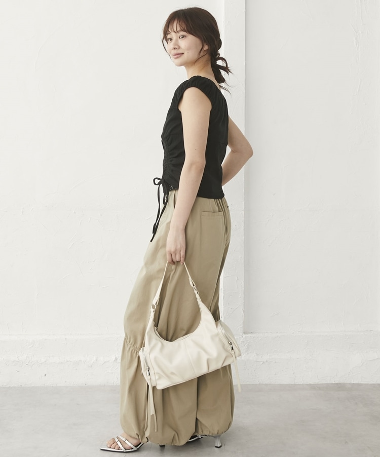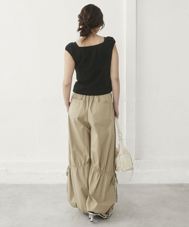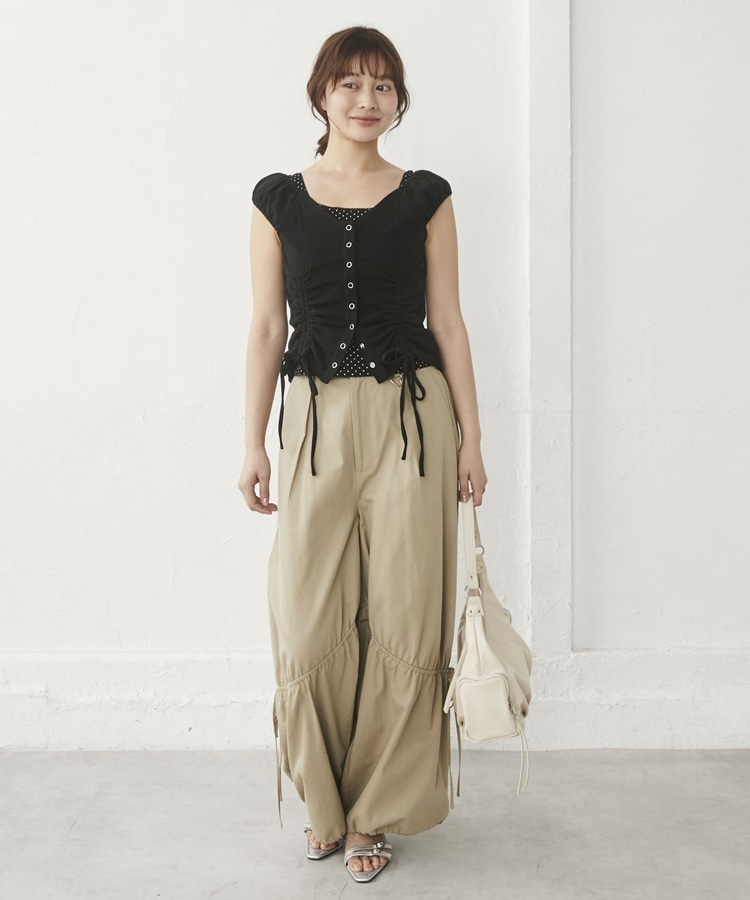 ・トップスはドロスト仕様で、絞り具合によって丈感やシルエットをアレンジ可能