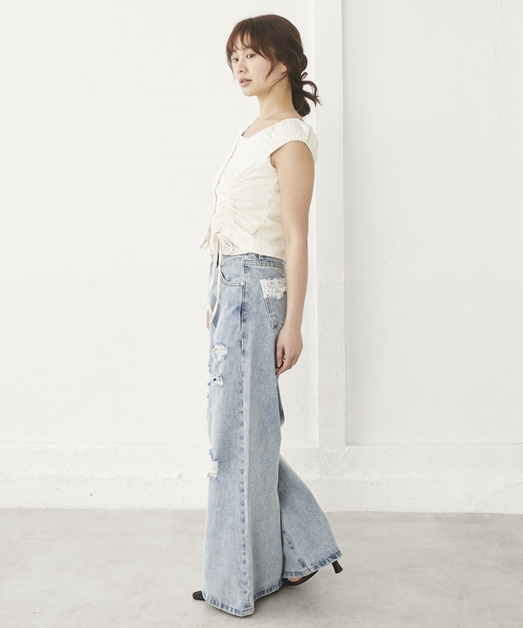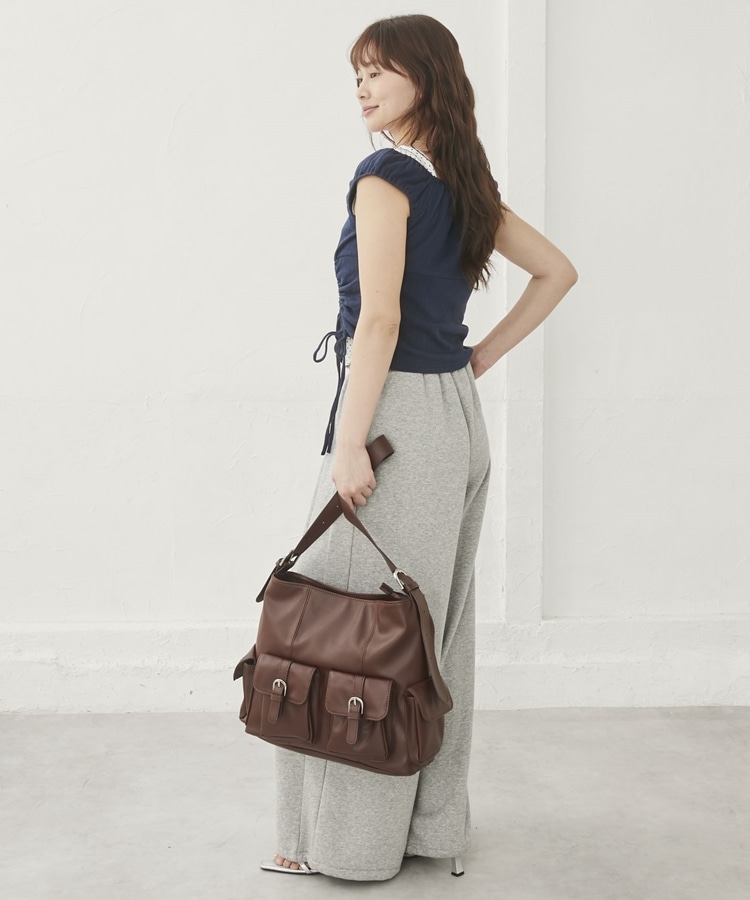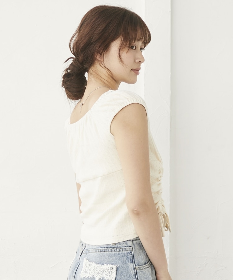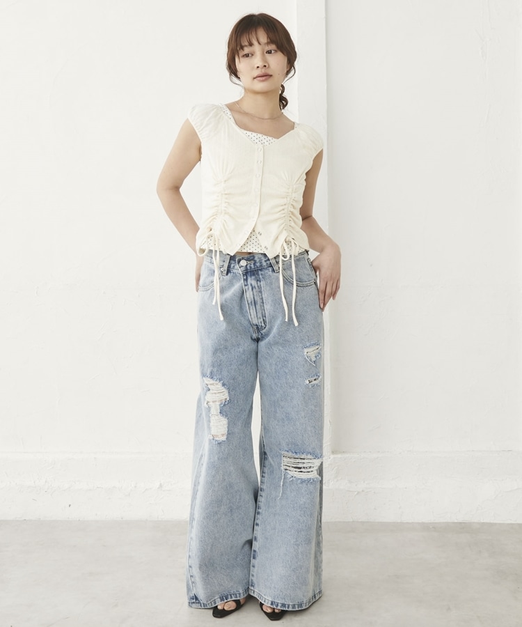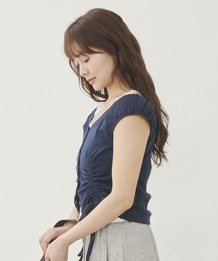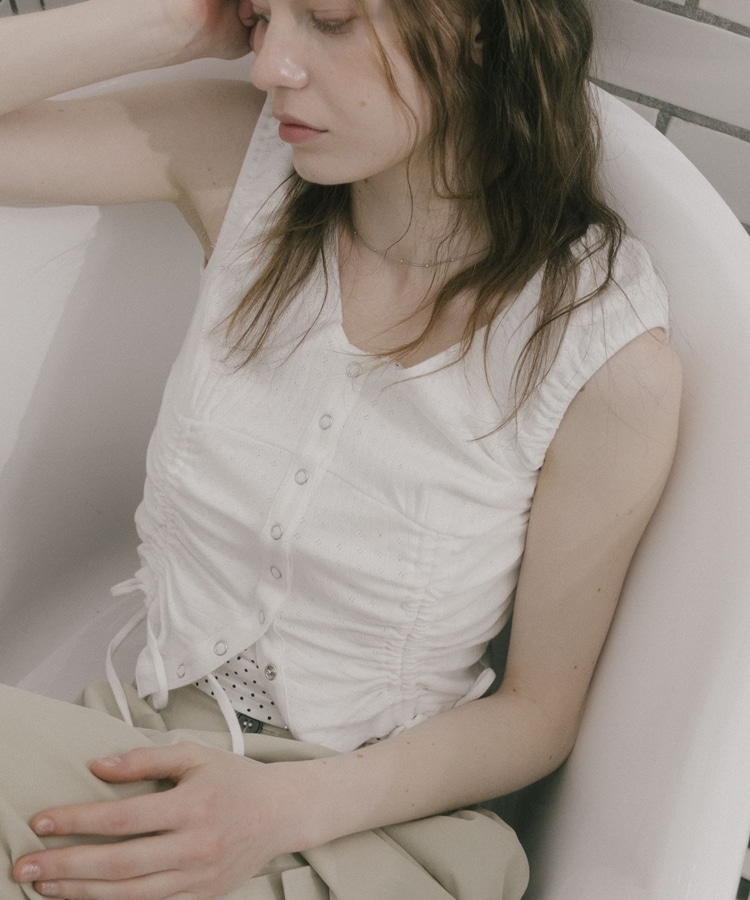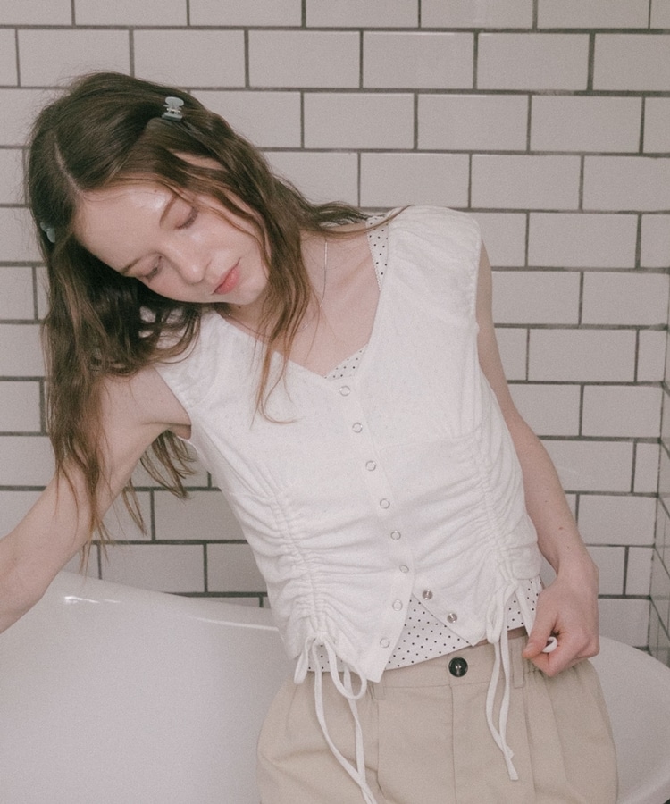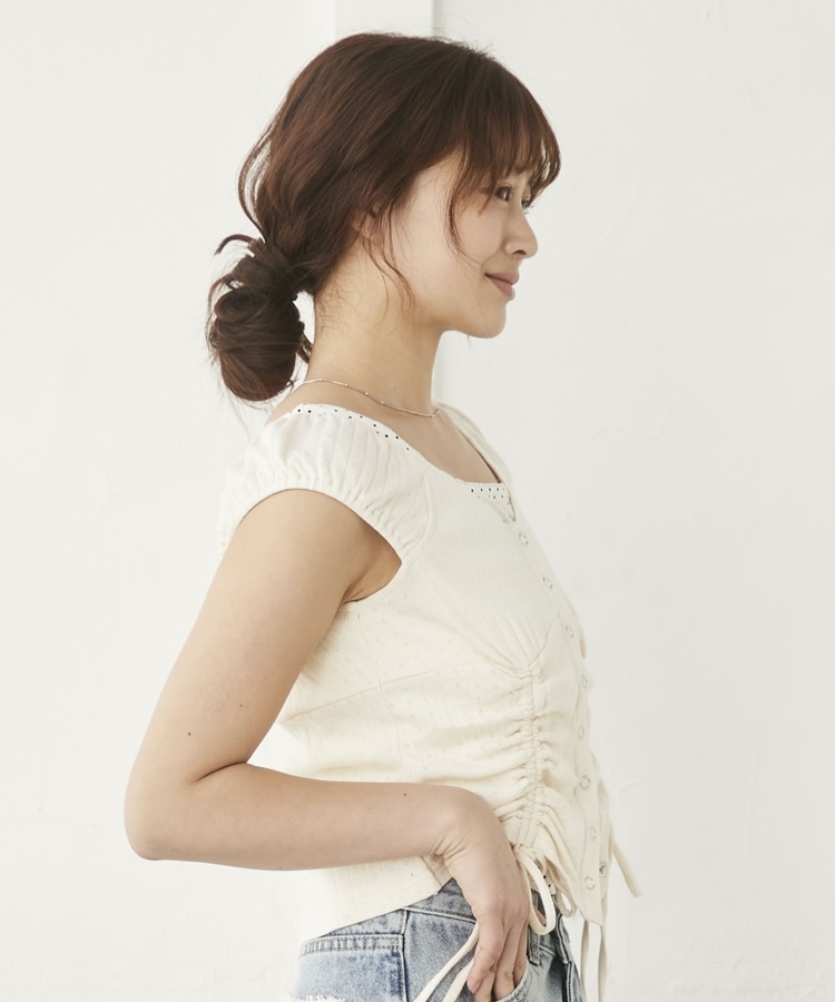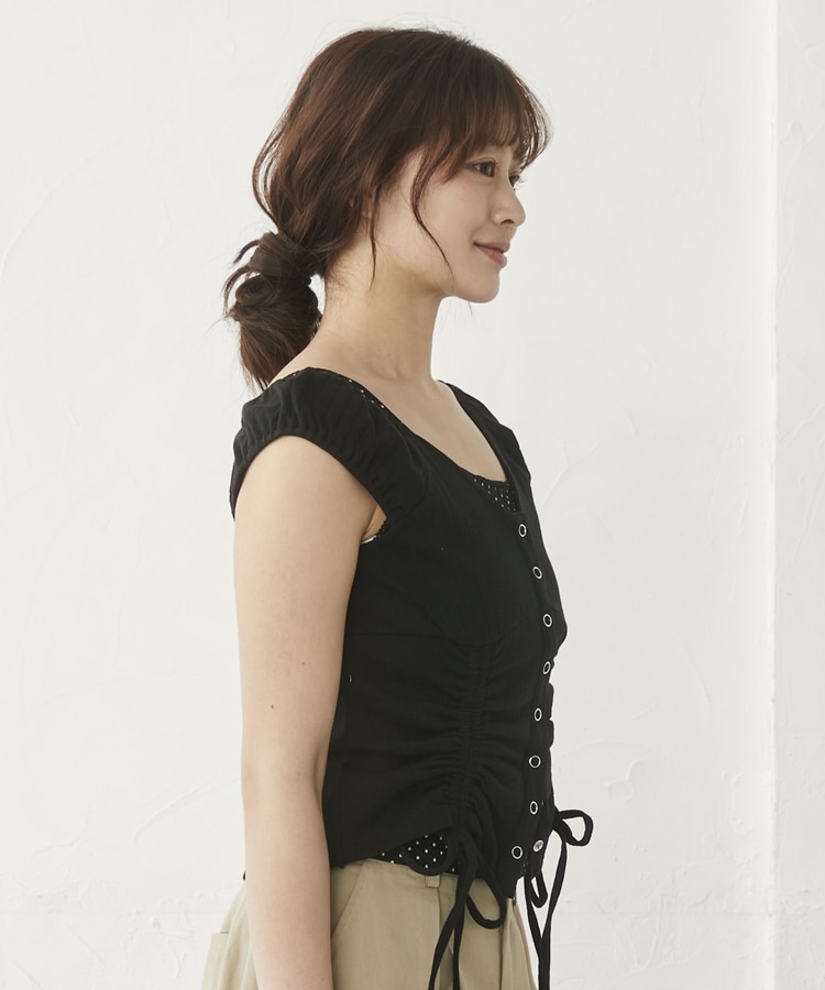 ・トップスはドロスト仕様で、絞り具合によって丈感やシルエットをアレンジ可能
