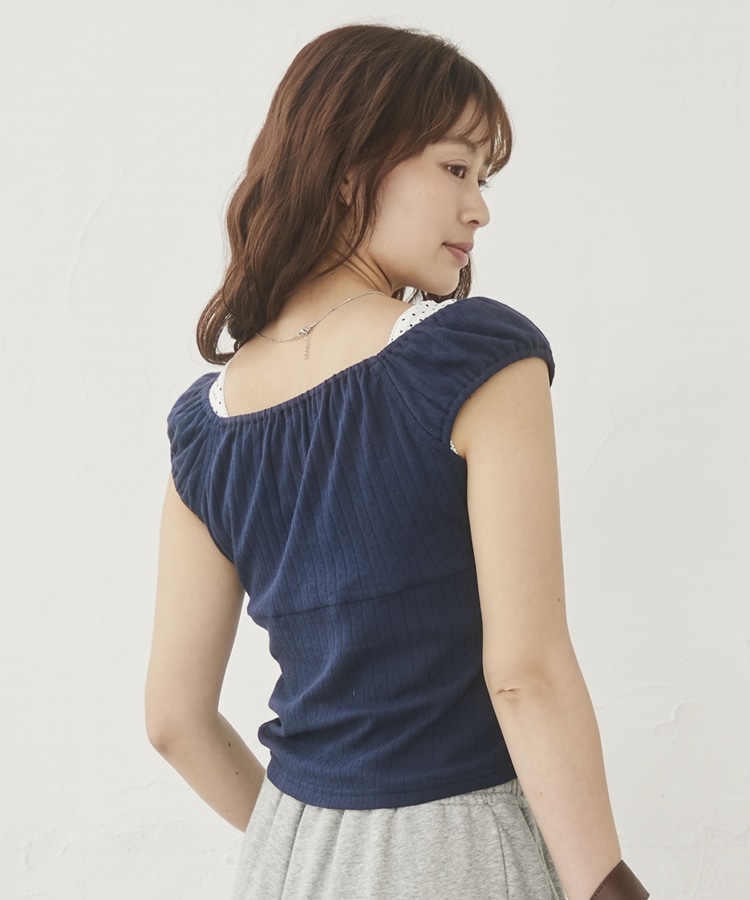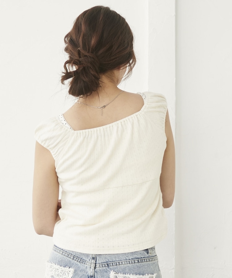 ・肩部分はゴム入りでオフショルにもできる2way仕様