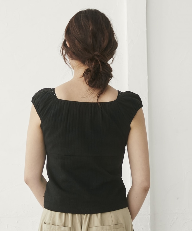 ・ハリヌキ編みのトップスは表面感があり、柔らかく伸縮性のある素材