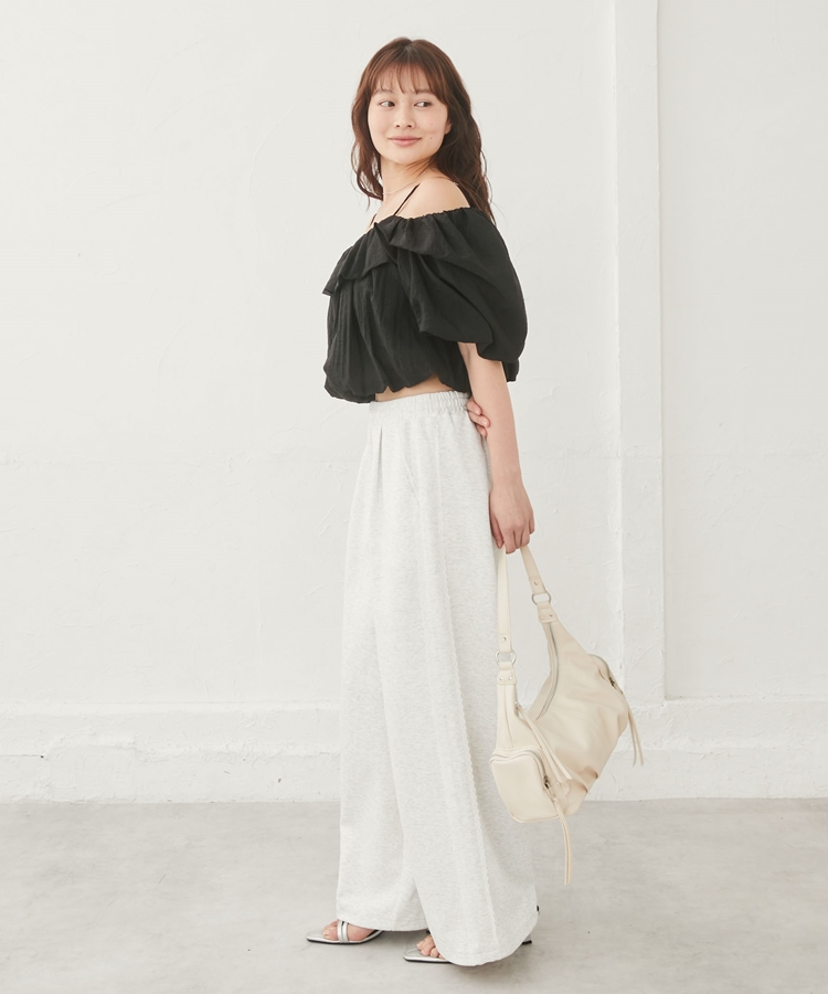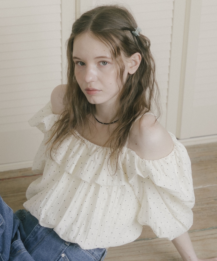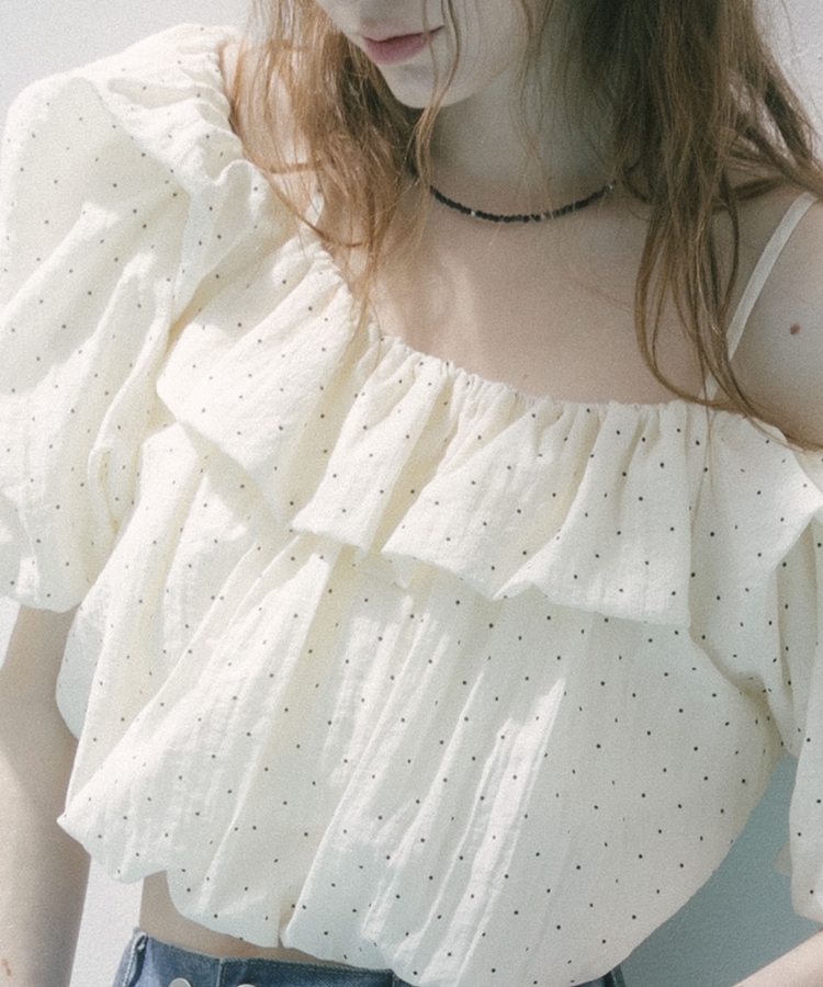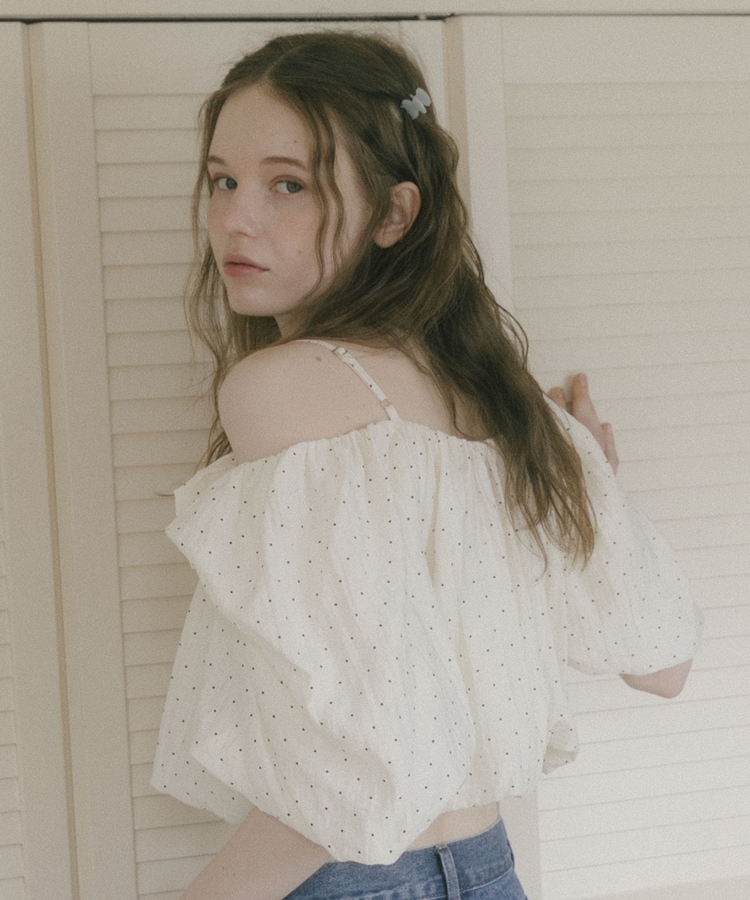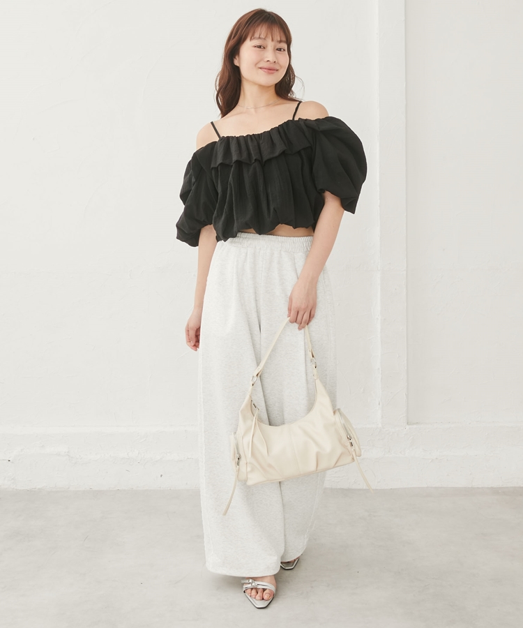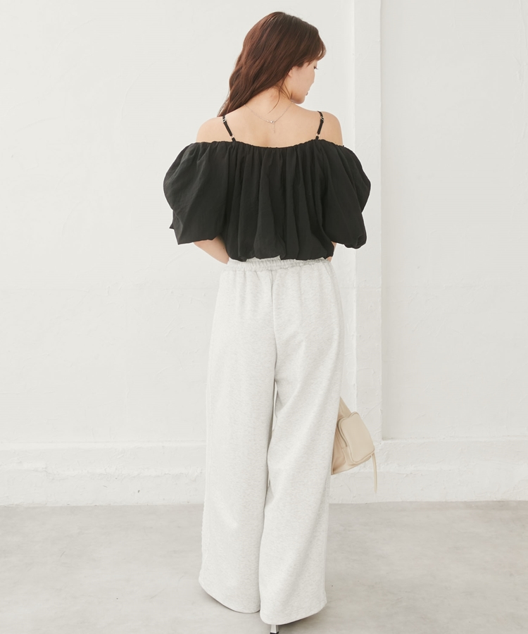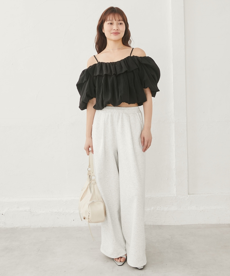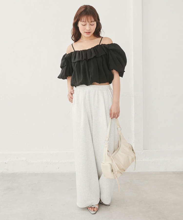 ■ボリューム×フリルで華やぐ、主役級オフショルブラウス■【デザイン】・たっぷりのタックとフリルで立体感のある華やかなデザイン・オフショル仕様でデコルテをきれいに見せ女性らしさを演出・バルーンシルエットがトレンド感と可愛らしさをプラス・肩紐付きで安定感があり、着用しやすい仕様・表面感のあるナチュラルな風合いでこなれた印象に【素材感】・軽やかでふんわりとしたエアリーな素材感・柔らかく肌当たりのいい着心地・程よいハリ感でバルーンシルエットをきれいにキープーーーーーーーーーーーーーーー透け感:なし裏地:あり伸縮性:あり光沢感:なし生地厚さ:普通洗濯方法:洗濯可※詳しいお手入れ方法は商品についているタグをご覧くださいーーーーーーーーーーーーーーー※ご利用のモニター環境により、実際の色味と多少異なる場合がございます。【スタイリング】・デニムと合わせてカジュアルに大人可愛く・スラックスと合わせてきれいめコーデに・ミニボトムと合わせてトレンド感のあるスタイリングも◎▼スタッフ別の詳しい着こなしは下の COORDINATE をチェック