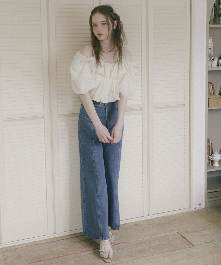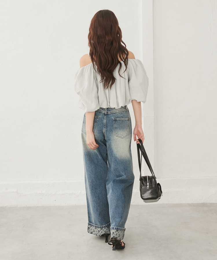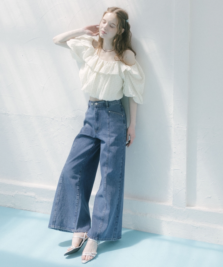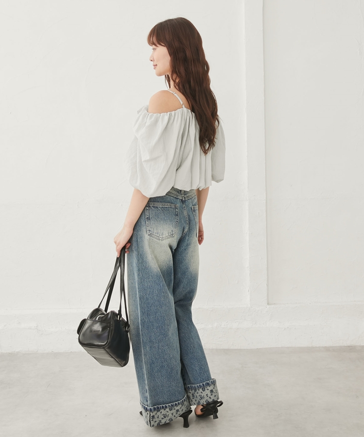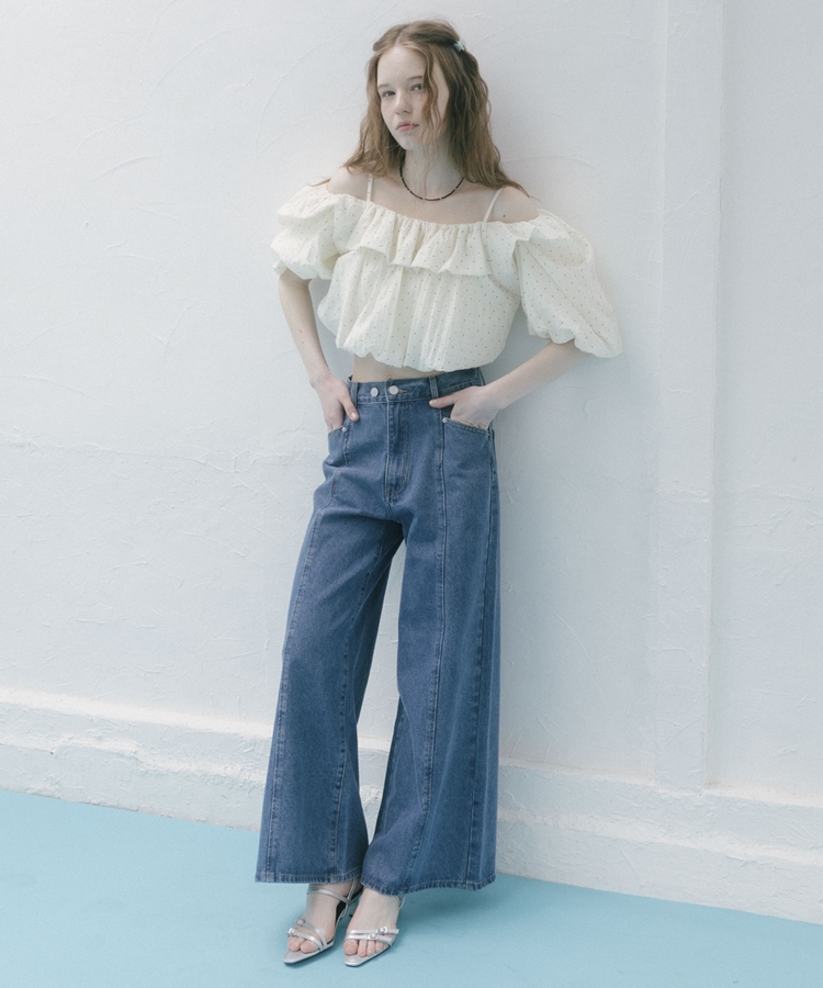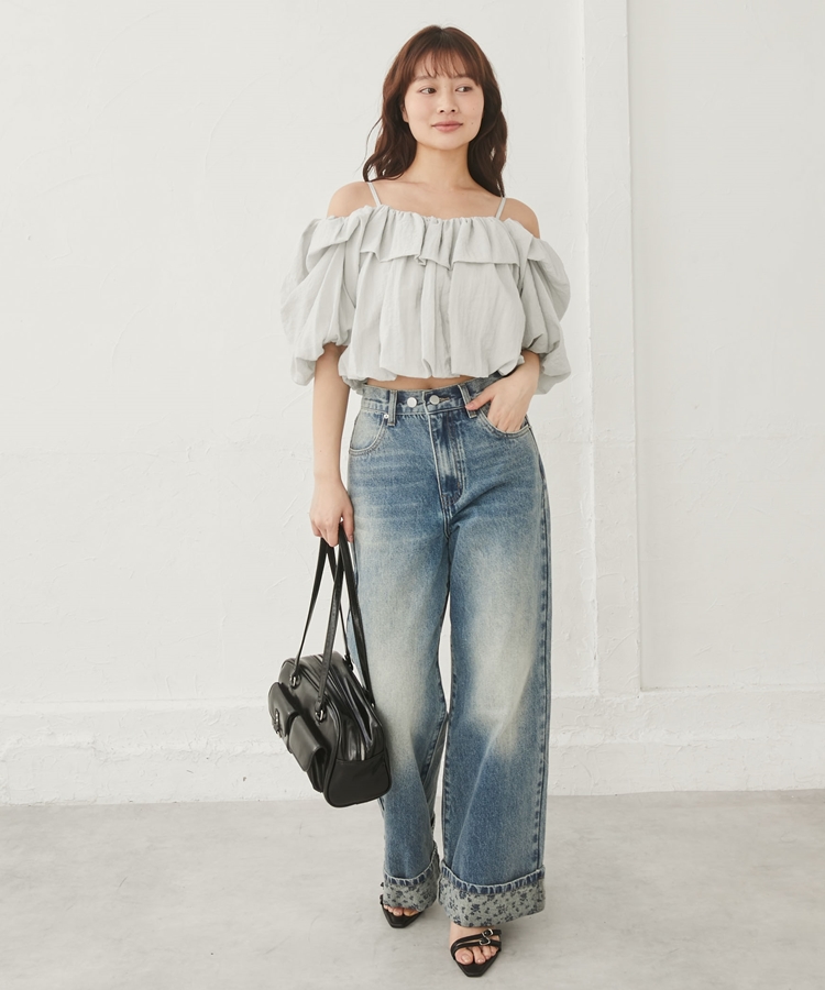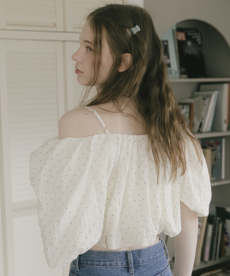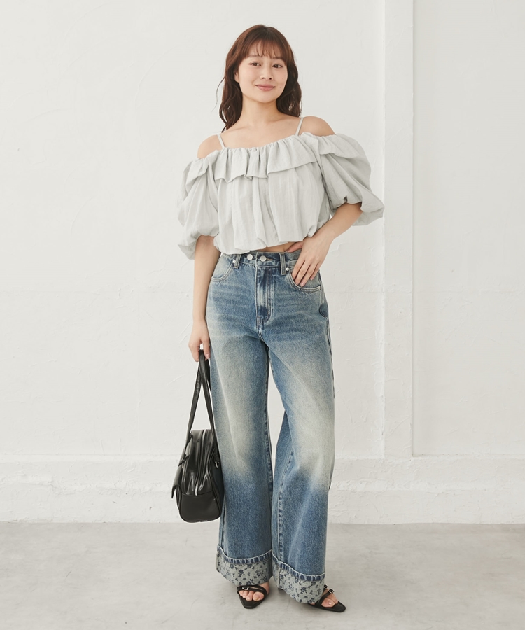 ■ボリューム×フリルで華やぐ、主役級オフショルブラウス■【デザイン】・たっぷりのタックとフリルで立体感のある華やかなデザイン・オフショル仕様でデコルテをきれいに見せ女性らしさを演出・バルーンシルエットがトレンド感と可愛らしさをプラス・肩紐付きで安定感があり、着用しやすい仕様・表面感のあるナチュラルな風合いでこなれた印象に【素材感】・軽やかでふんわりとしたエアリーな素材感・柔らかく肌当たりのいい着心地・程よいハリ感でバルーンシルエットをきれいにキープーーーーーーーーーーーーーーー透け感:なし裏地:あり伸縮性:あり光沢感:なし生地厚さ:普通洗濯方法:洗濯可※詳しいお手入れ方法は商品についているタグをご覧くださいーーーーーーーーーーーーーーー※ご利用のモニター環境により、実際の色味と多少異なる場合がございます。【スタイリング】・デニムと合わせてカジュアルに大人可愛く・スラックスと合わせてきれいめコーデに・ミニボトムと合わせてトレンド感のあるスタイリングも◎▼スタッフ別の詳しい着こなしは下の COORDINATE をチェック