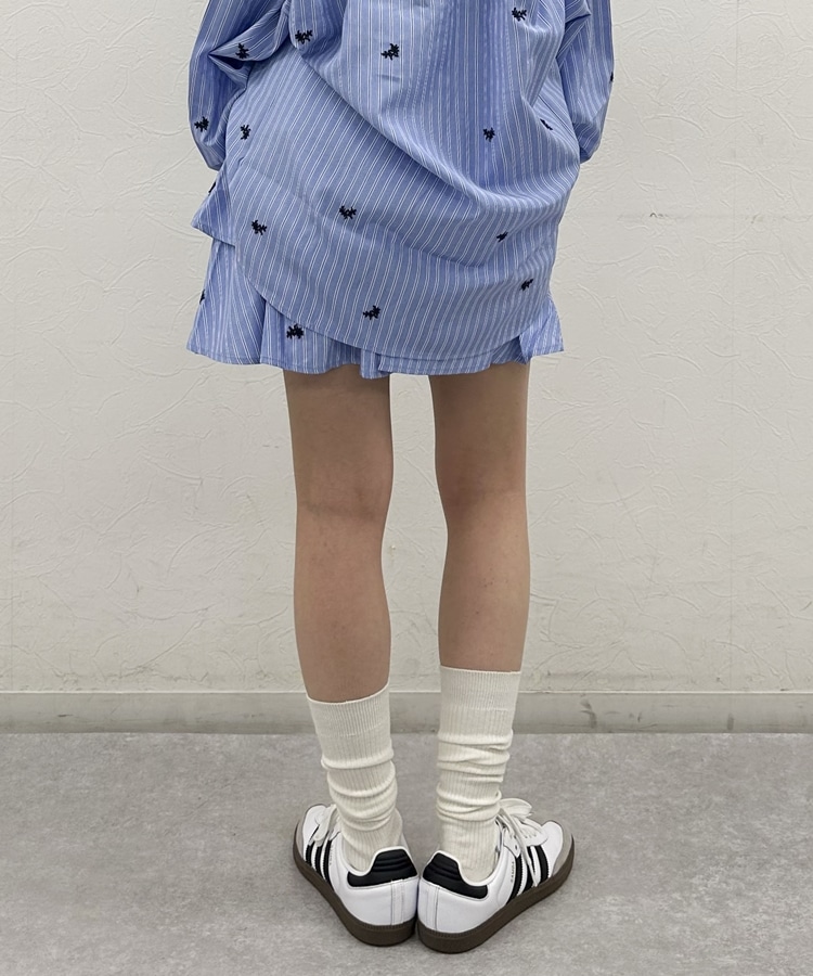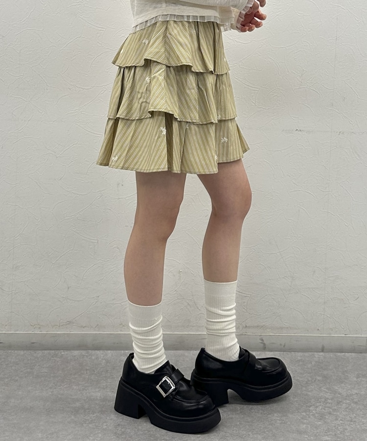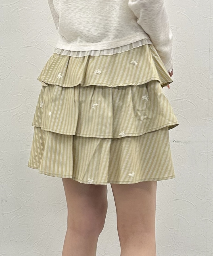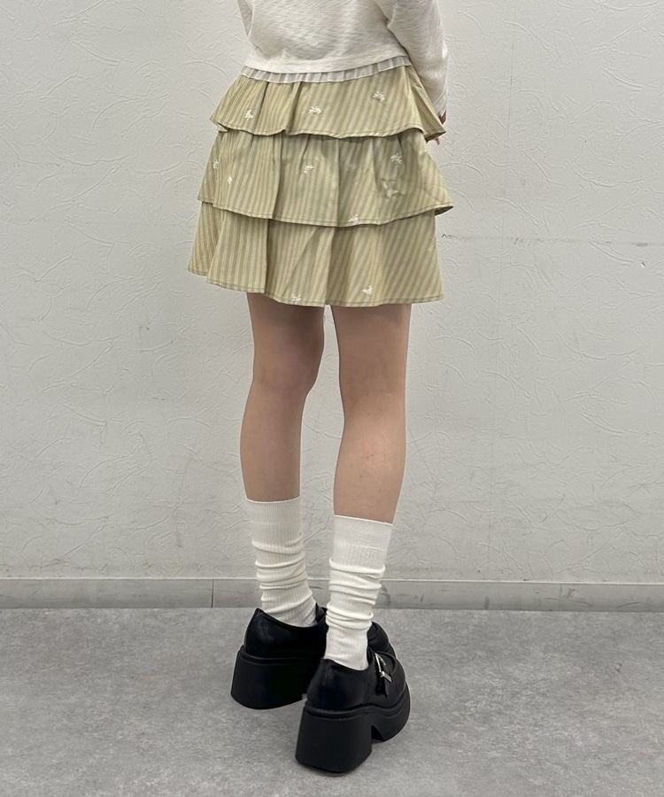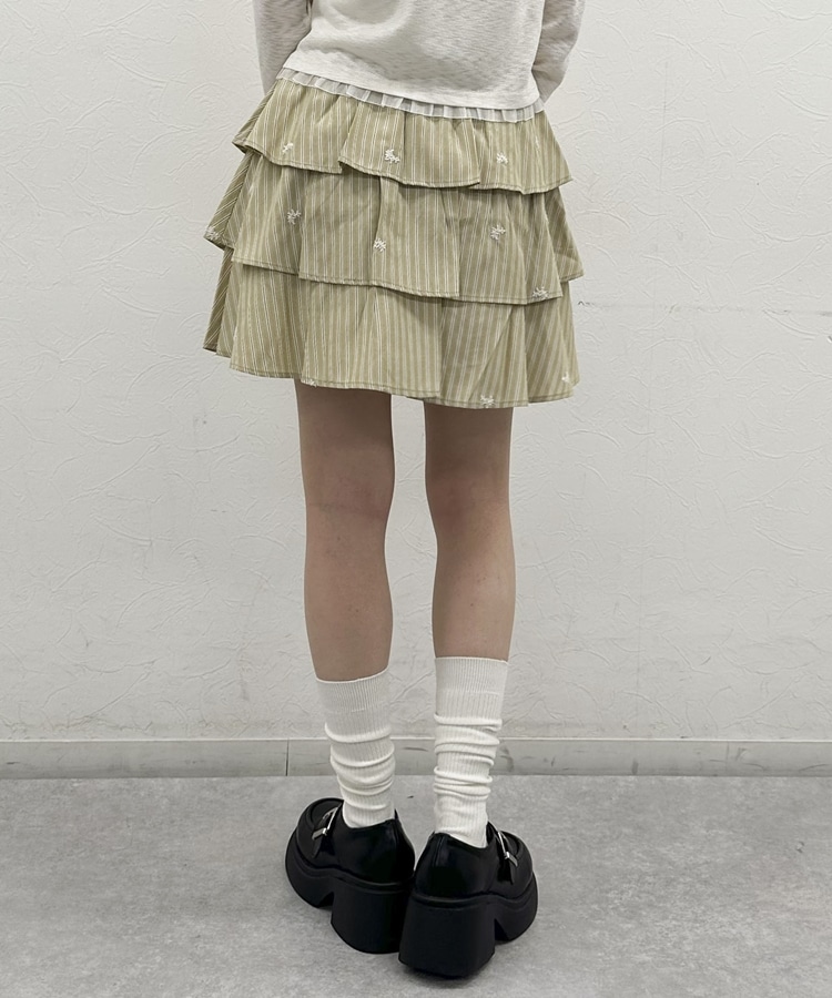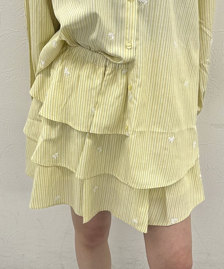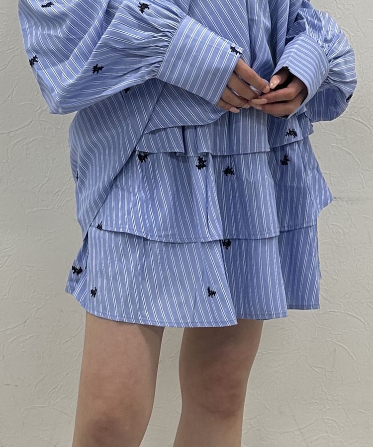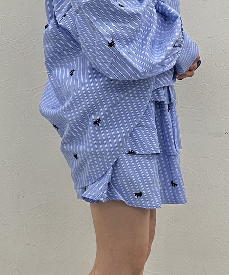 ・花柄刺繍×ストライプ柄を掛け合わせたトレンド感のあるミニスカート