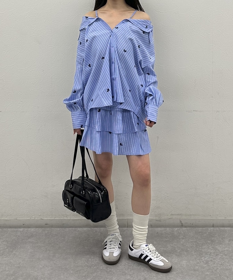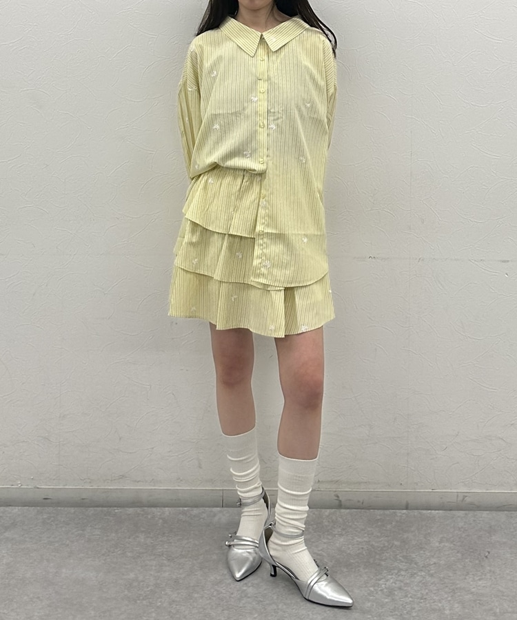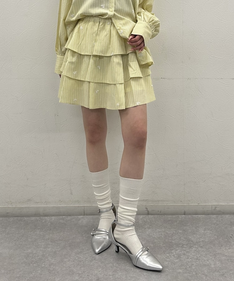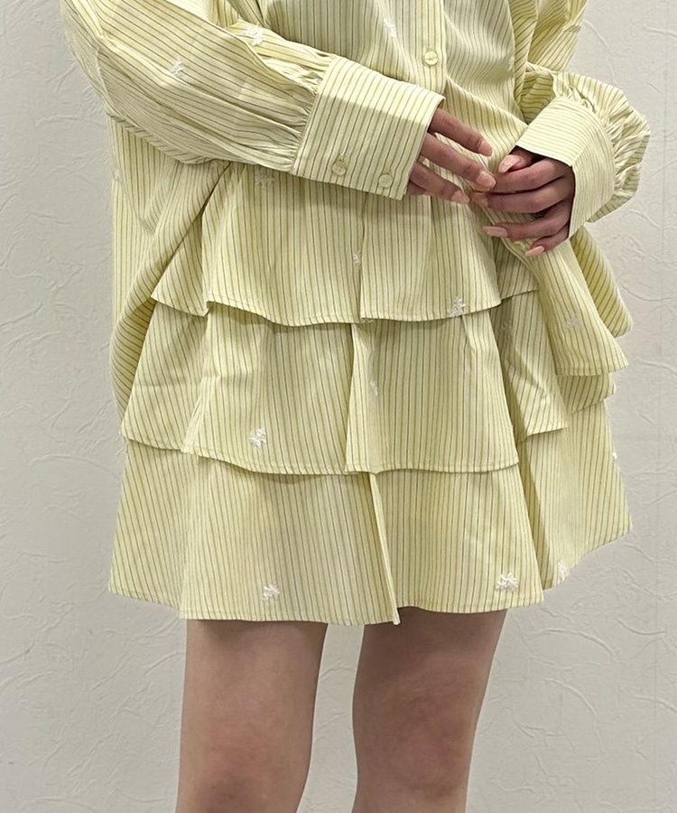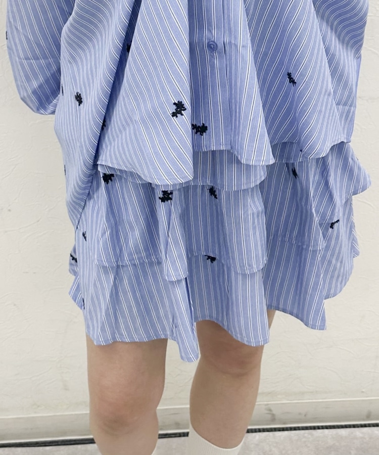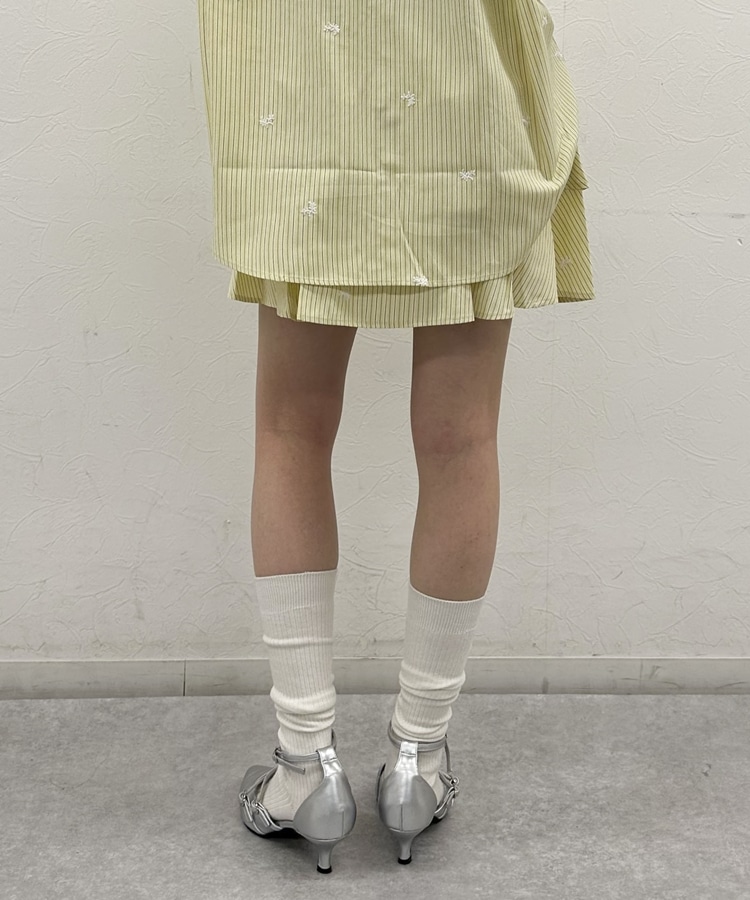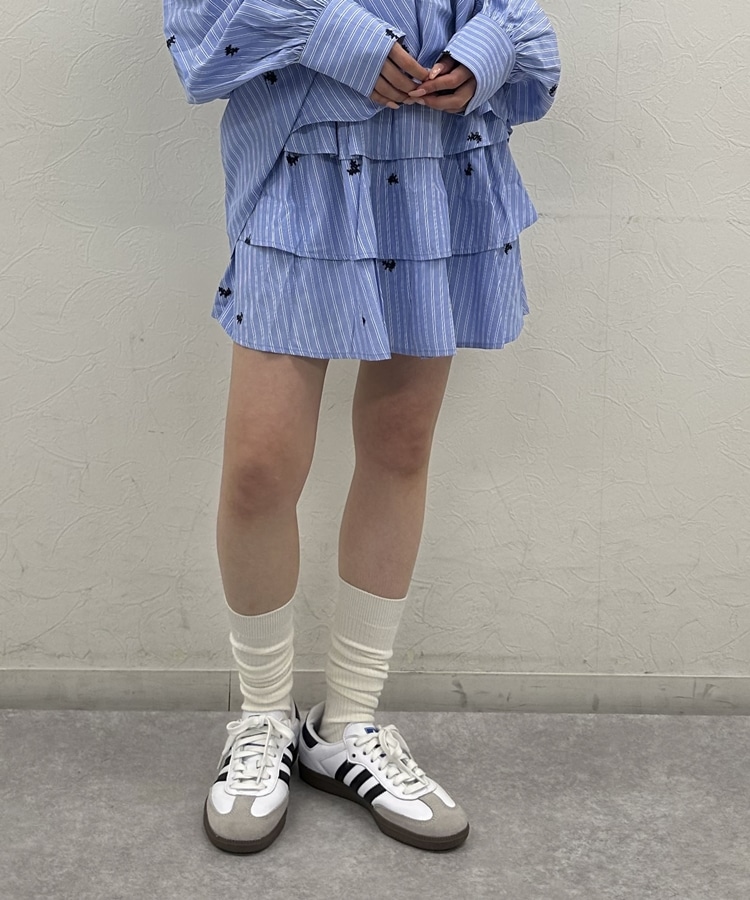 ・花柄刺繍×ストライプ柄を掛け合わせたトレンド感のあるミニスカート