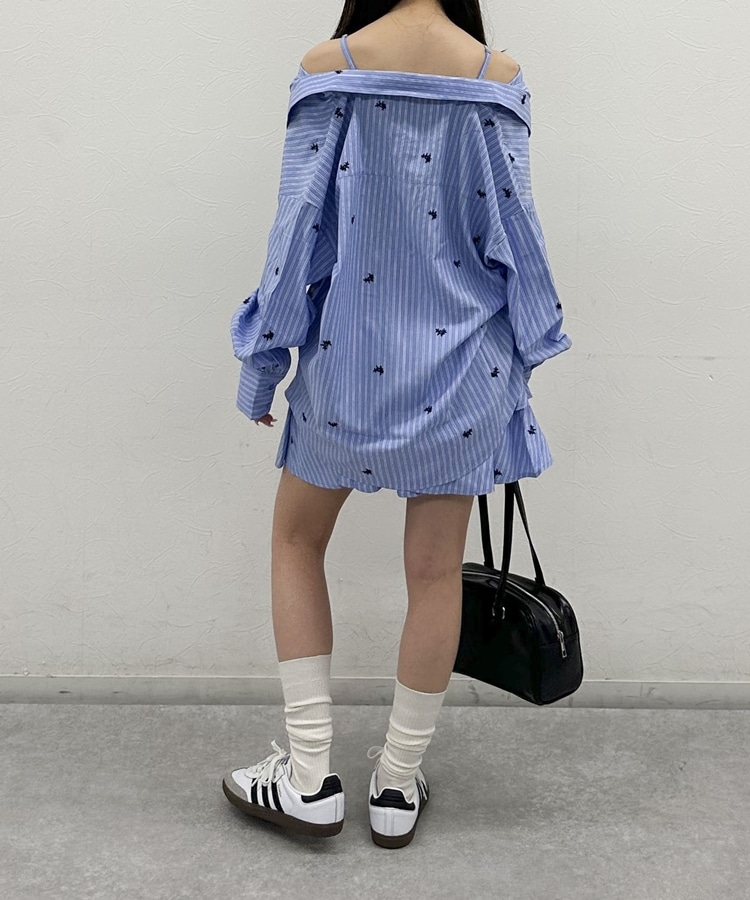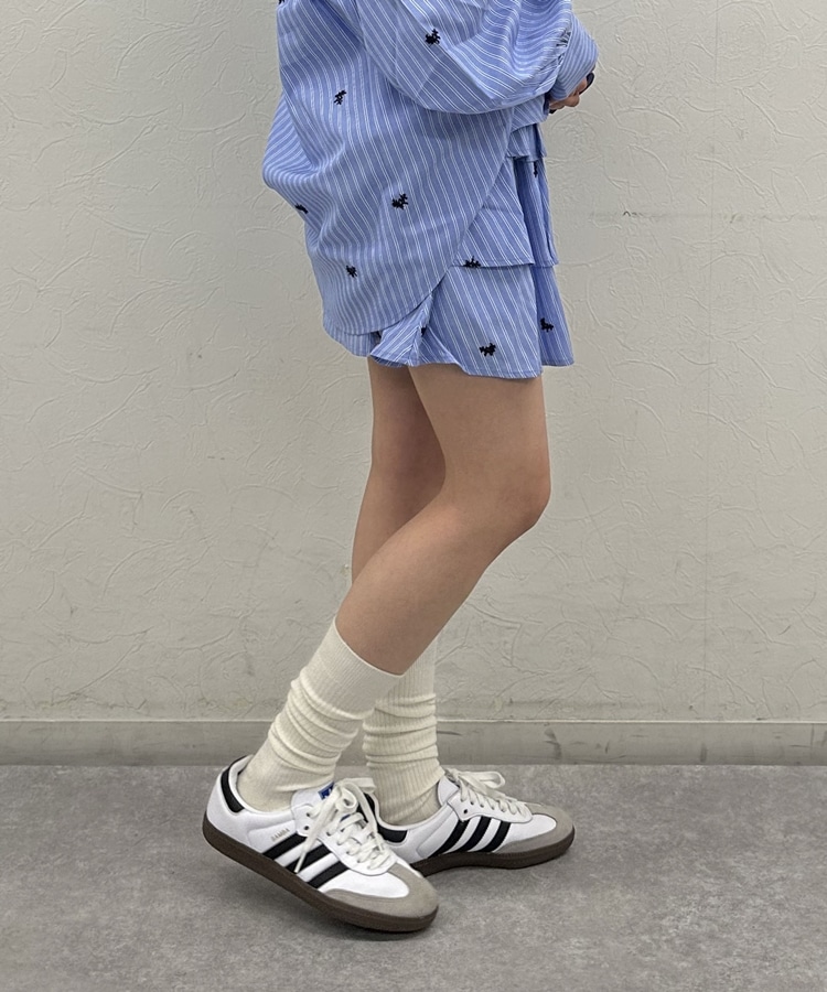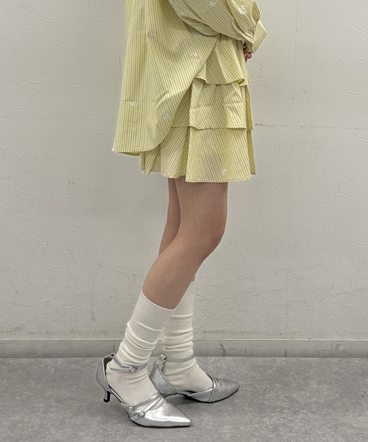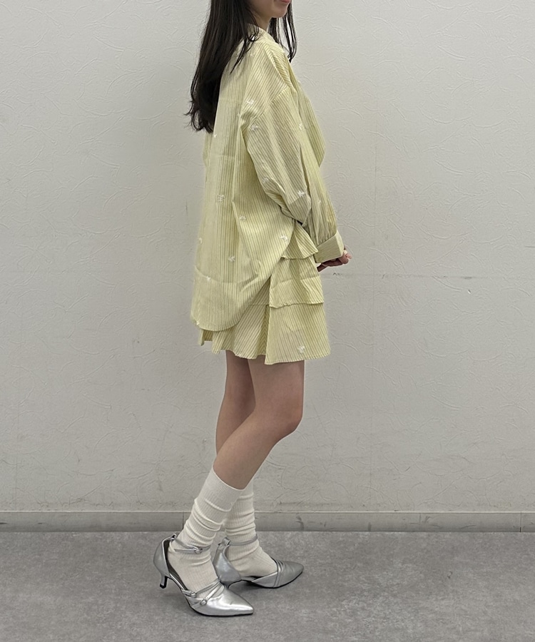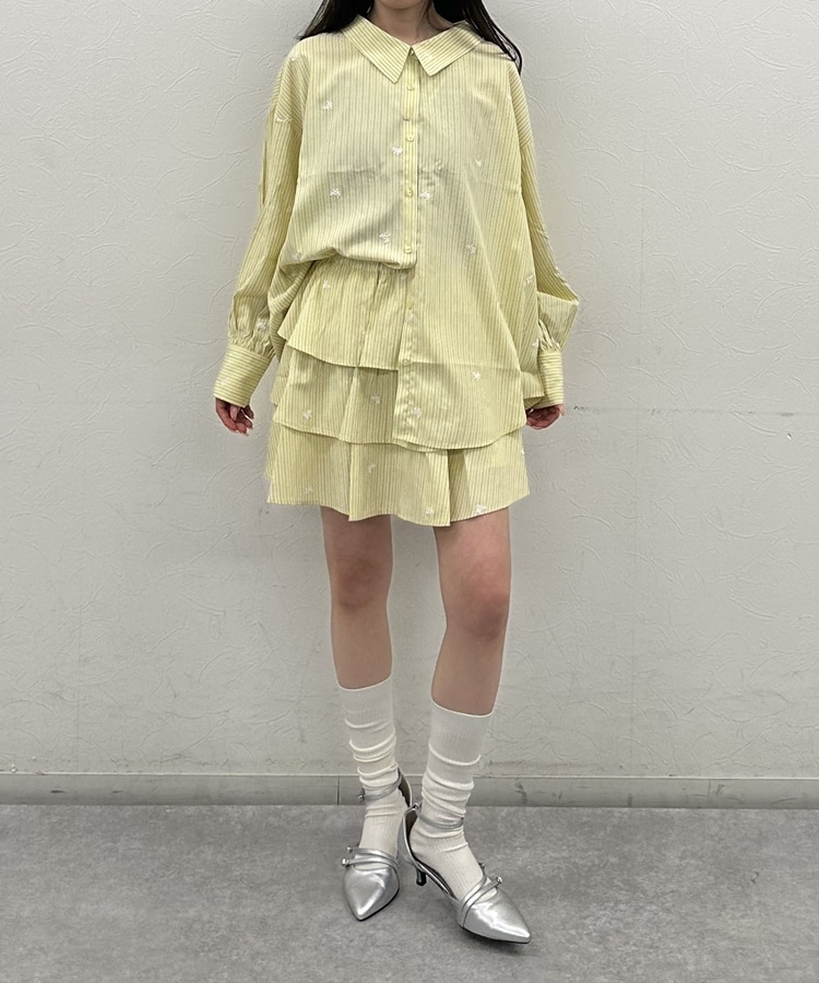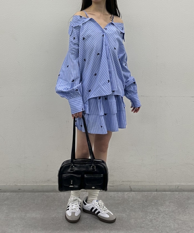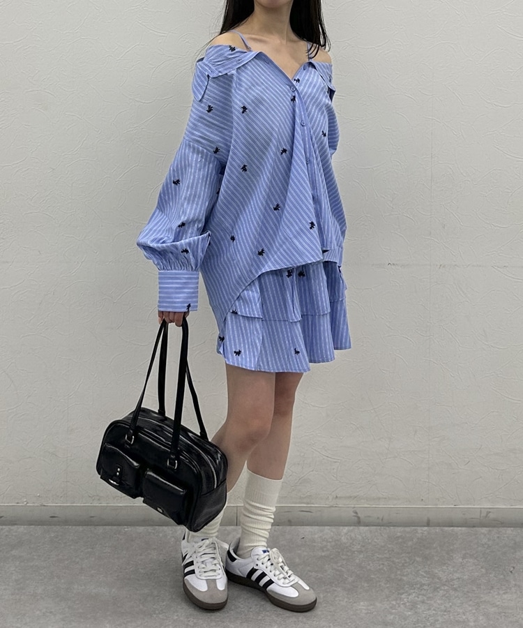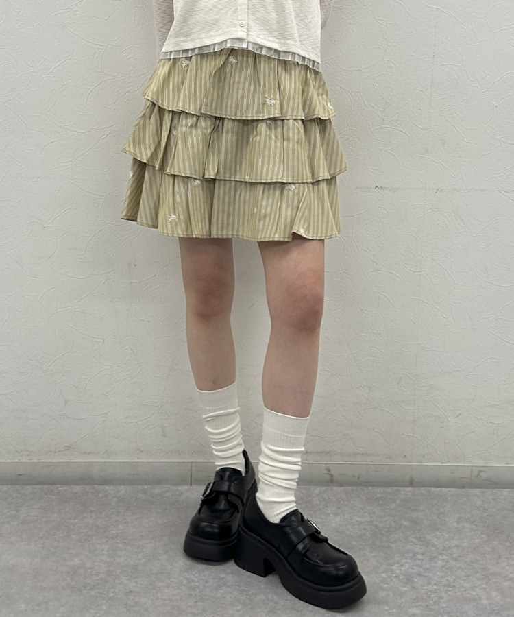 ・花柄刺繍×ストライプ柄を掛け合わせたトレンド感のあるミニスカート