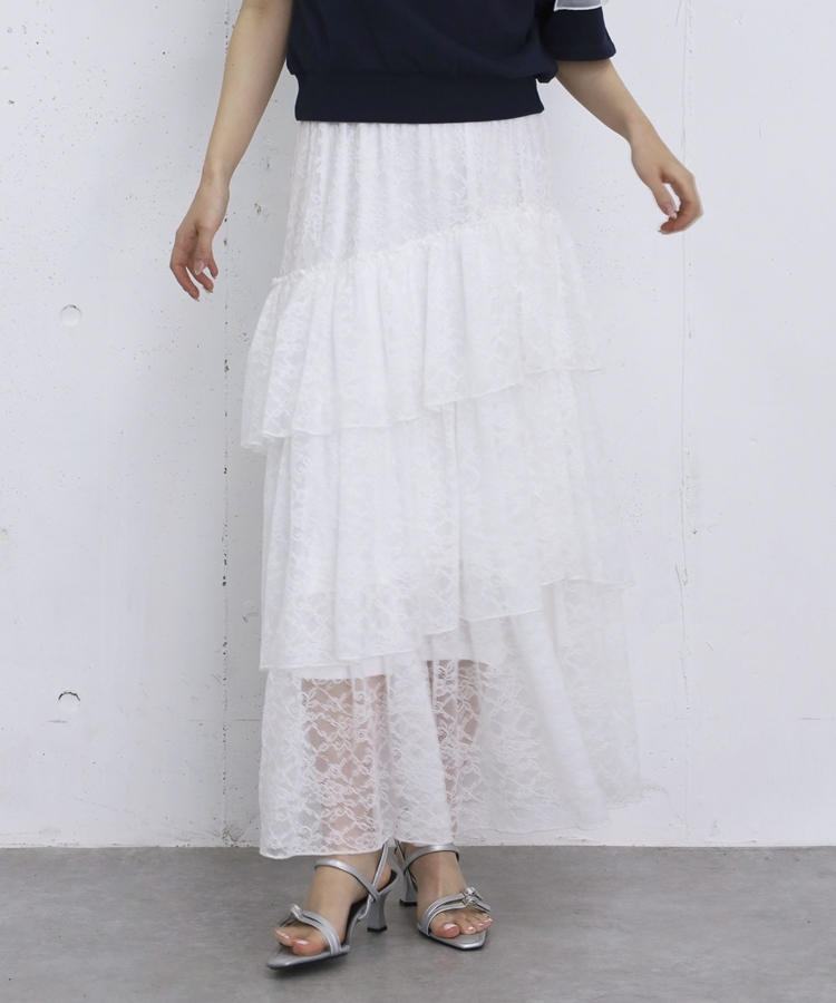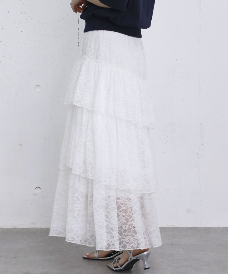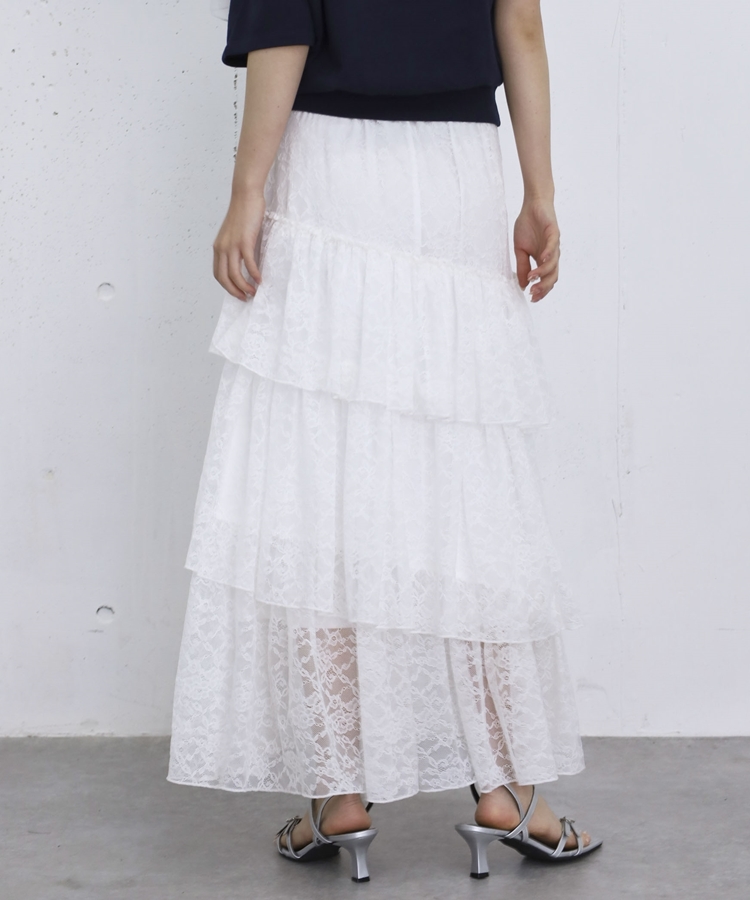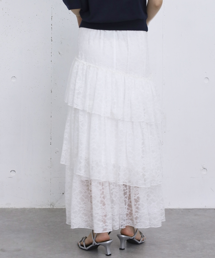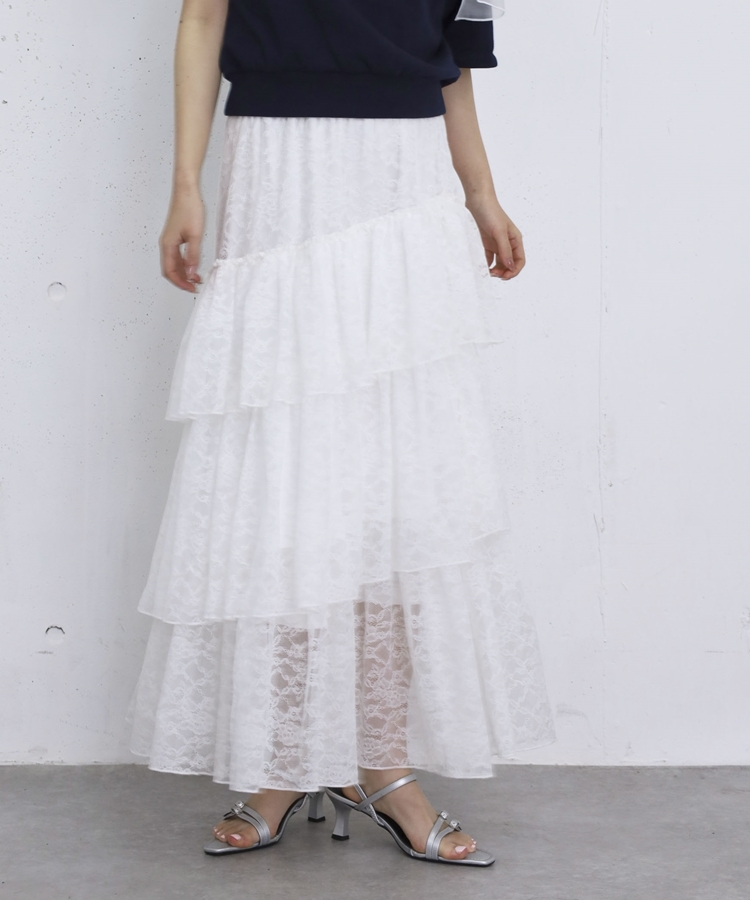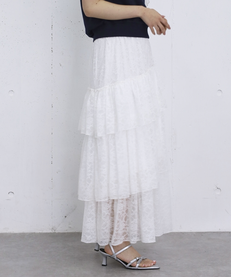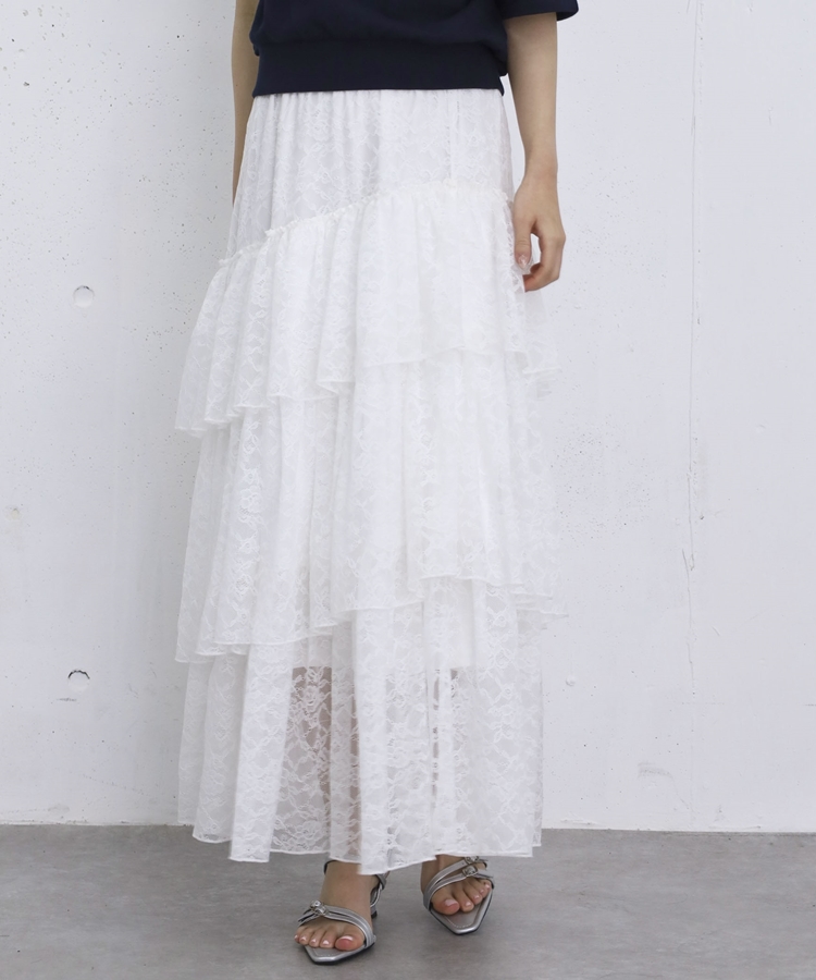アシンメトリーレースフリルティアードスカート OFF WHITE
