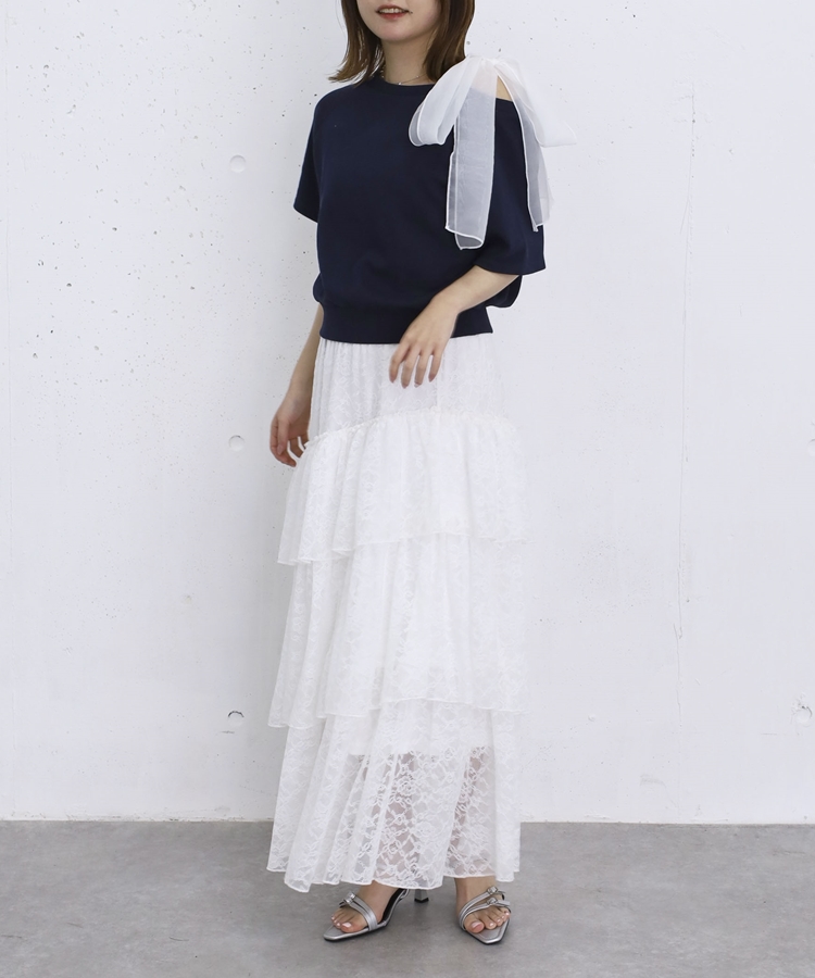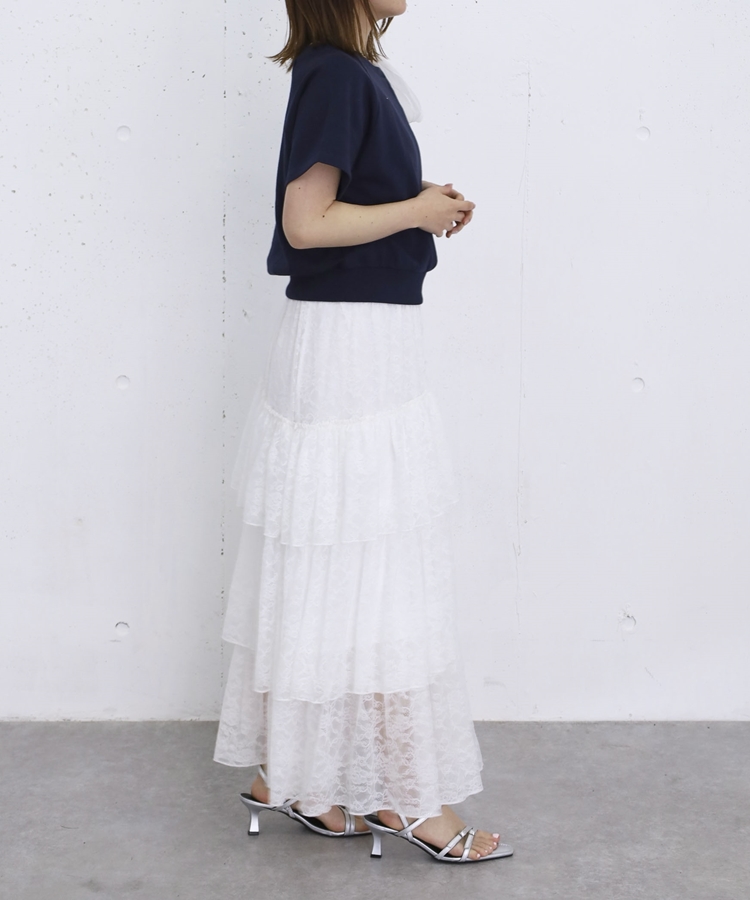 ・繊細なレースを贅沢に使用したティアードスカート