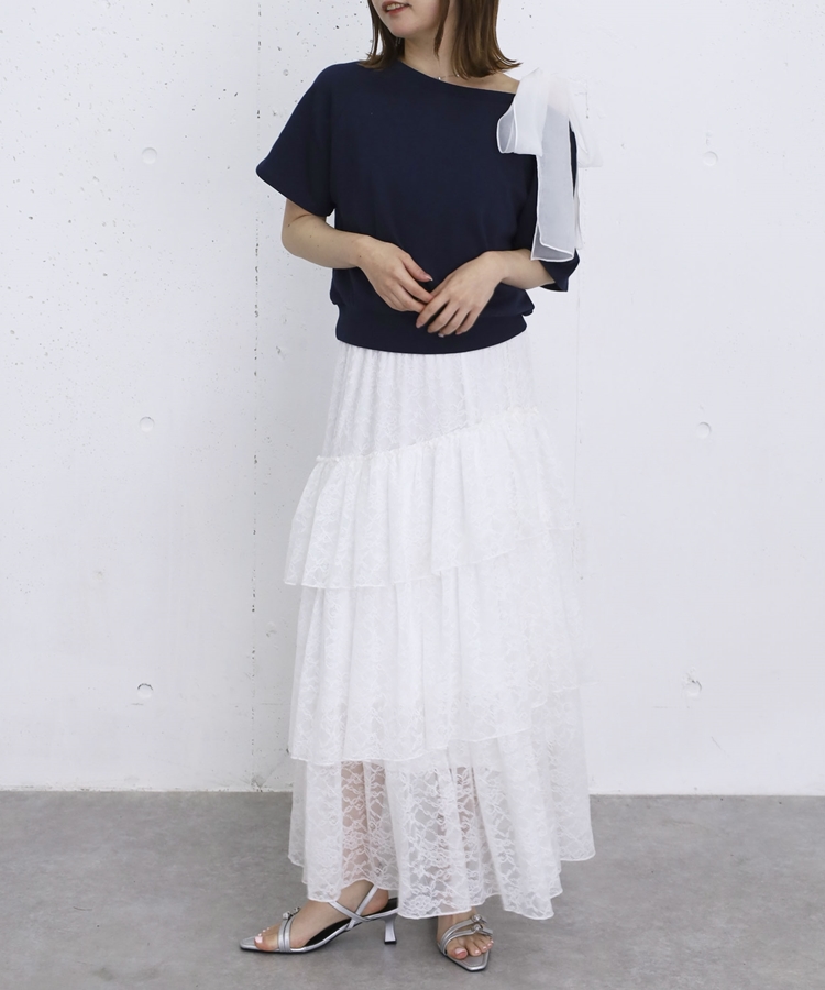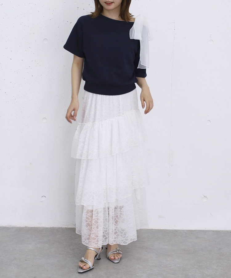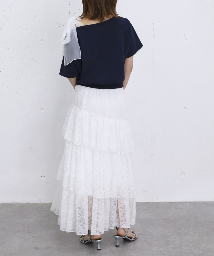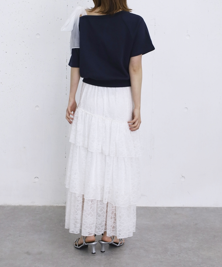 アシンメトリーレースフリルティアードスカート