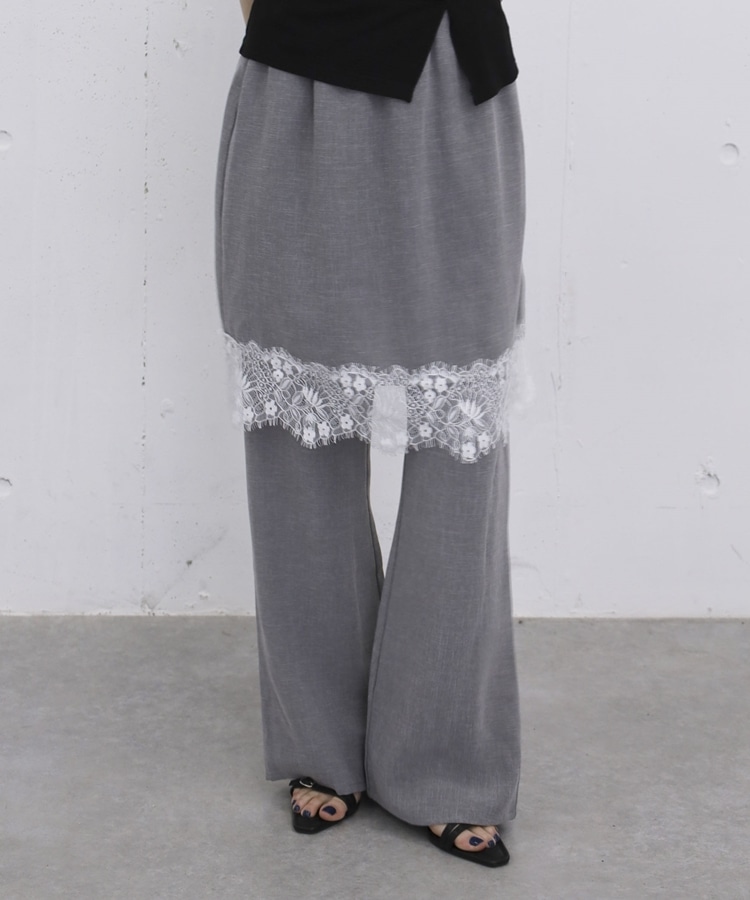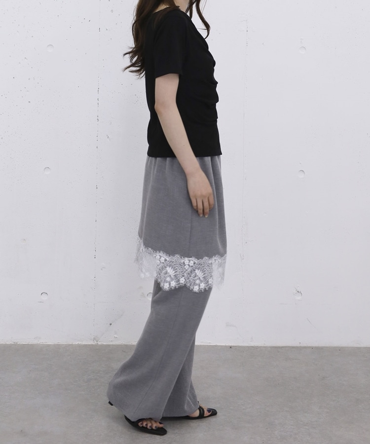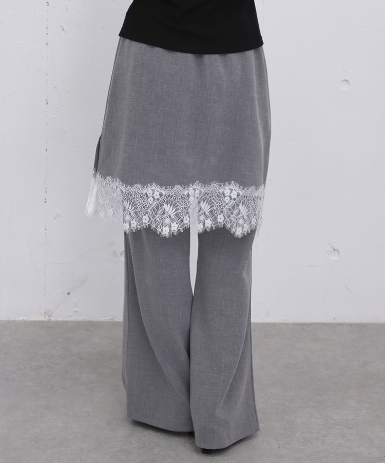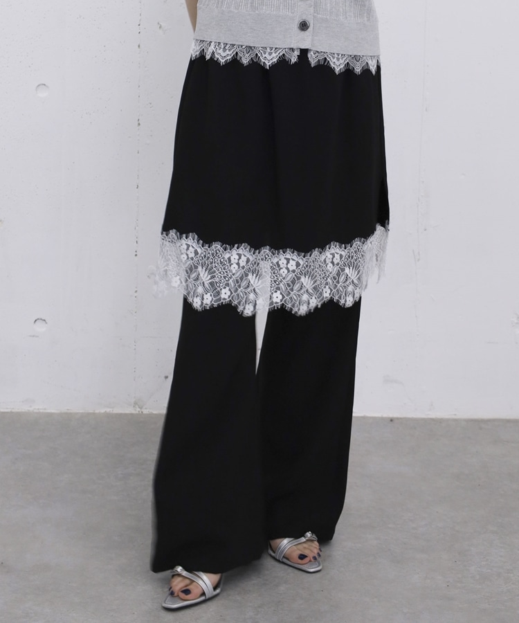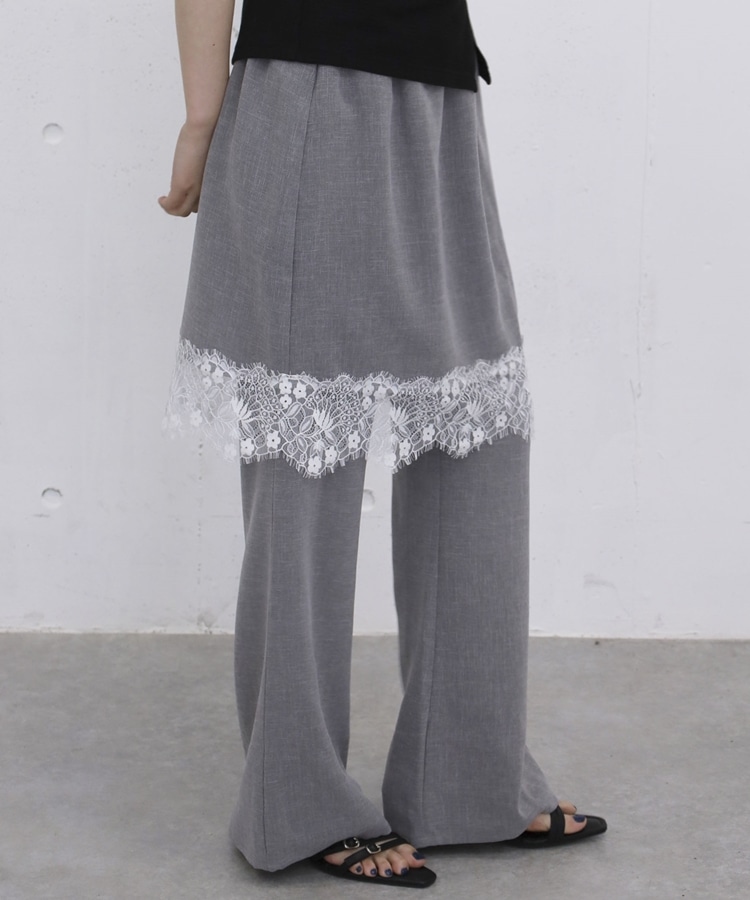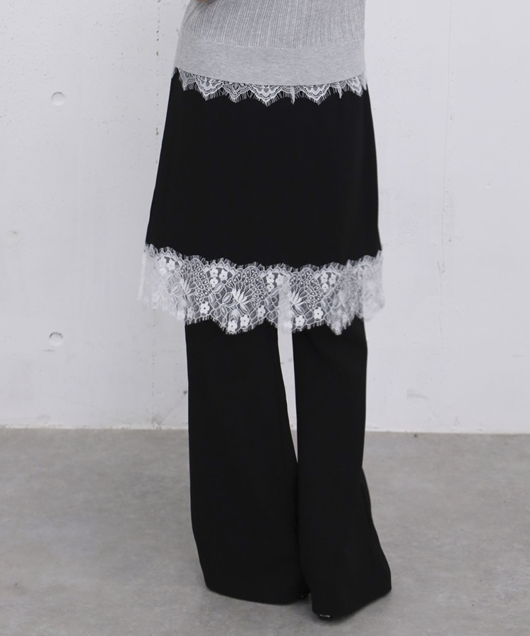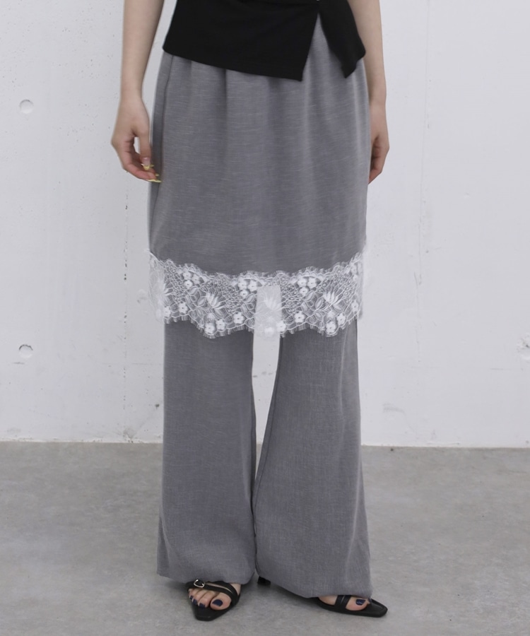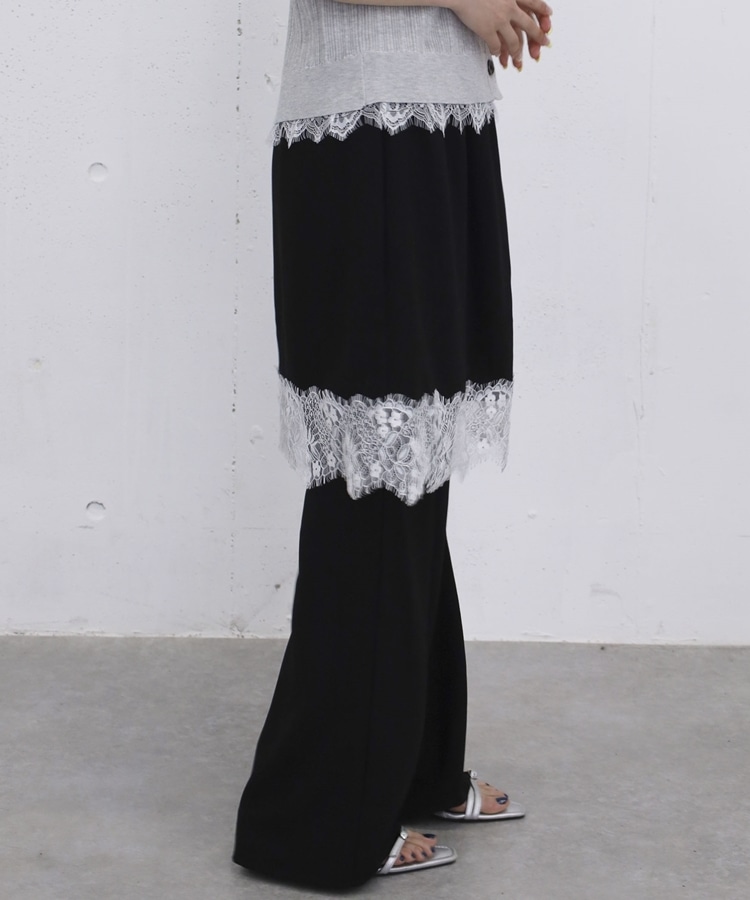 ■レースの抜け感で魅せる、レイヤードスタイルが完成するミディスカート×イージーパンツセット■