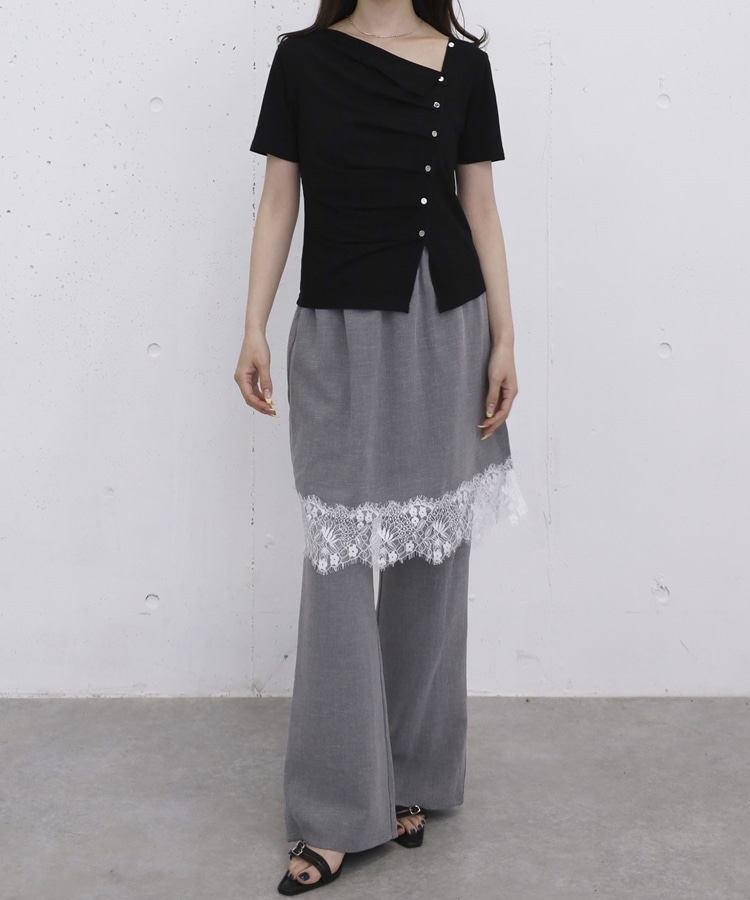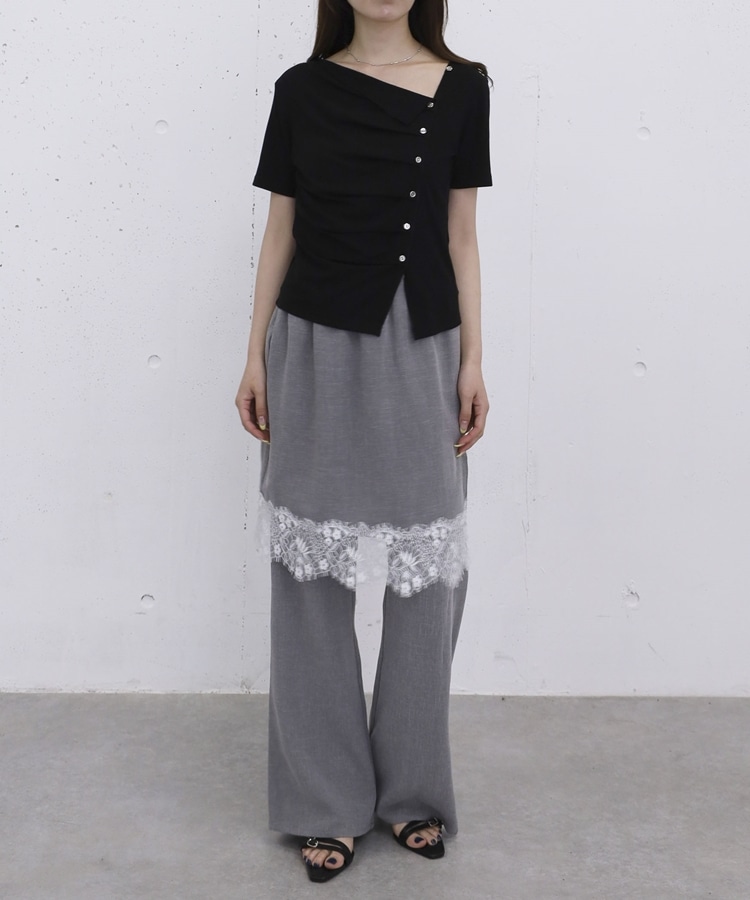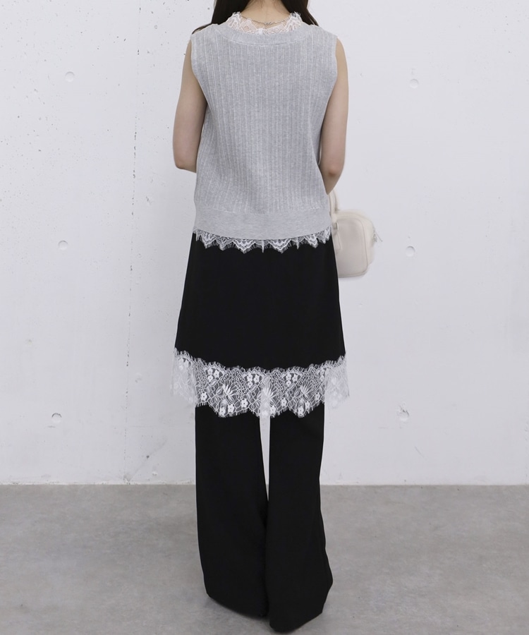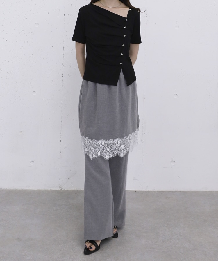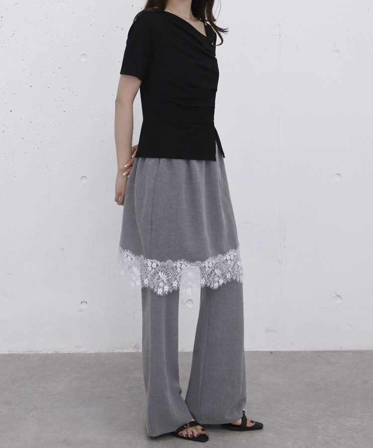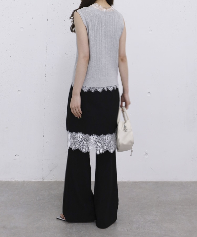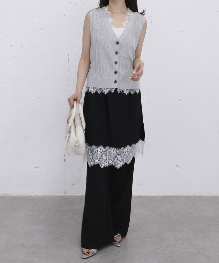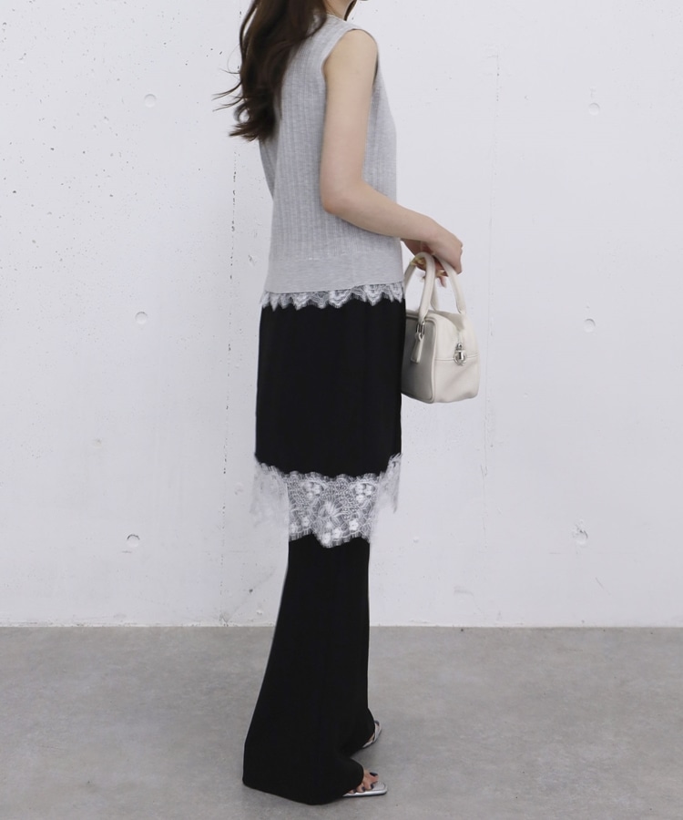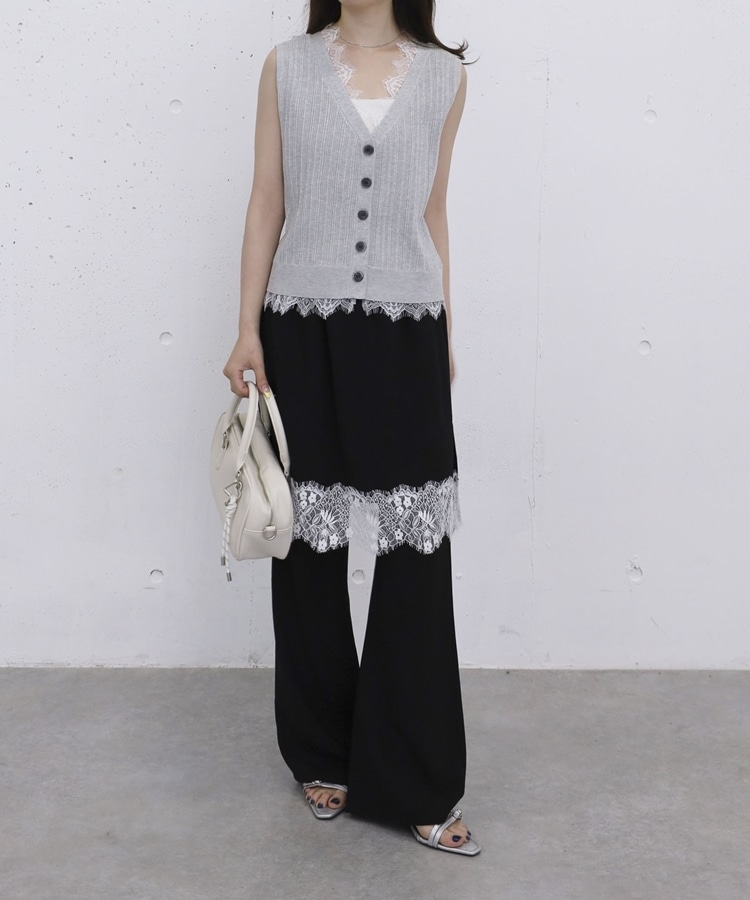 ■レースの抜け感で魅せる、レイヤードスタイルが完成するミディスカート×イージーパンツセット■