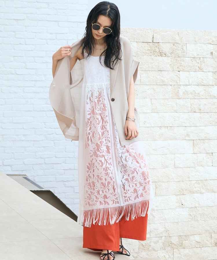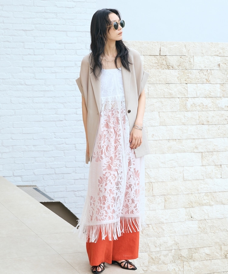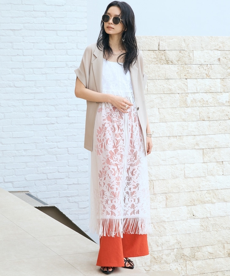 ・レース×フリンジで甘くなりすぎず、カジュアルなスタイリングにもマッチ