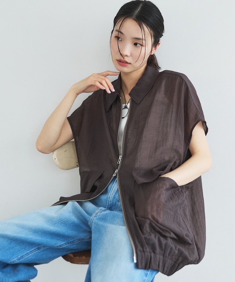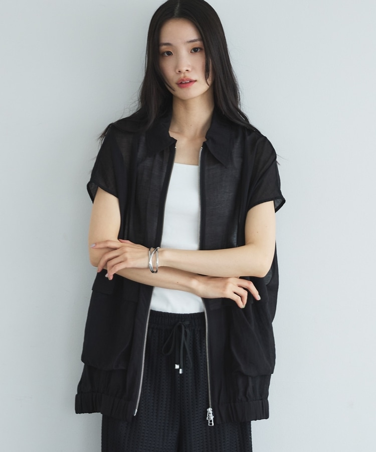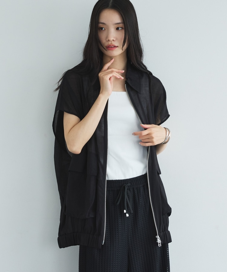 軽やかなシアー素材が魅力のフレンチスリーブジャケット