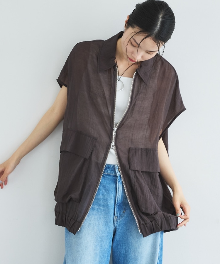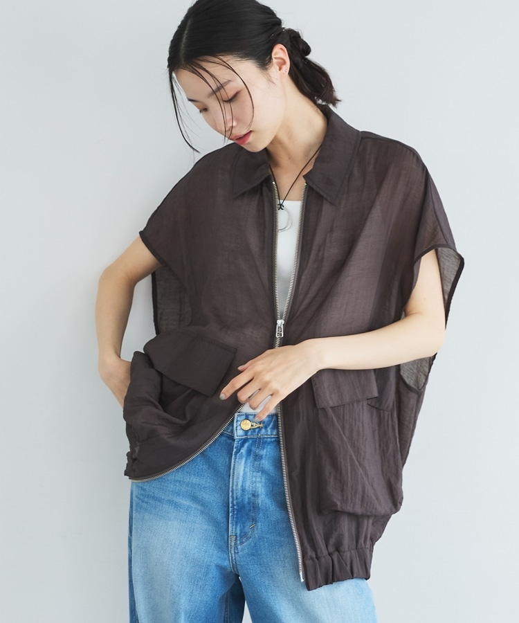 フレンチスリーブジップシアージャケット CHARCOAL GRAY