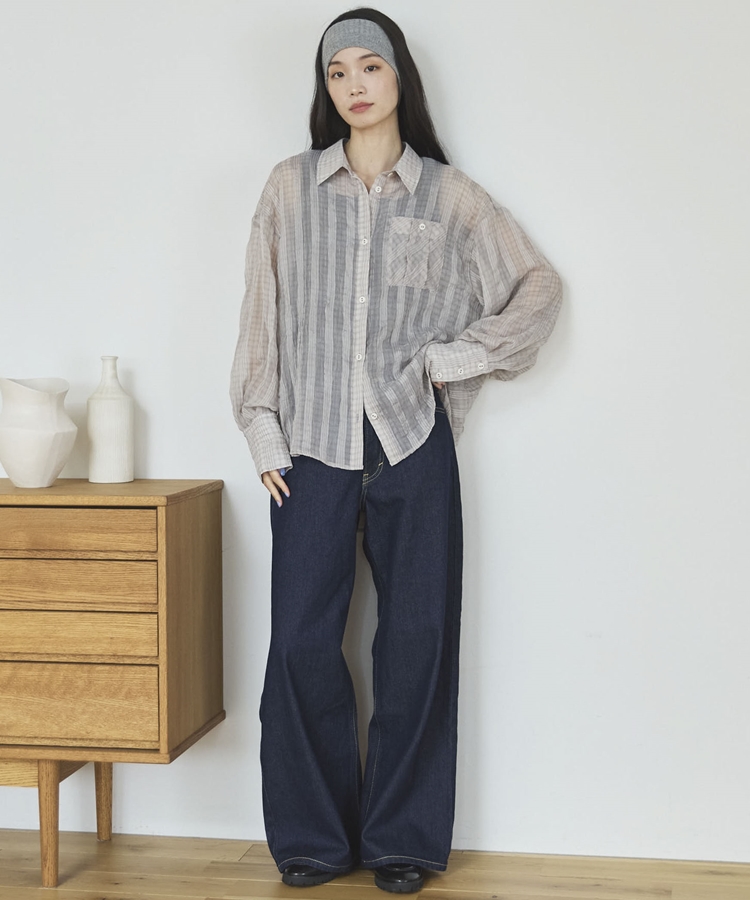 【EC限定】チェックシアーボリュームスリーブシャツ