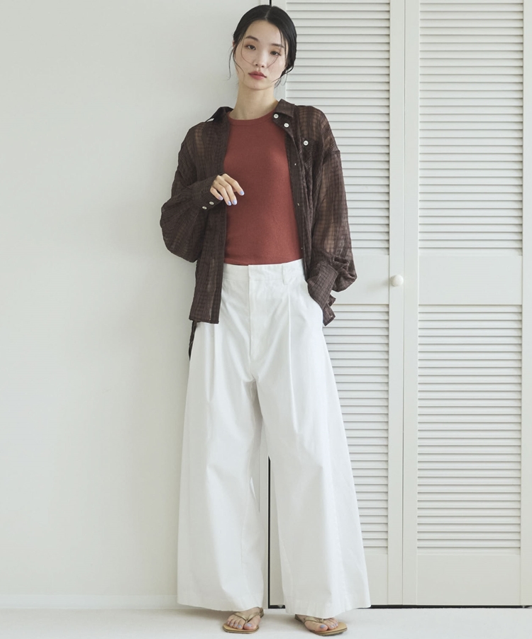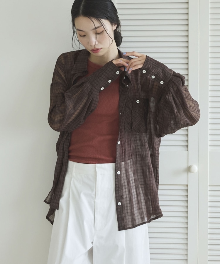 【EC限定】チェックシアーボリュームスリーブシャツ BROWN