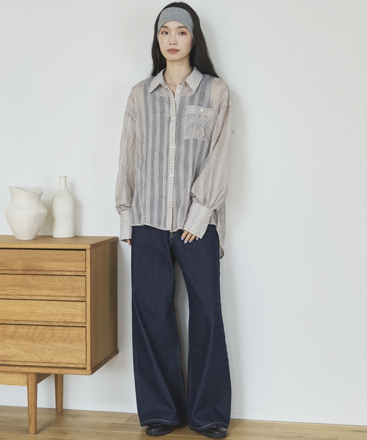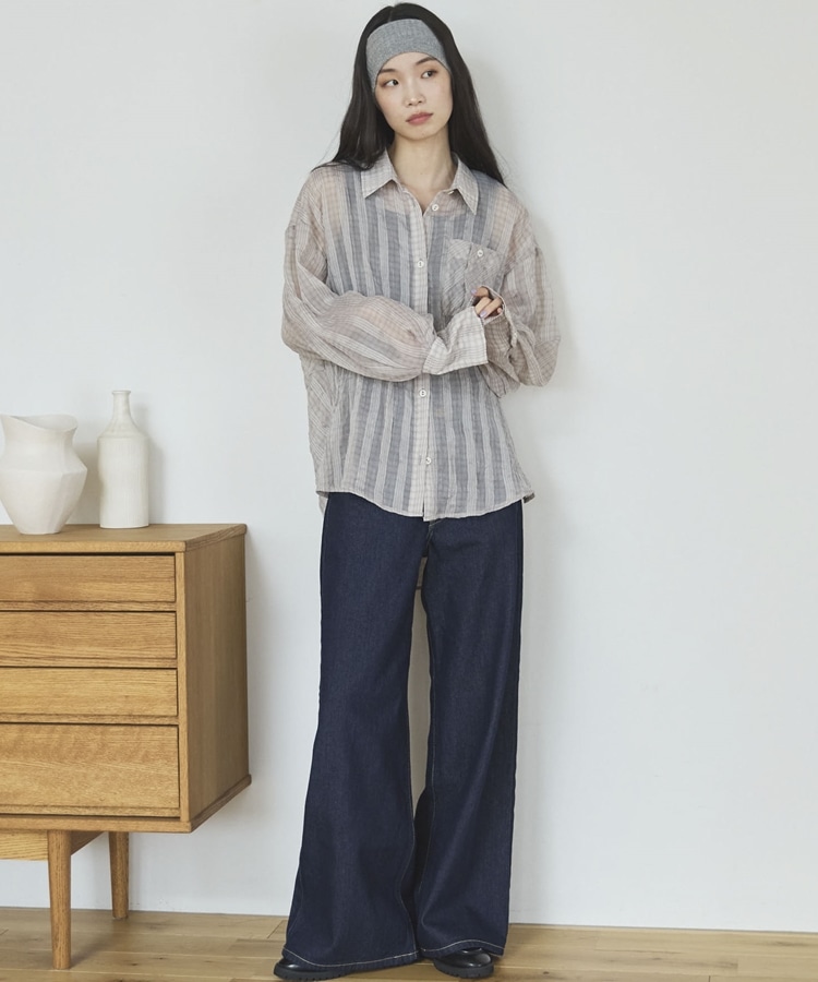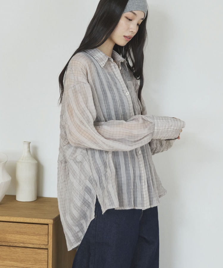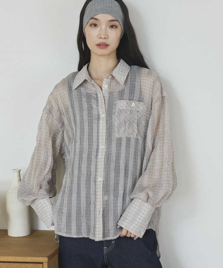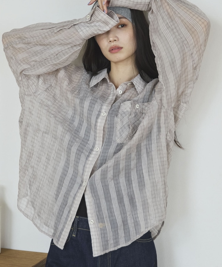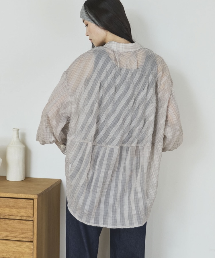 【EC限定】チェックシアーボリュームスリーブシャツ BEIGE