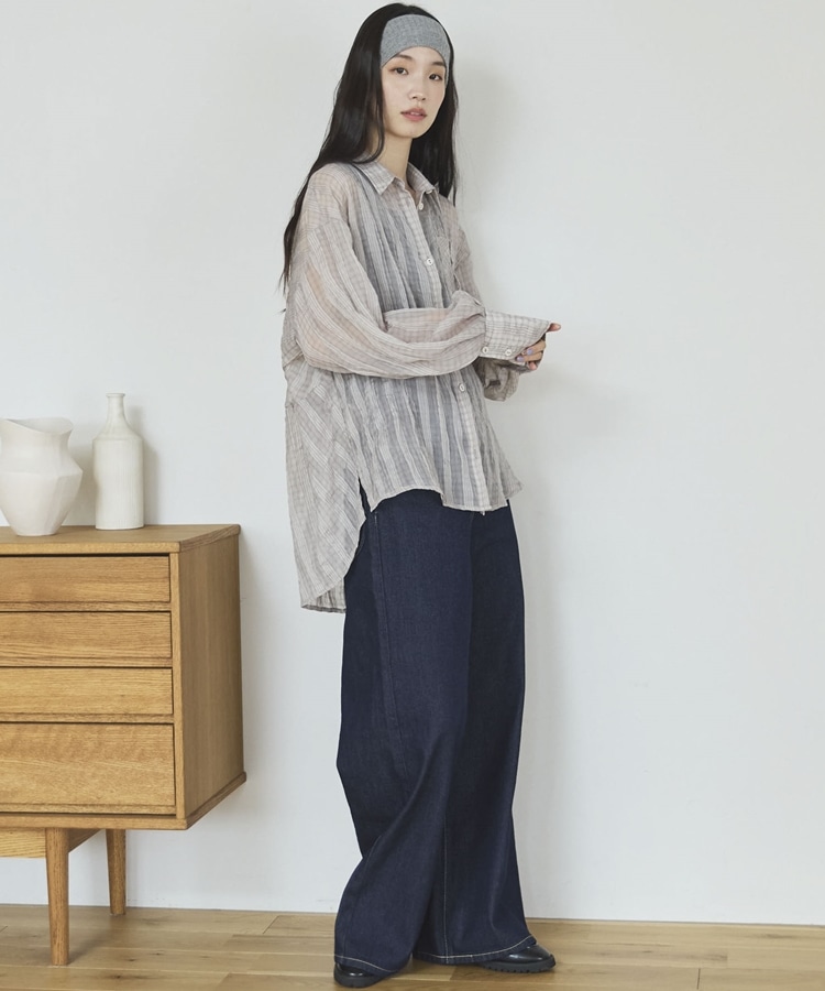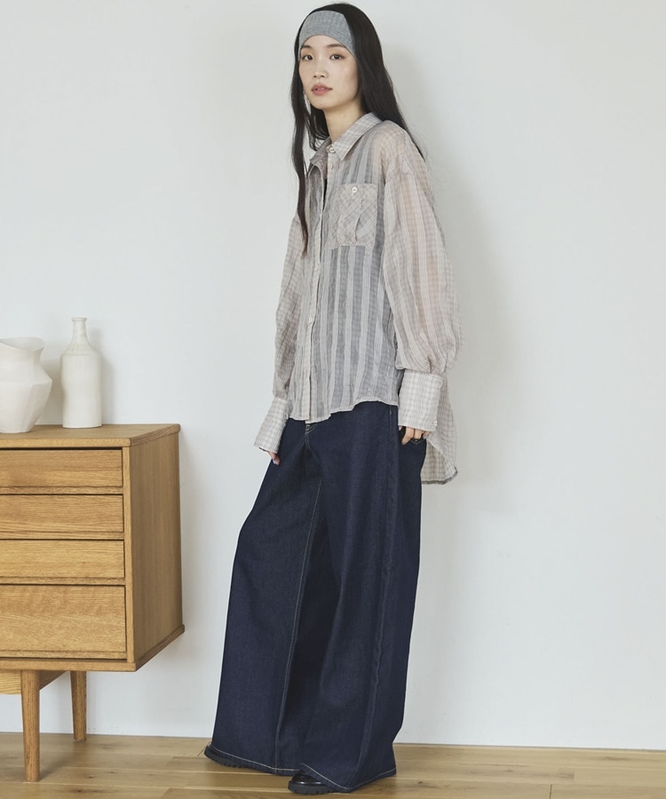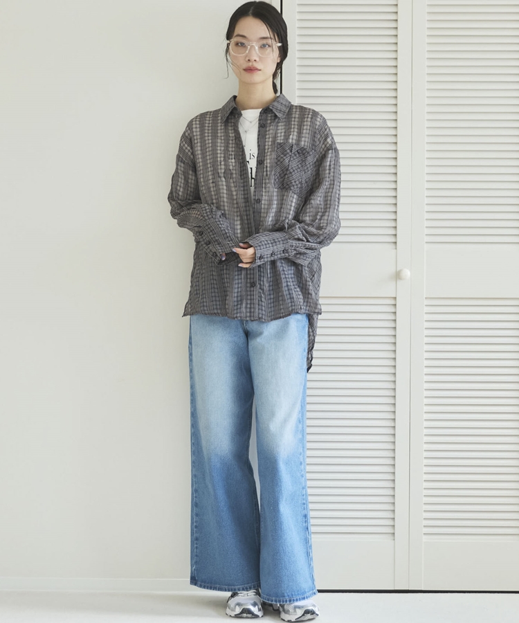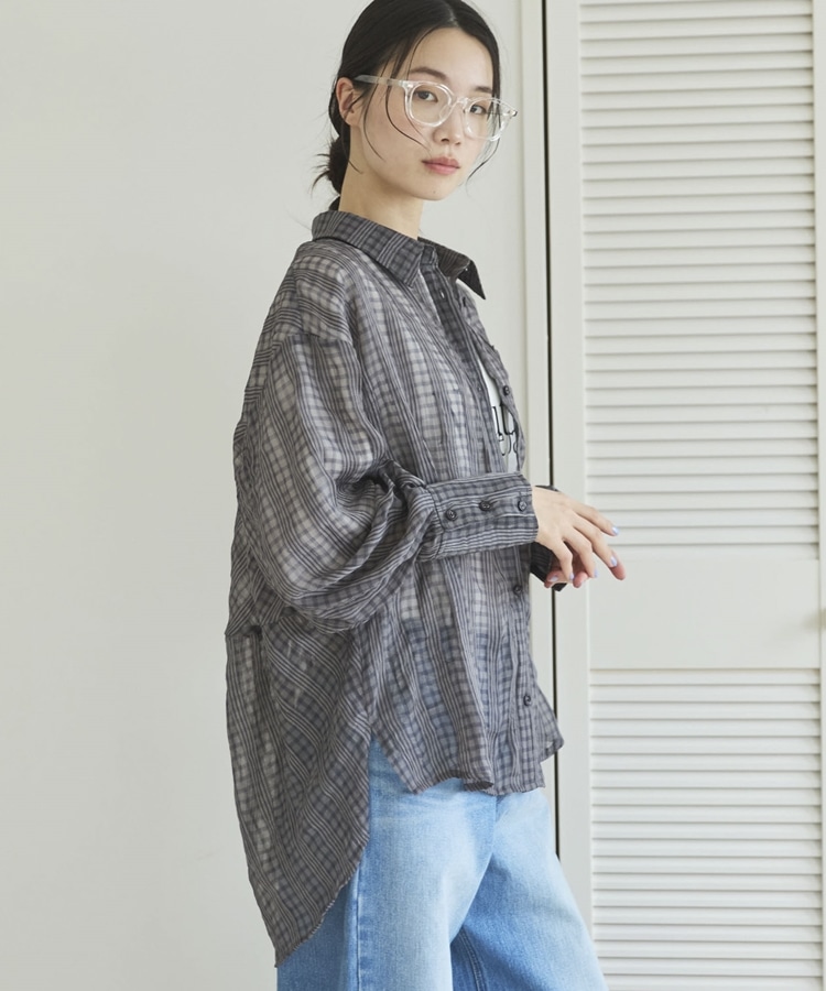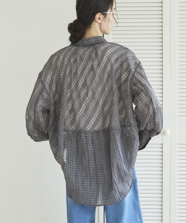 【EC限定】チェックシアーボリュームスリーブシャツ CHARCOAL GRAY