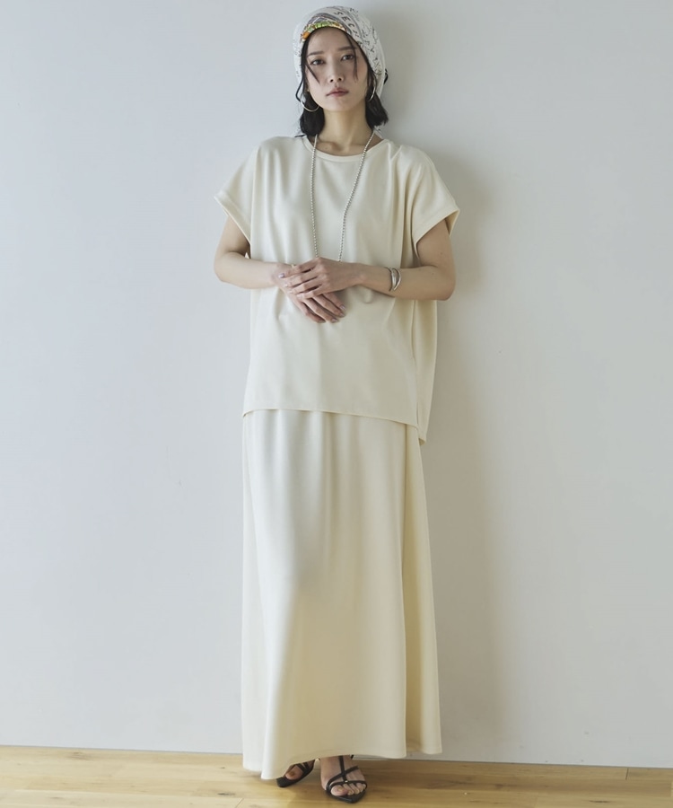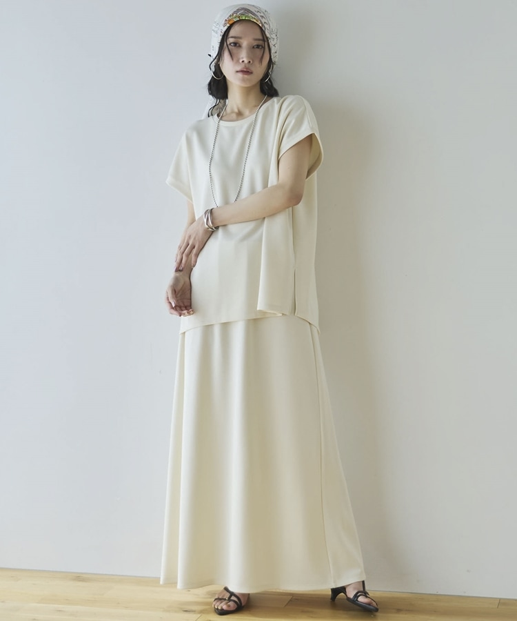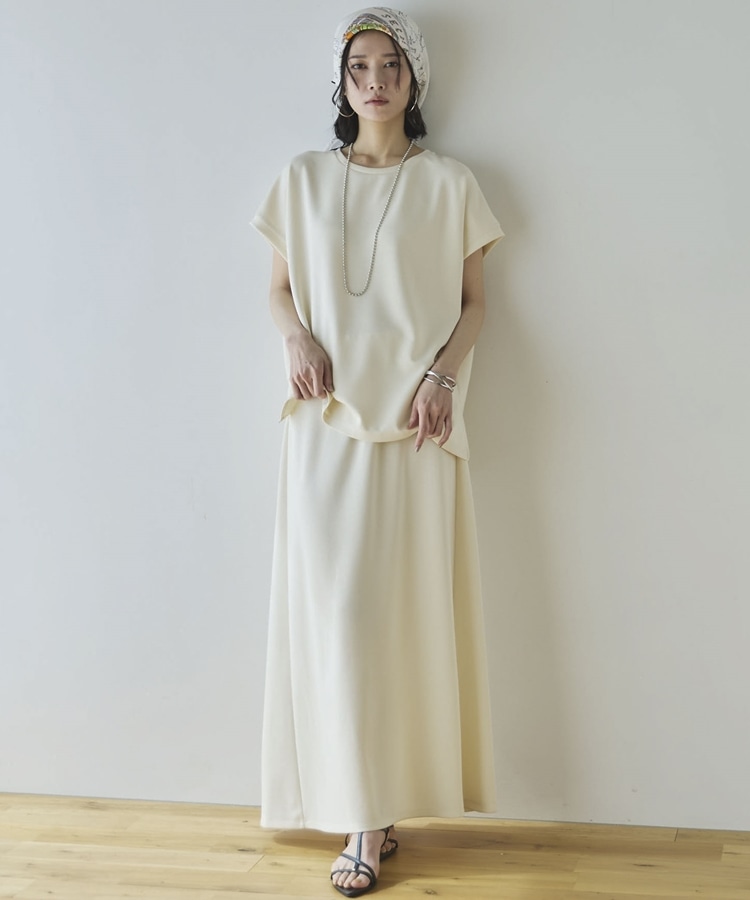 【セットアップ対応】【1秒コーデ】多機能ソフトリブセミフレアスカート IVORY