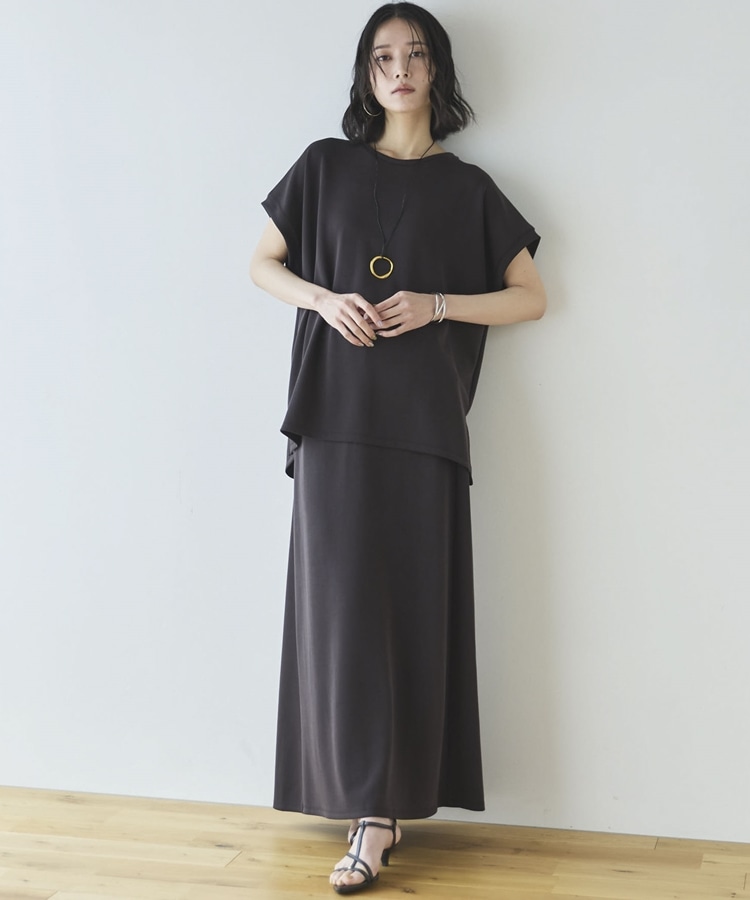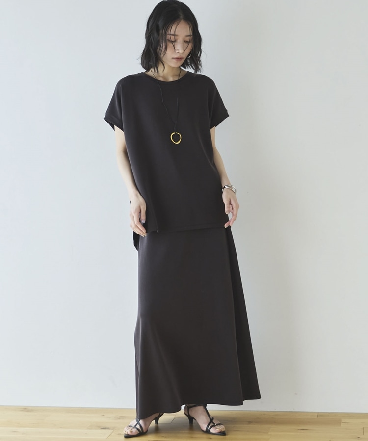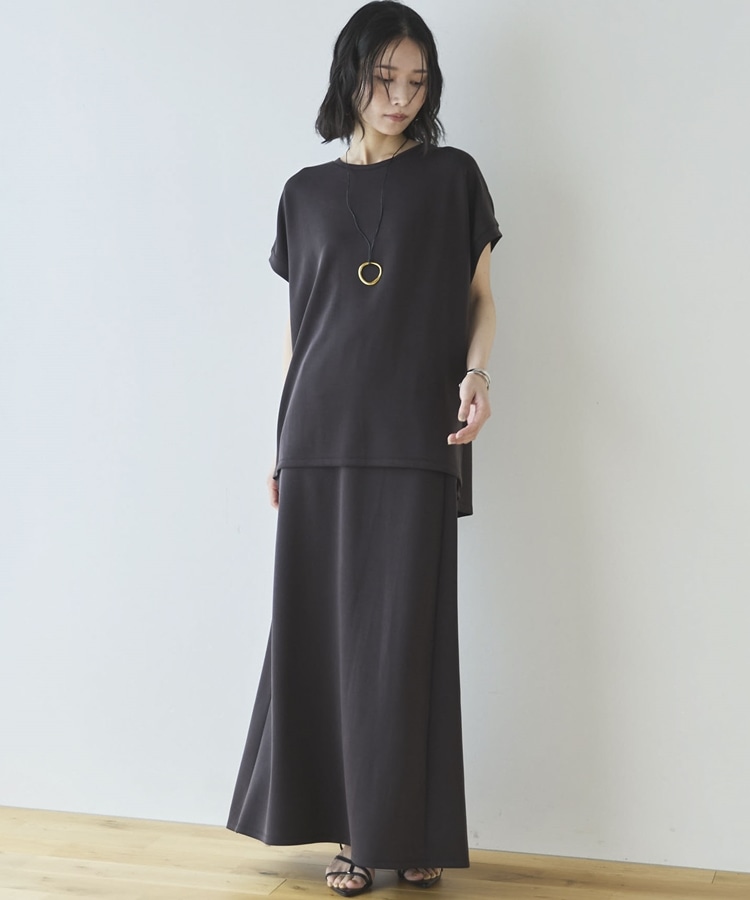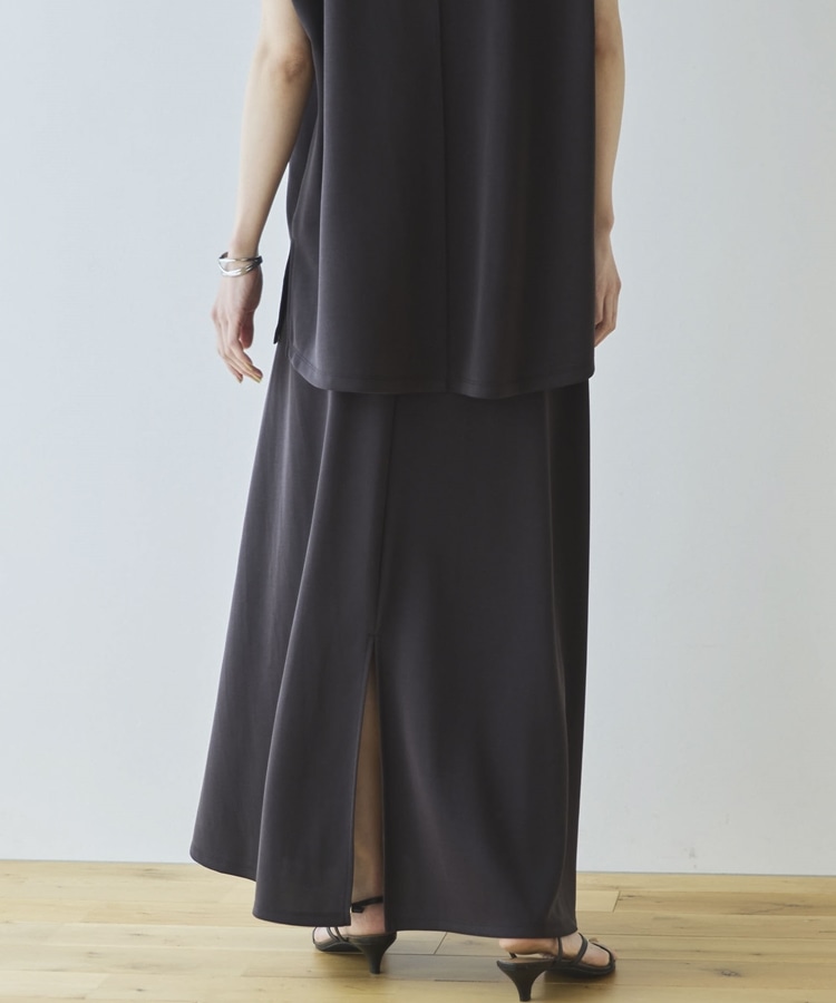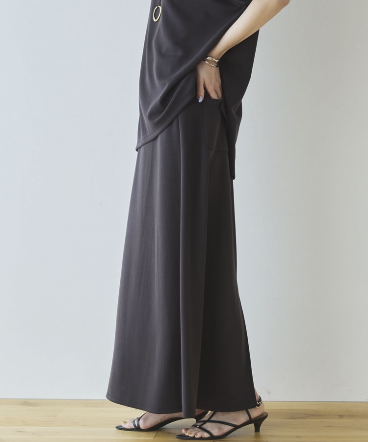 【セットアップ対応】【1秒コーデ】多機能ソフトリブセミフレアスカート CHARCOAL GRAY