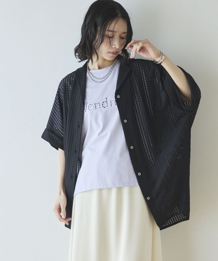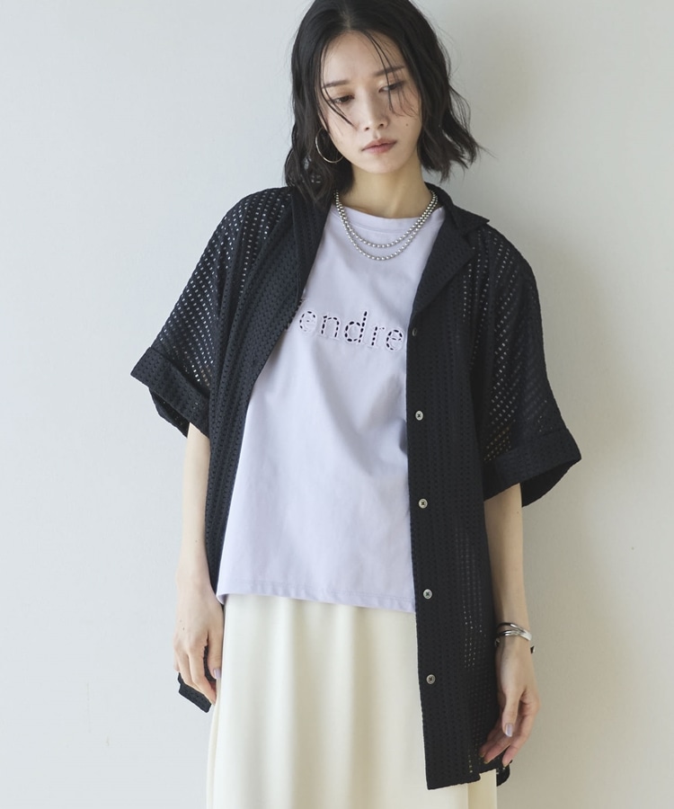 カットワーク刺繍Tee BLACK