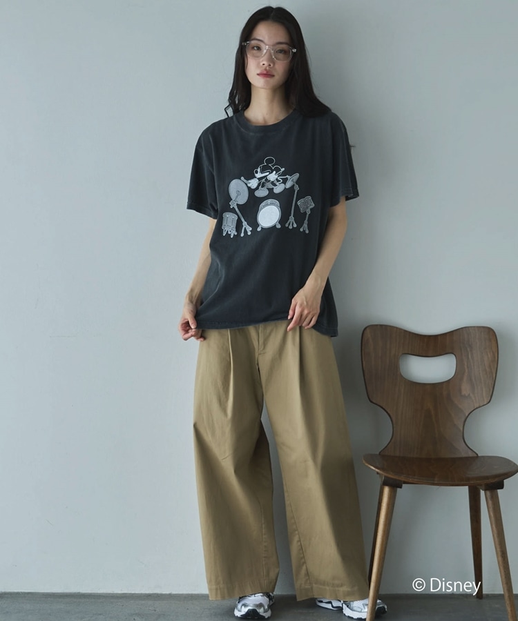 ドラムを叩く「ミッキーマウス」がプリントされた大人かわいいアイテム。