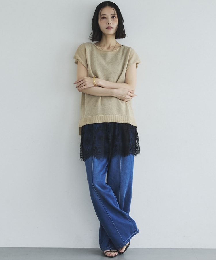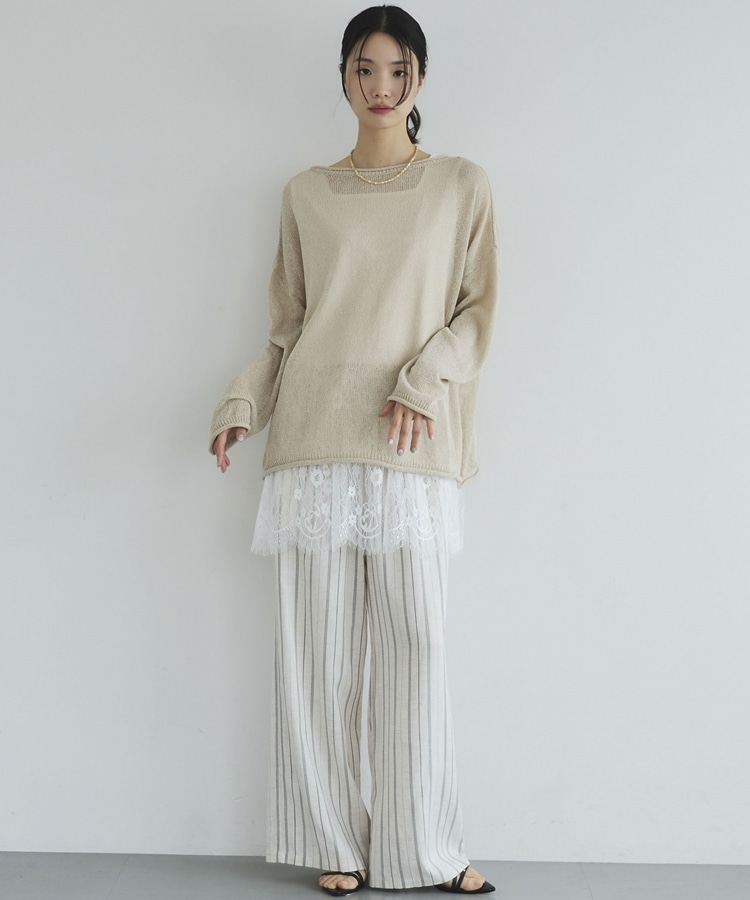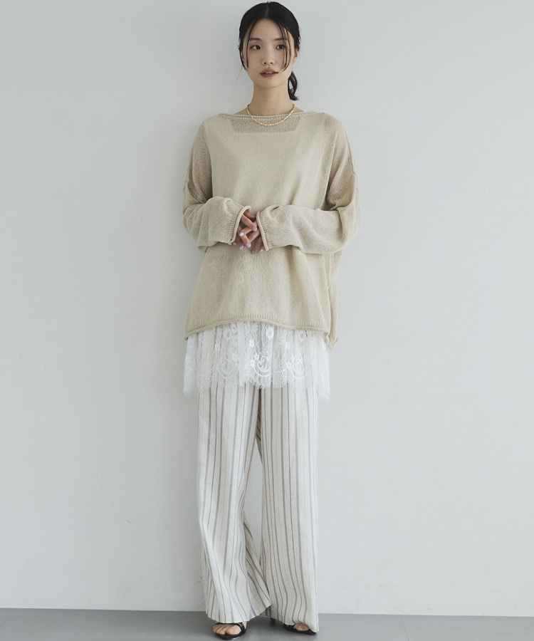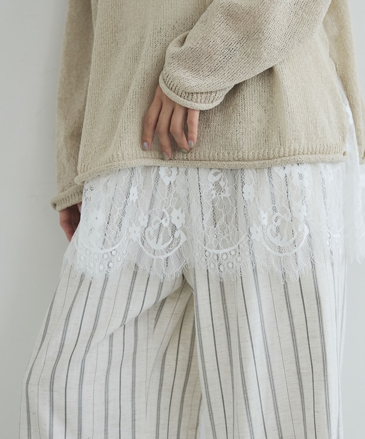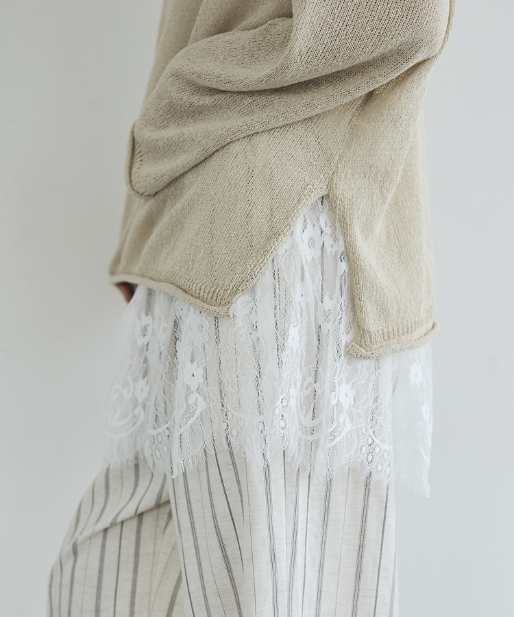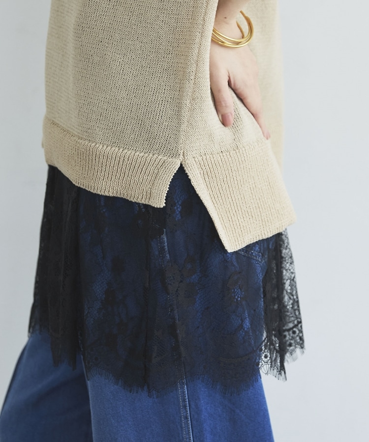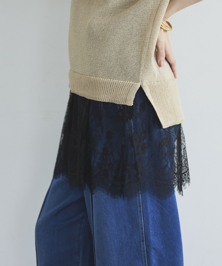 ・裾からちらりと覗くレースが、レイヤードスタイルに抜け感をプラス
