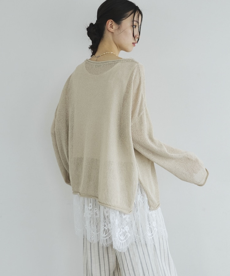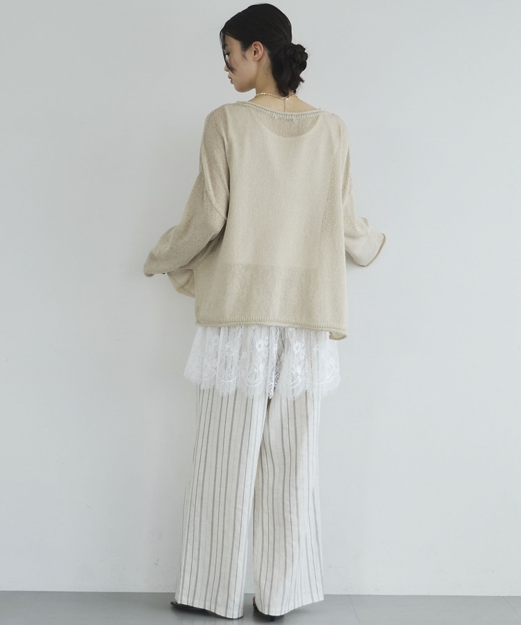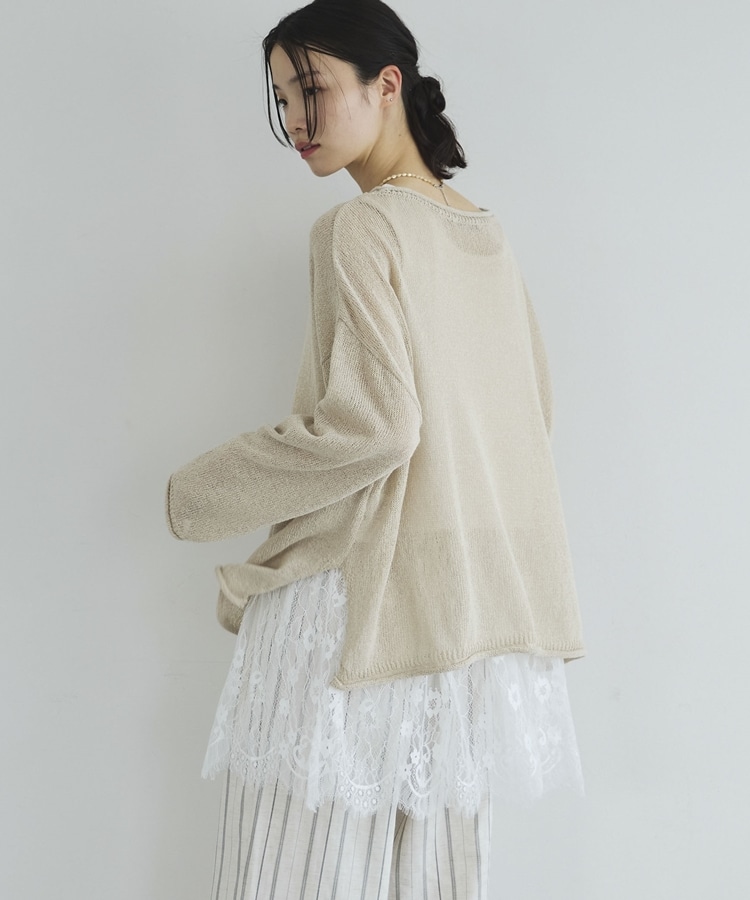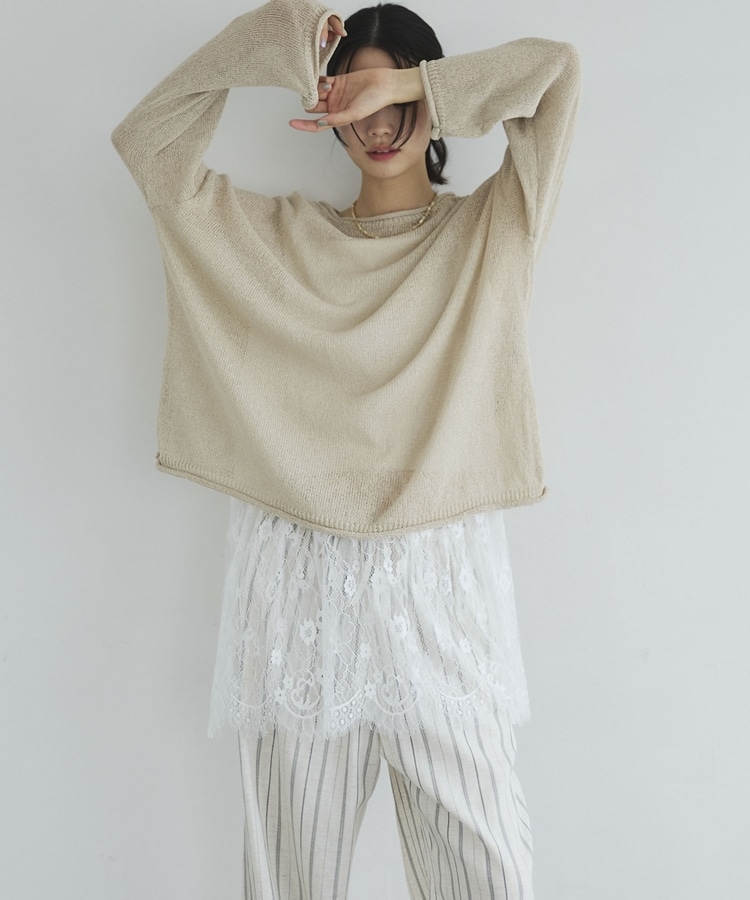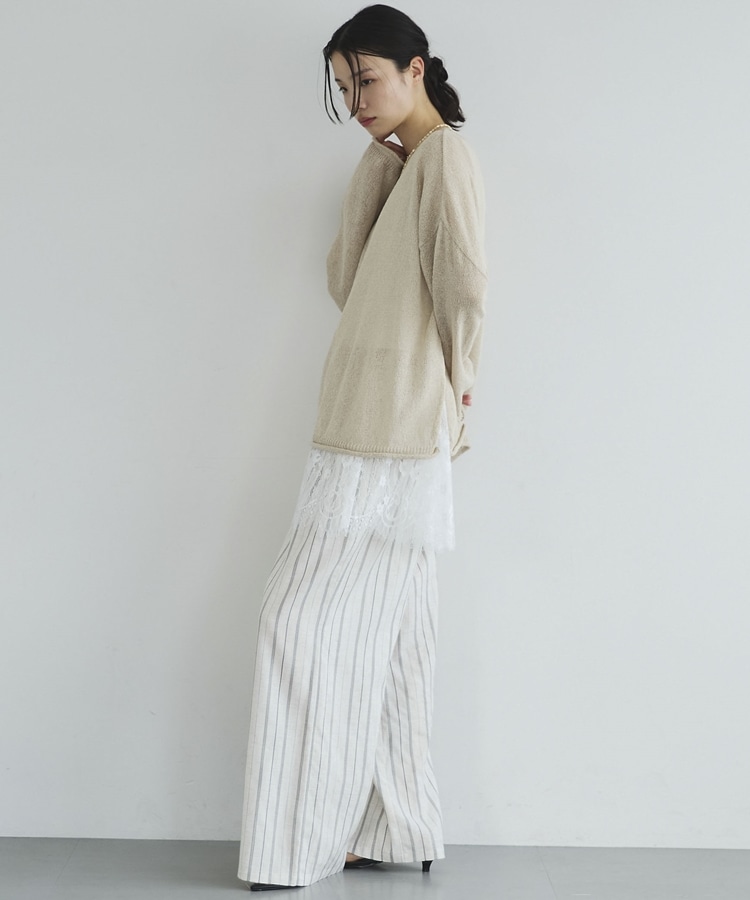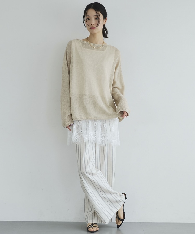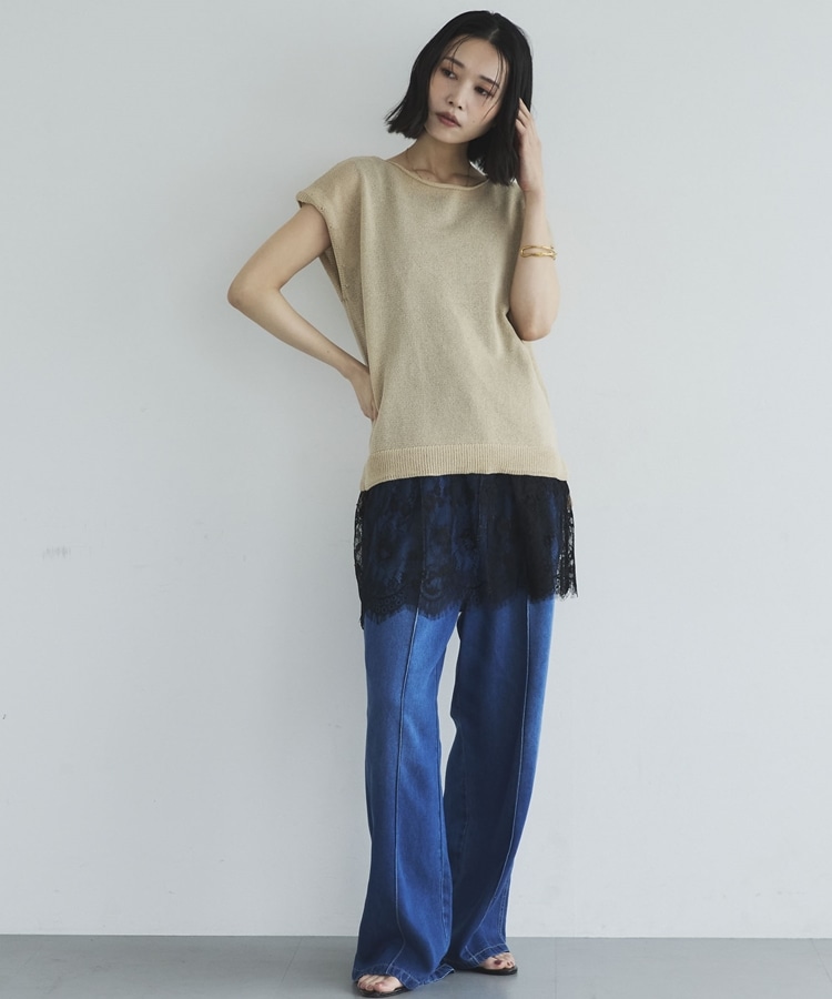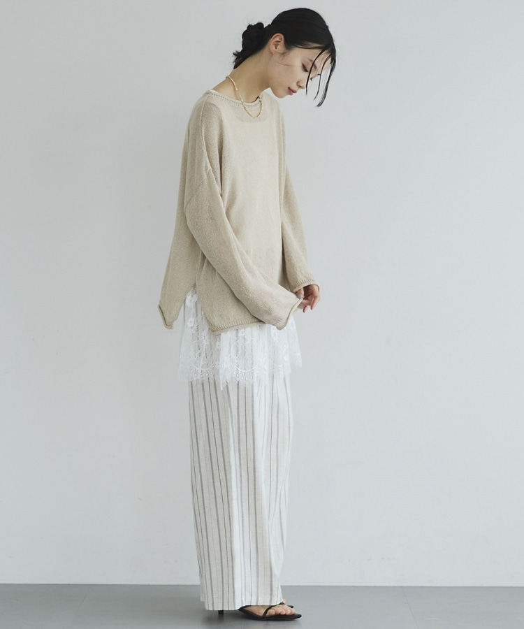 ・裾からちらりと覗くレースが、レイヤードスタイルに抜け感をプラス