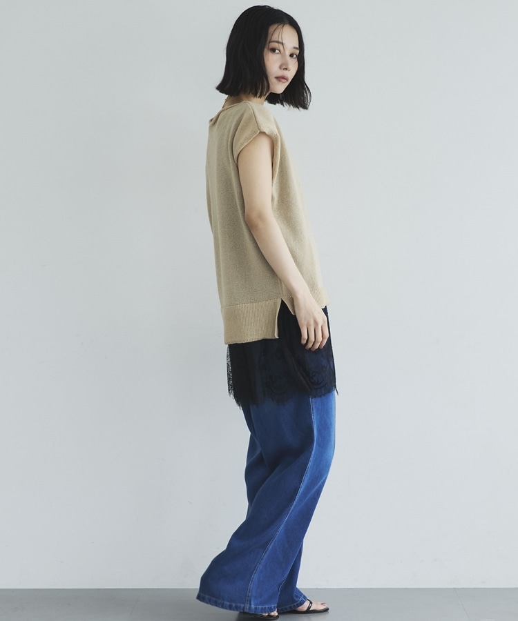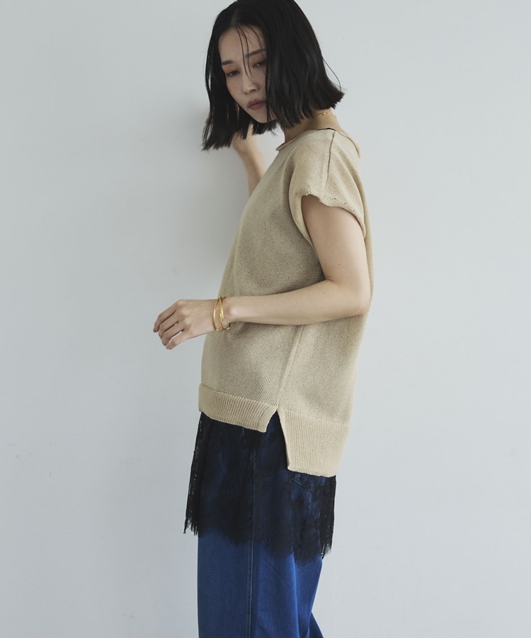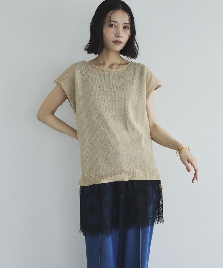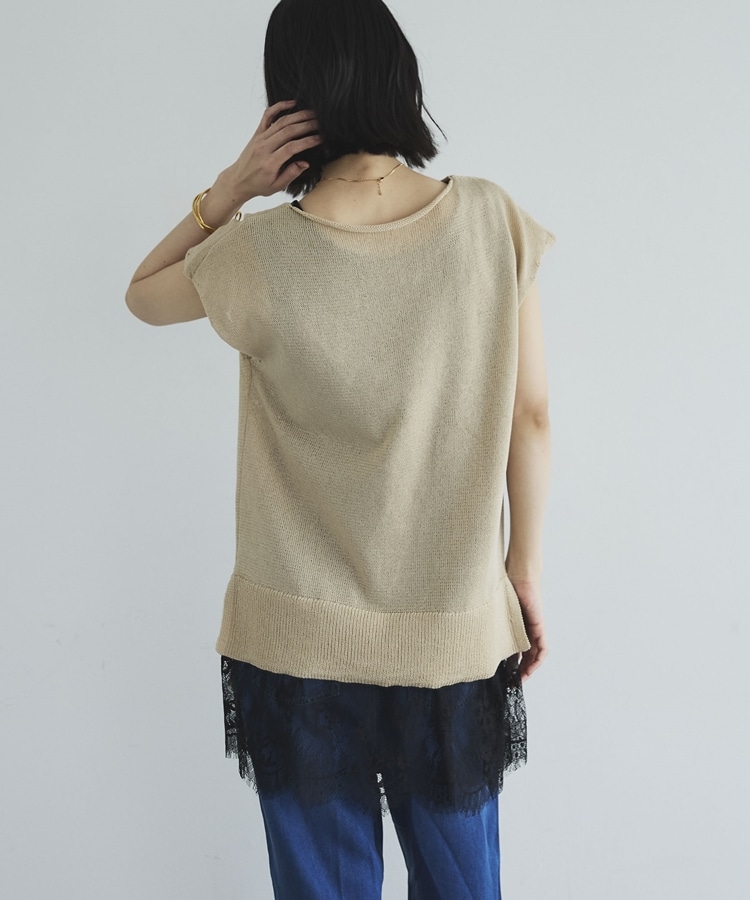 さりげない華やかさをプラスしてくれる、裾レースデザインのタンクトップ